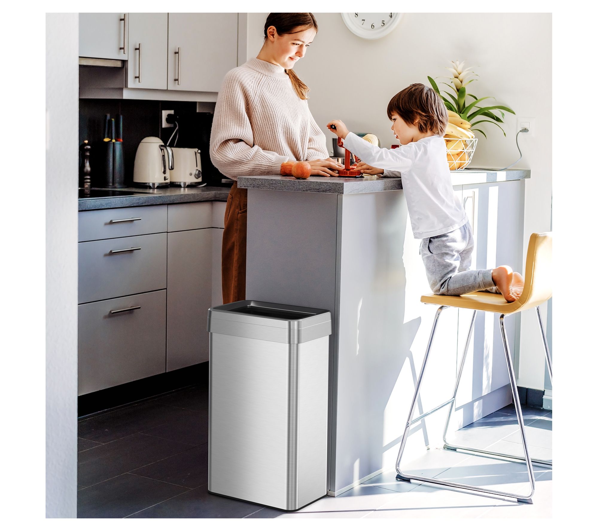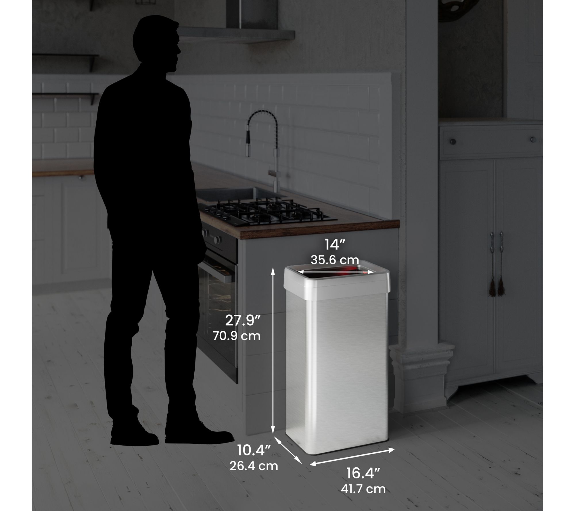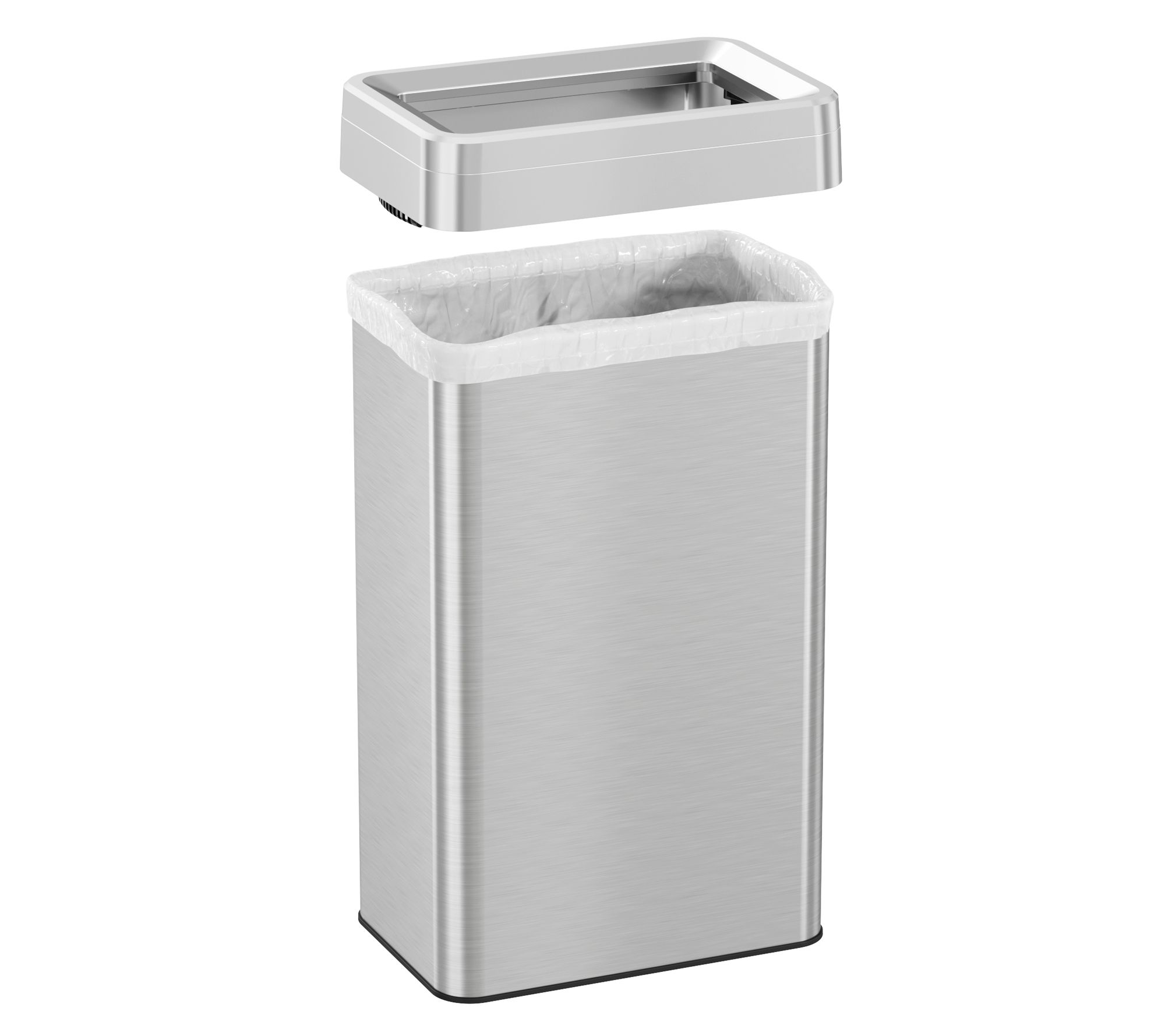 Dispose of garbage quickly and easily with this open-top trash can. Odor filters neutralize bad smells and a sleek, rectangular design looks modern while saving space. From iTouchless.