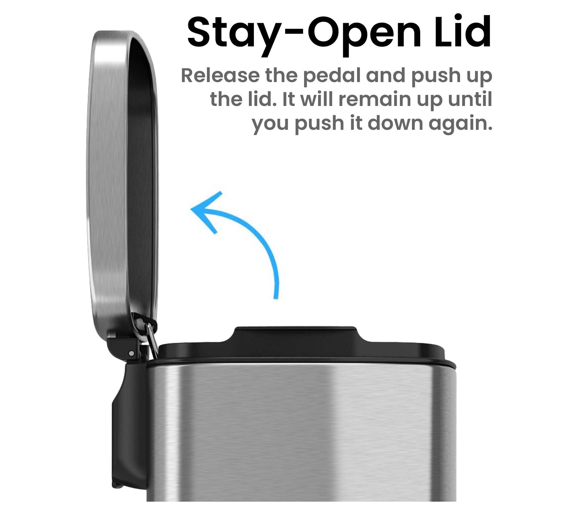 One tap is all it takes to open this step trash can. A silent close lid keeps garbage out of sight, so all you'll see is a smooth, stainless steel finish and a sleek, modern design. From iTouchless.
