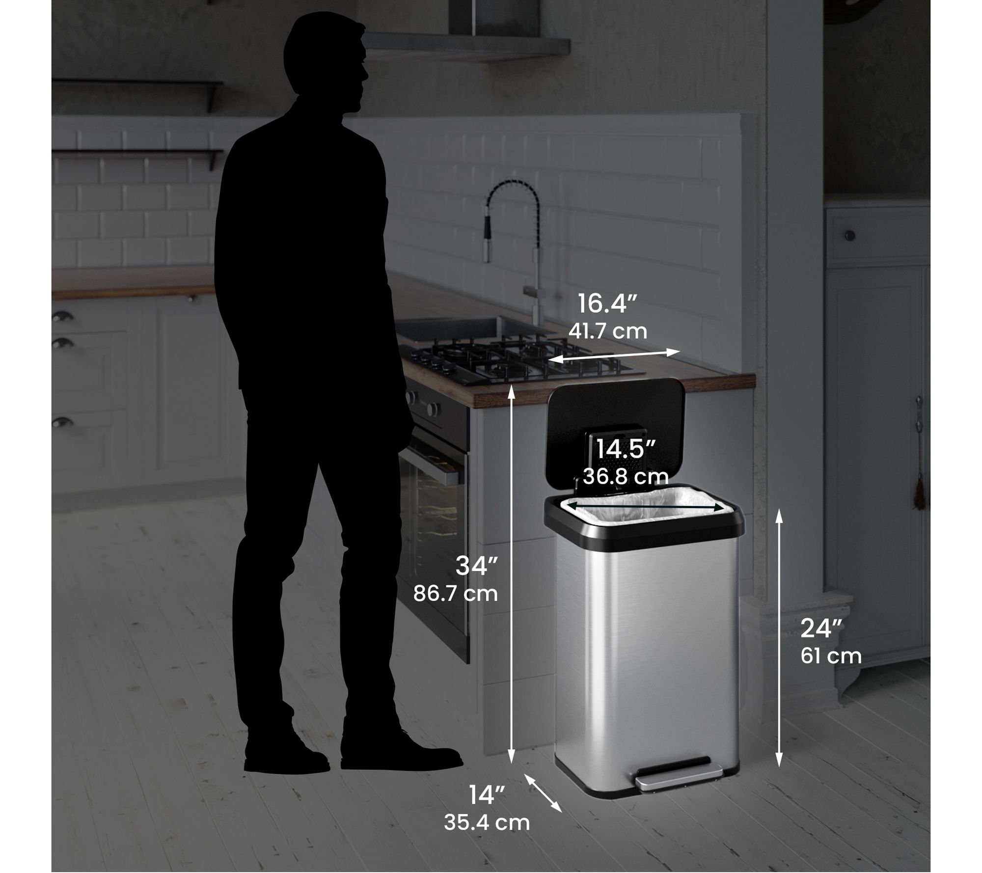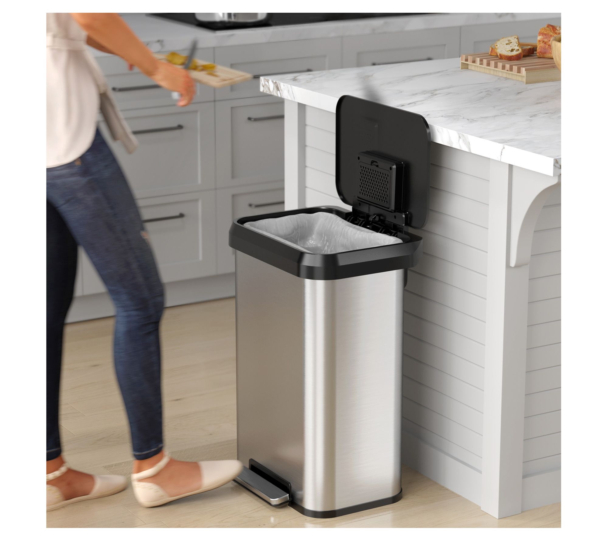 Upgrade your kitchen with the SoftStep stainless steel trash can, a 13.2-gallon marvel of both form and function. This sleek and stylish trash can features a built-in odor filter, while its quiet lid close ensures discreet operation, making it the perfect addition to any home. From iTouchless.