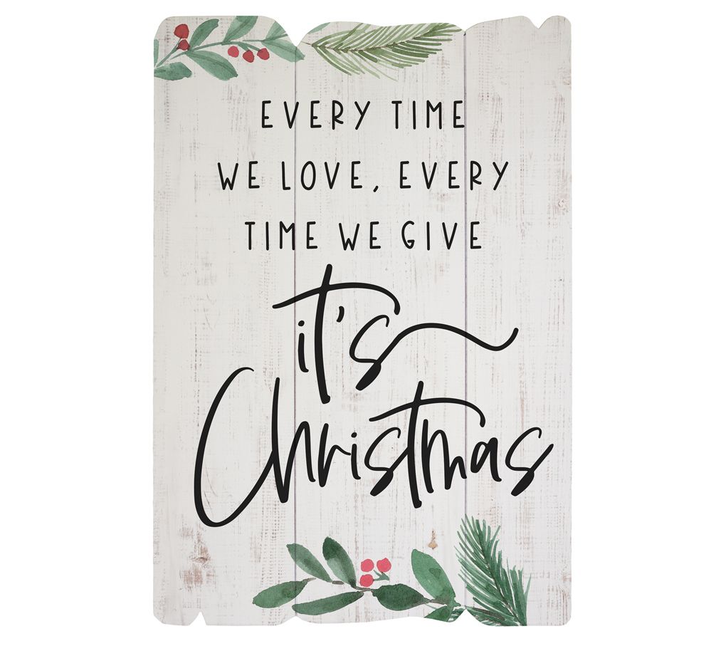 Every time we love, every time we give, it's Christmas, and this white-washed wood fence art with holly and pine accents makes a thoughtful gift for or a perfect addition to your own holiday home. From sincere Surroundings.