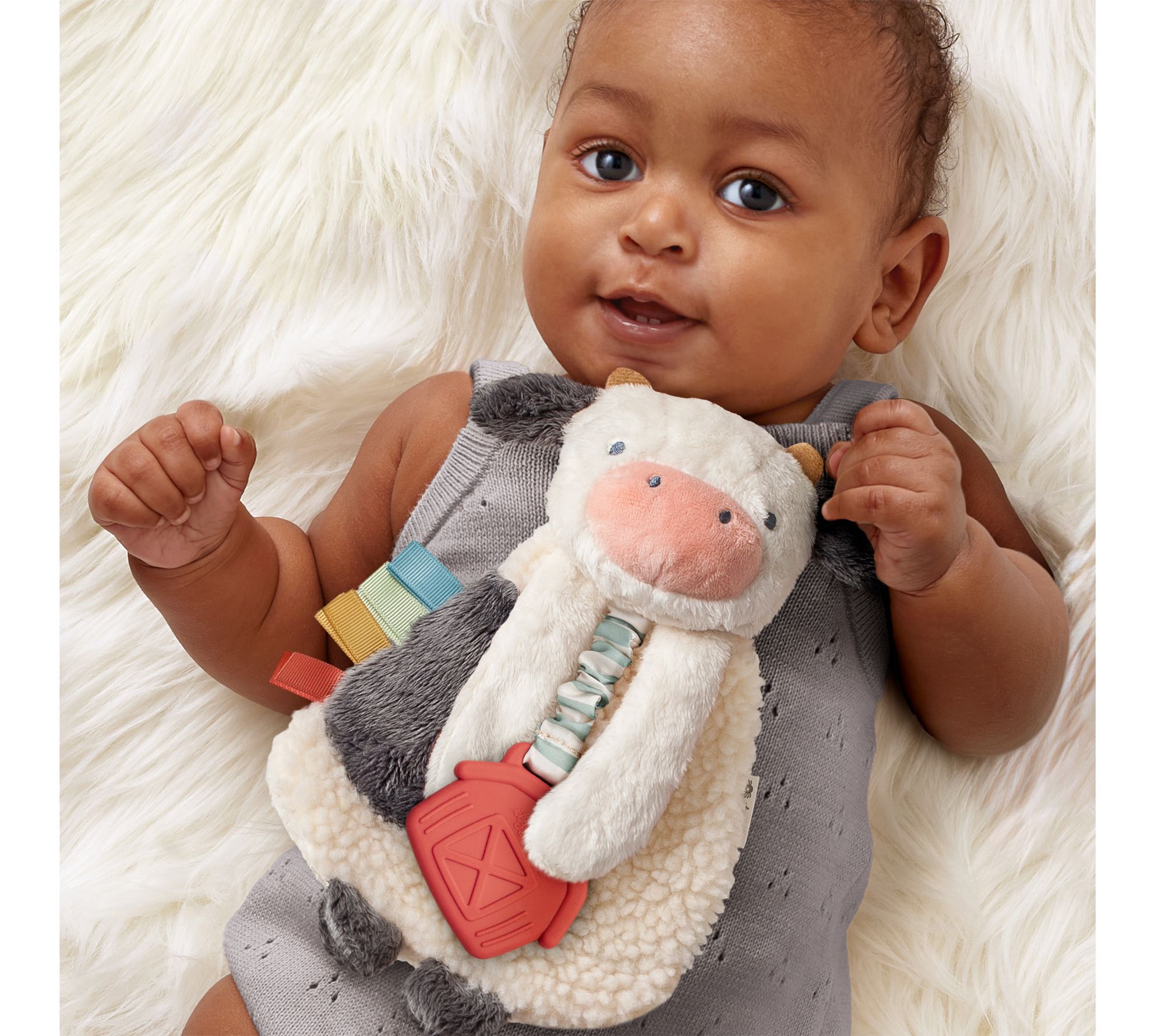• Includes Itzy Lovey Carmen the Cow, Itzy Play Barn with four animals, Sweetie Snuggles plush, and Itzy Spinner sensory toy