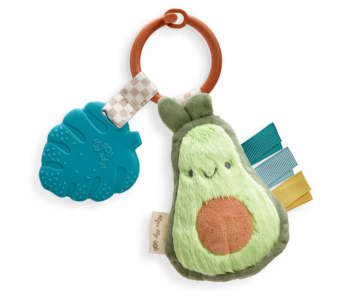 Keep your baby entertained and comforted with the Itzy Ritzy Clip & Go Baby Teething Bundle. This set includes a stylish Sweetie Strap pacifier clip made from silicone, a plush Annie the Avocado with a built-in teether, and Joey the Puppy Ritzy Teether for soothing sore gums. Perfect for on-the-go families, this bundle combines function with fun to keep your little one happy. From Itzy Ritzy.