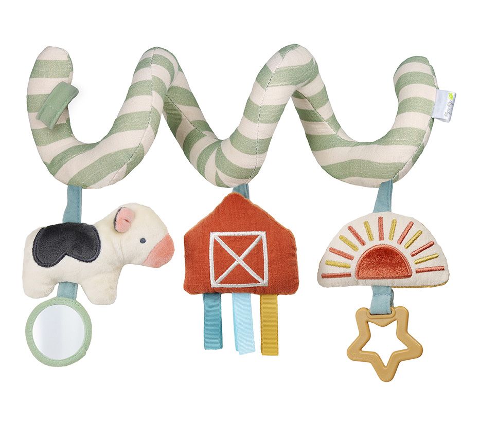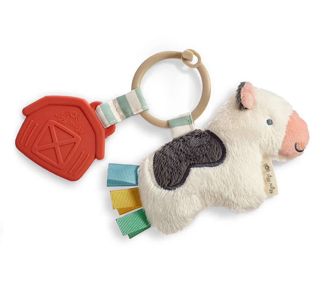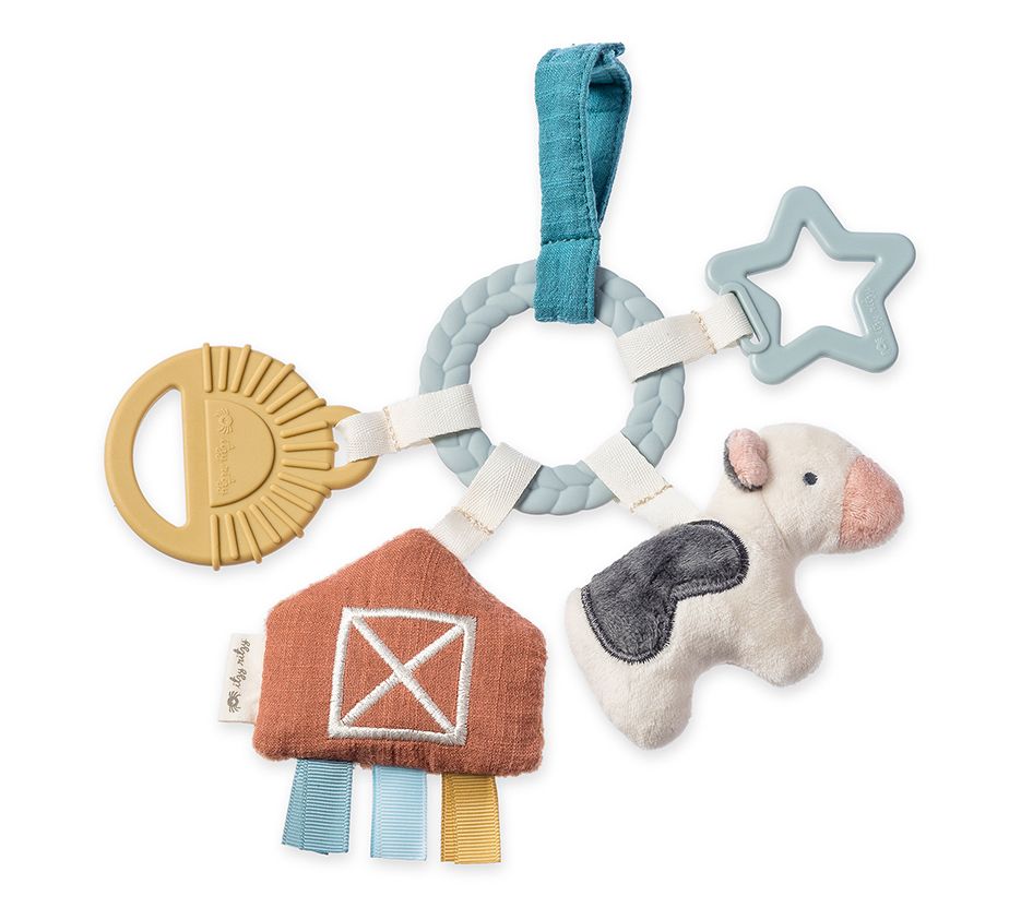 The Itzy Ritzy farm toy bundle offers endless fun and sensory delight for your little one. Carmen the Cow teether pal, Bitzy Busy Ring, and Itzy Bitzy Spiral each provide unique features like soft plush textures, gentle silicone teethers, and engaging crinkle sounds. Stimulate your baby's senses with these toys that can easily attach to a car seat or stroller, making them ideal companions for any adventure. From Itzy Ritzy.