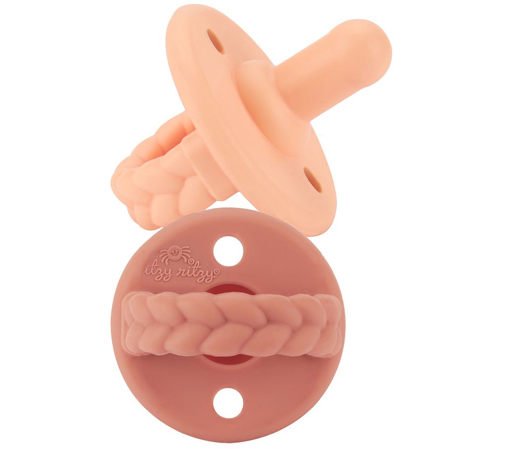 Soothe any fussy baby with this set of two sweet pacifiers. From Itzy Ritzy.