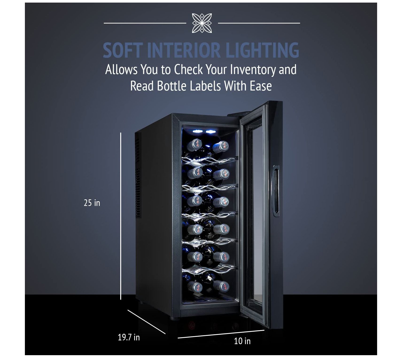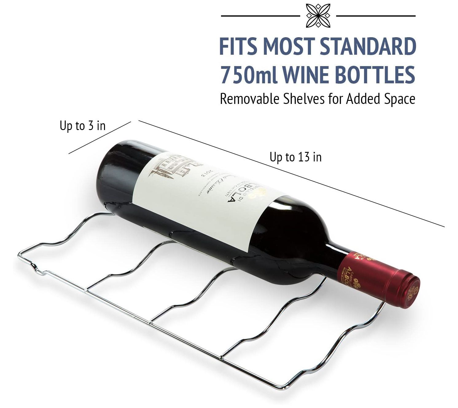 • Holds up to 12 bottles
