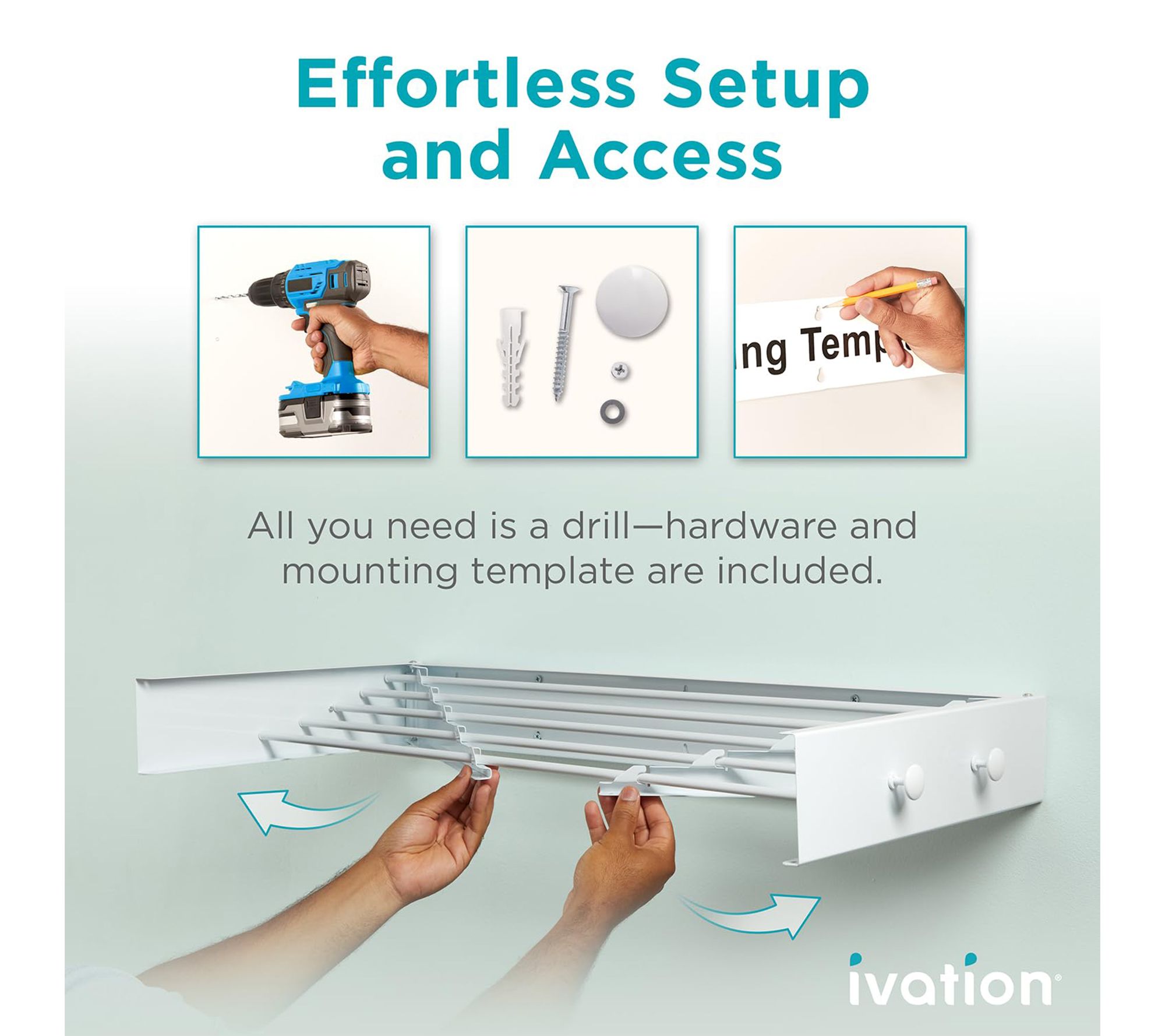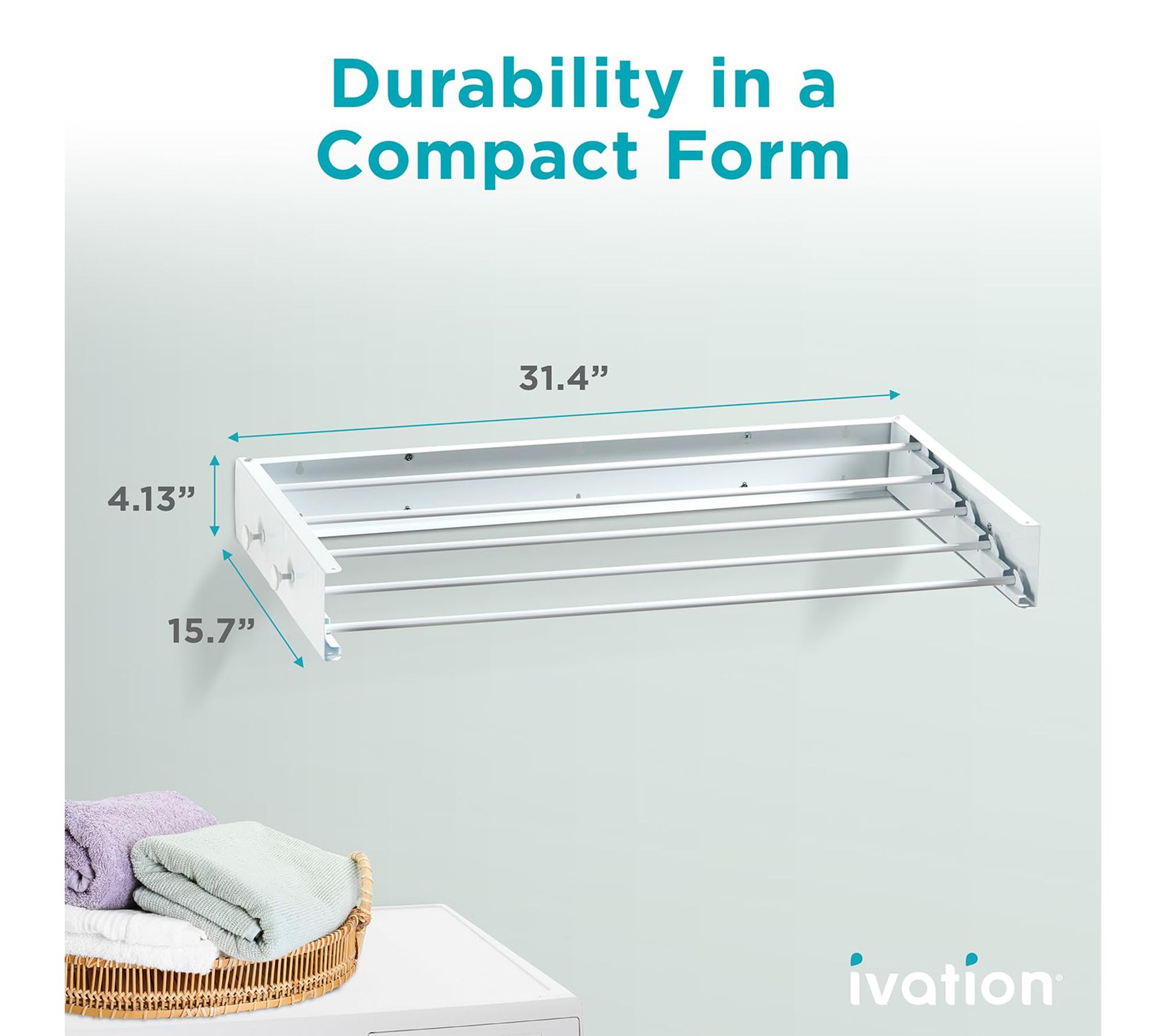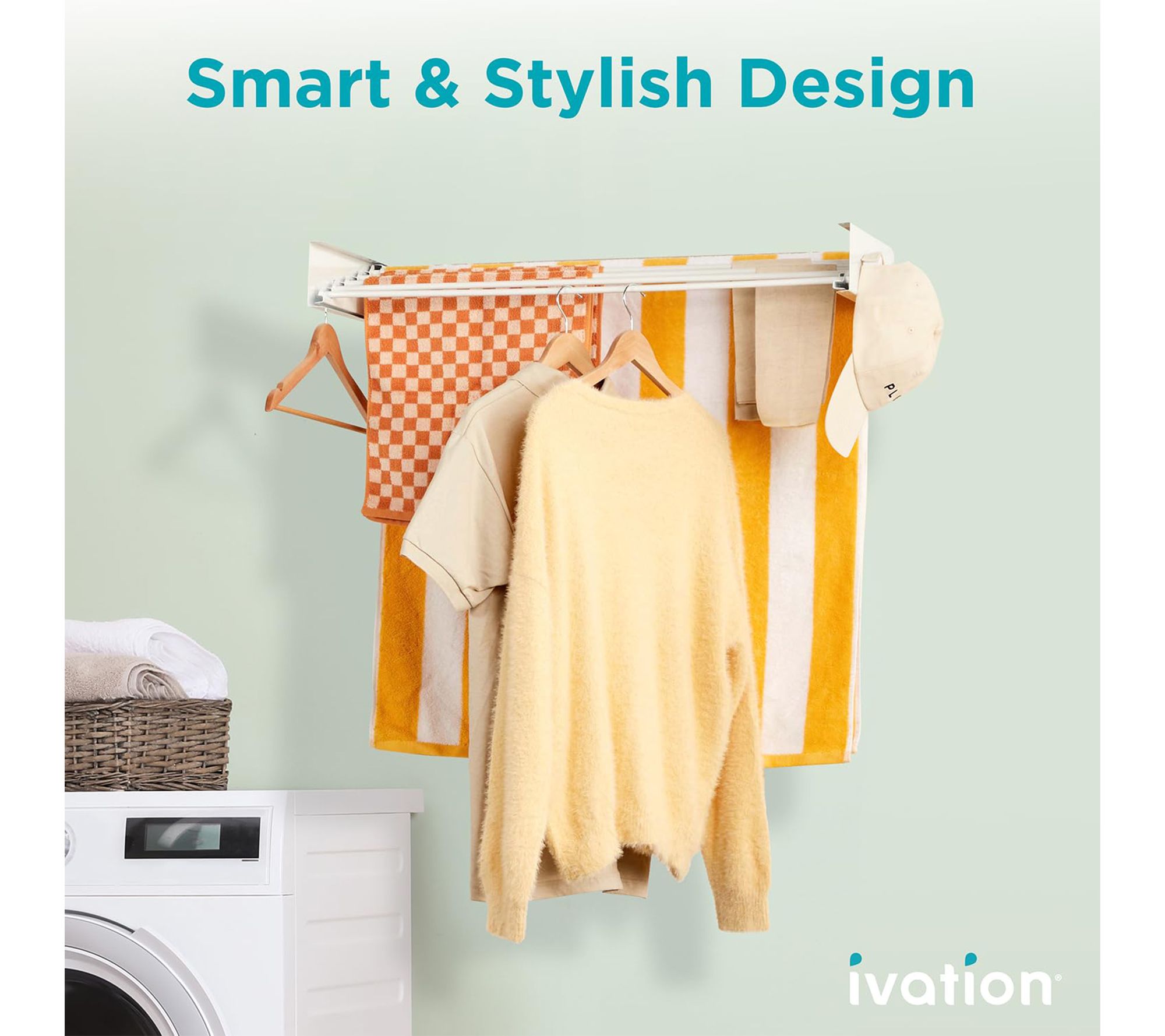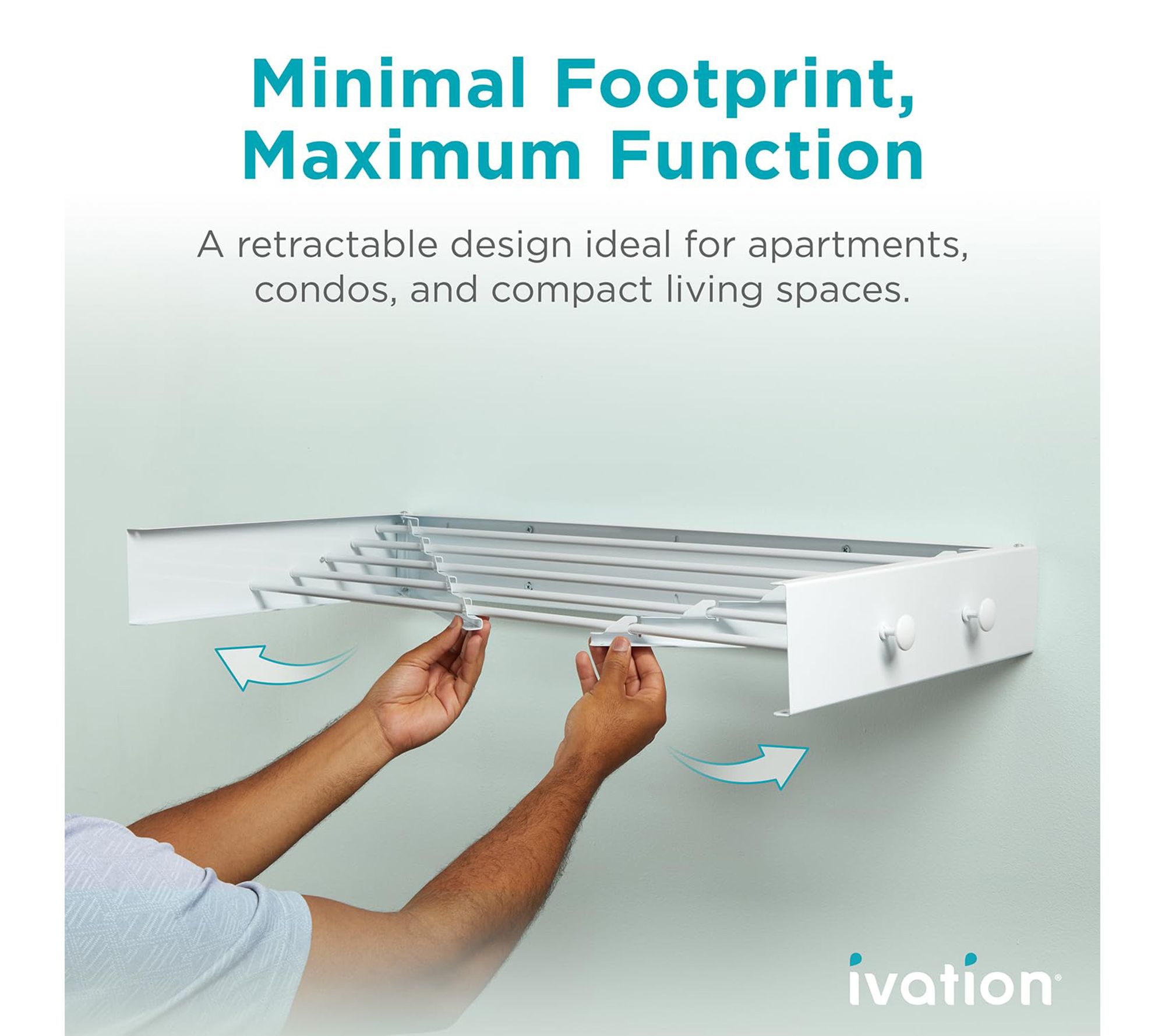 Keep laundry day stress-free and organized with this retractable wall mounted drying rack. Extend the space-saving rack to hang freshly washed clothes, towels, or delicates, then fold it away to keep your laundry area neat -- ideal for apartments, bathrooms, and compact laundry rooms. Whether you're air-drying cherished pieces or tidying up, you'll love how this drying rack keeps everything simple and clutter-free. From Ivation.