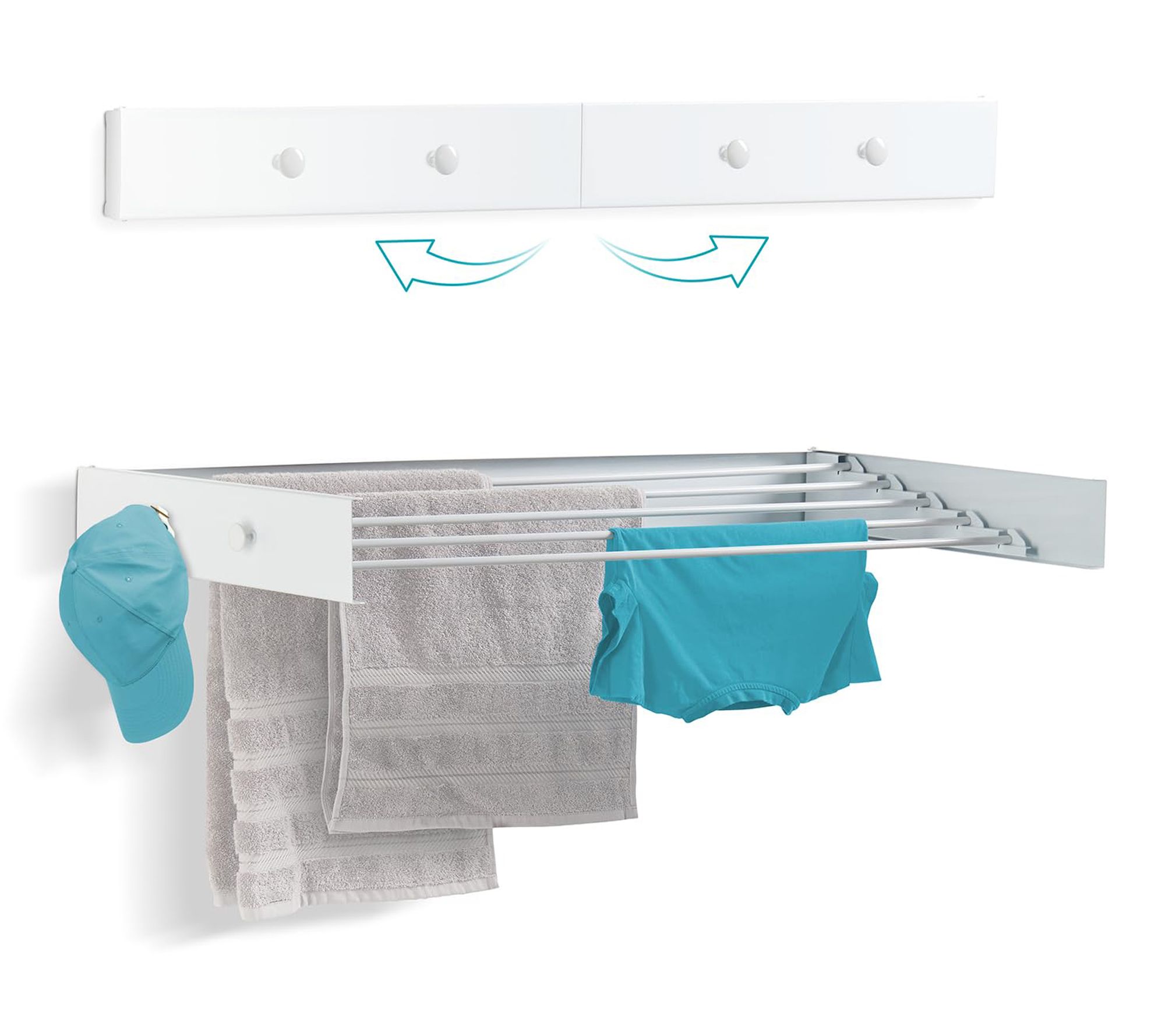 • Provides five sturdy rods for hanging clothes and collapses against the wall to save space