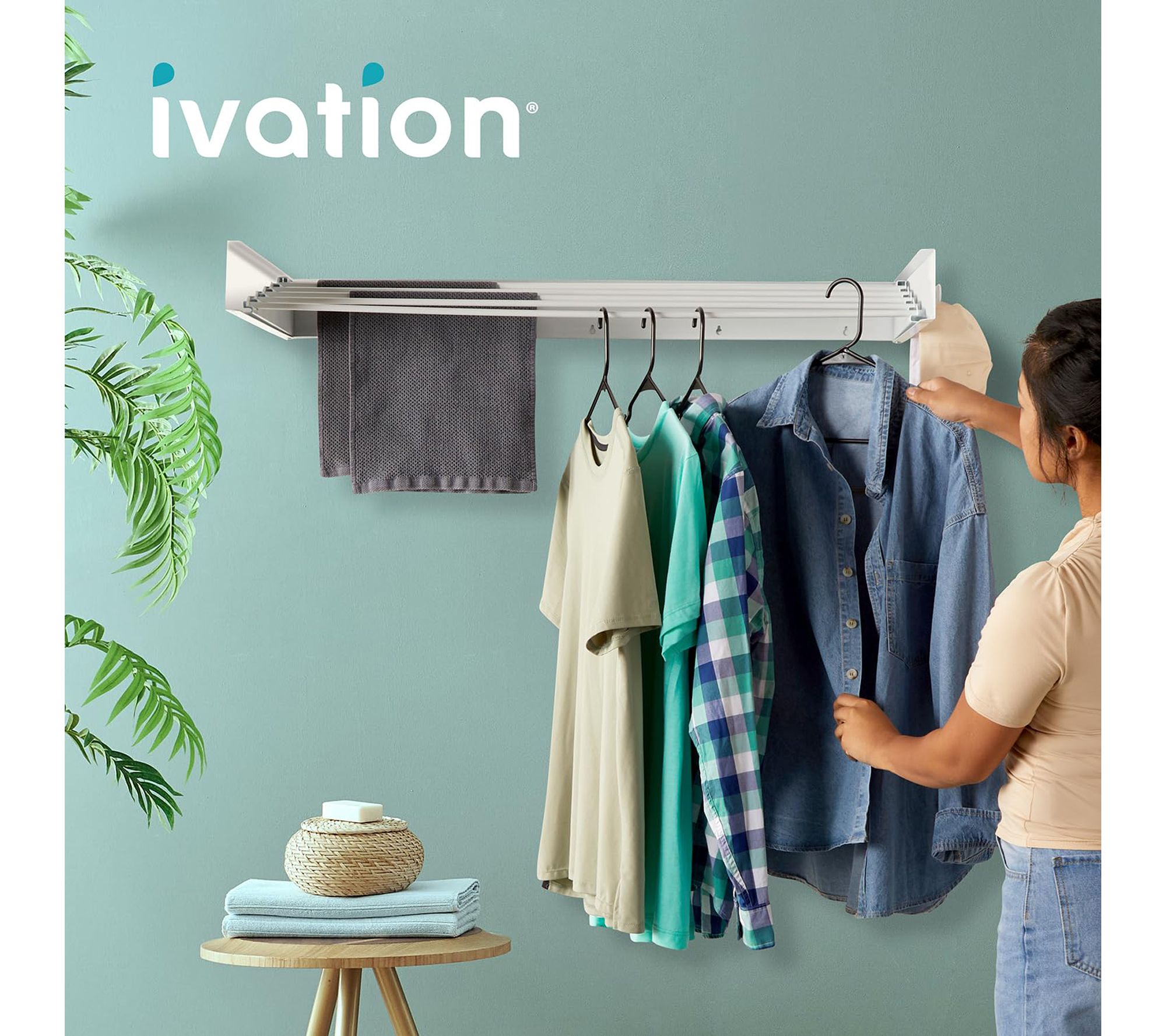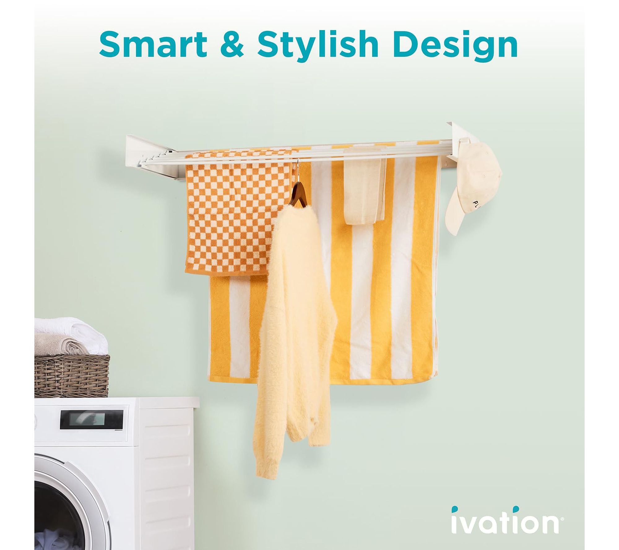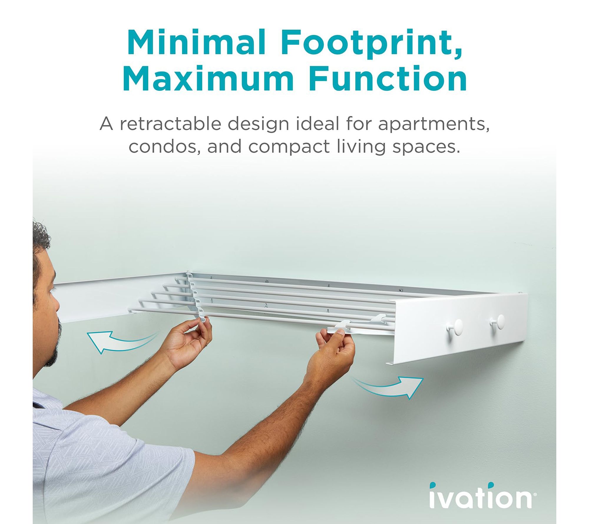 Tackle laundry day with ease using a retractable wall-mounted drying rack that makes the most of your indoor space. Designed to extend for multiple hanging rods and collapse flat when not in use, it's a smart choice for small rooms, apartments, or busy bathrooms. Easily air-dry delicates, organize laundry, and keep your area tidy without sacrificing floor space. From Ivation.