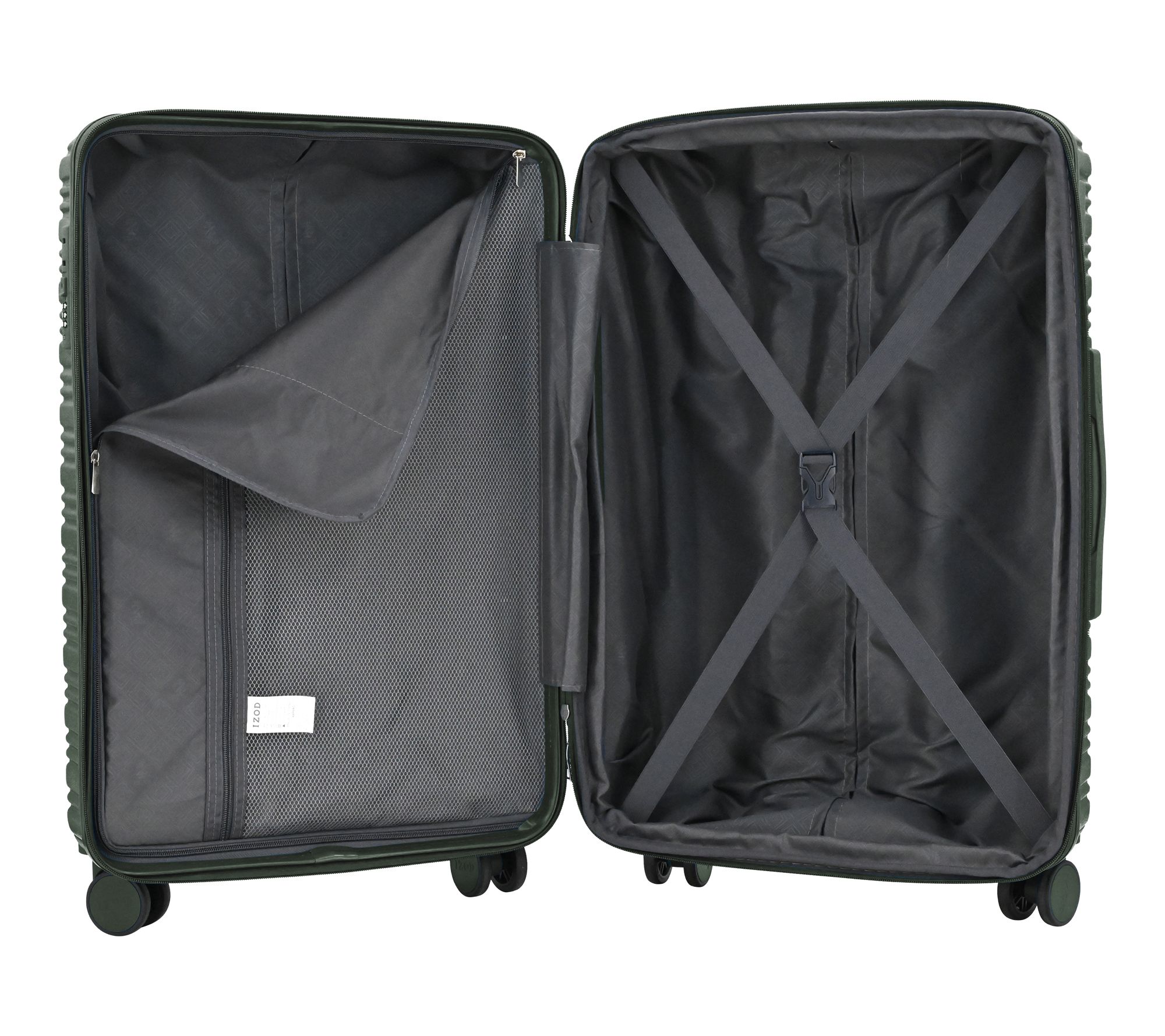 • ABS hard-sided exterior construction; expandable design; zipper closure; four spinner wheels; trolley handle