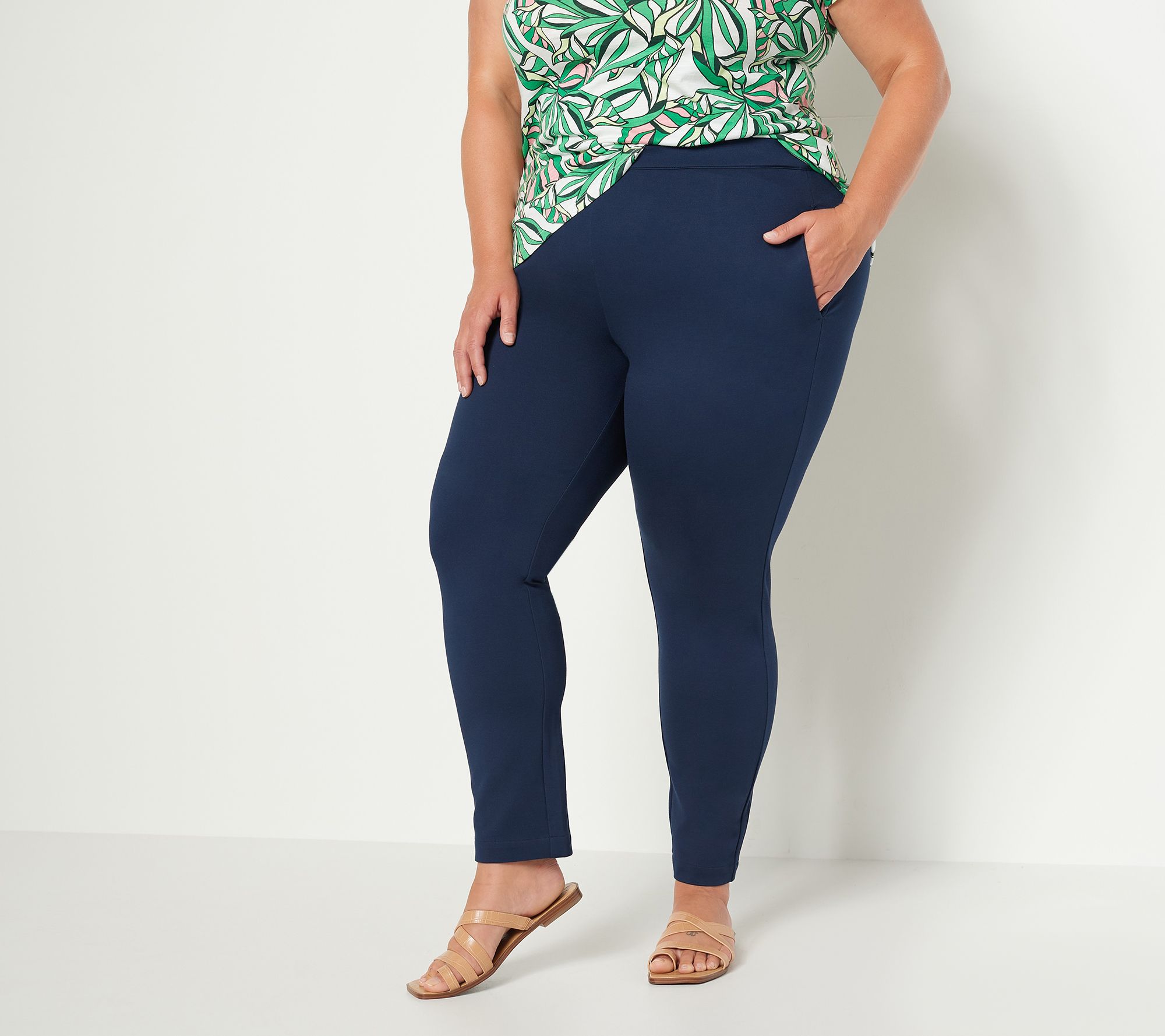 - Features: pull-on style with elastic waistband, side-seam pockets, ankle length