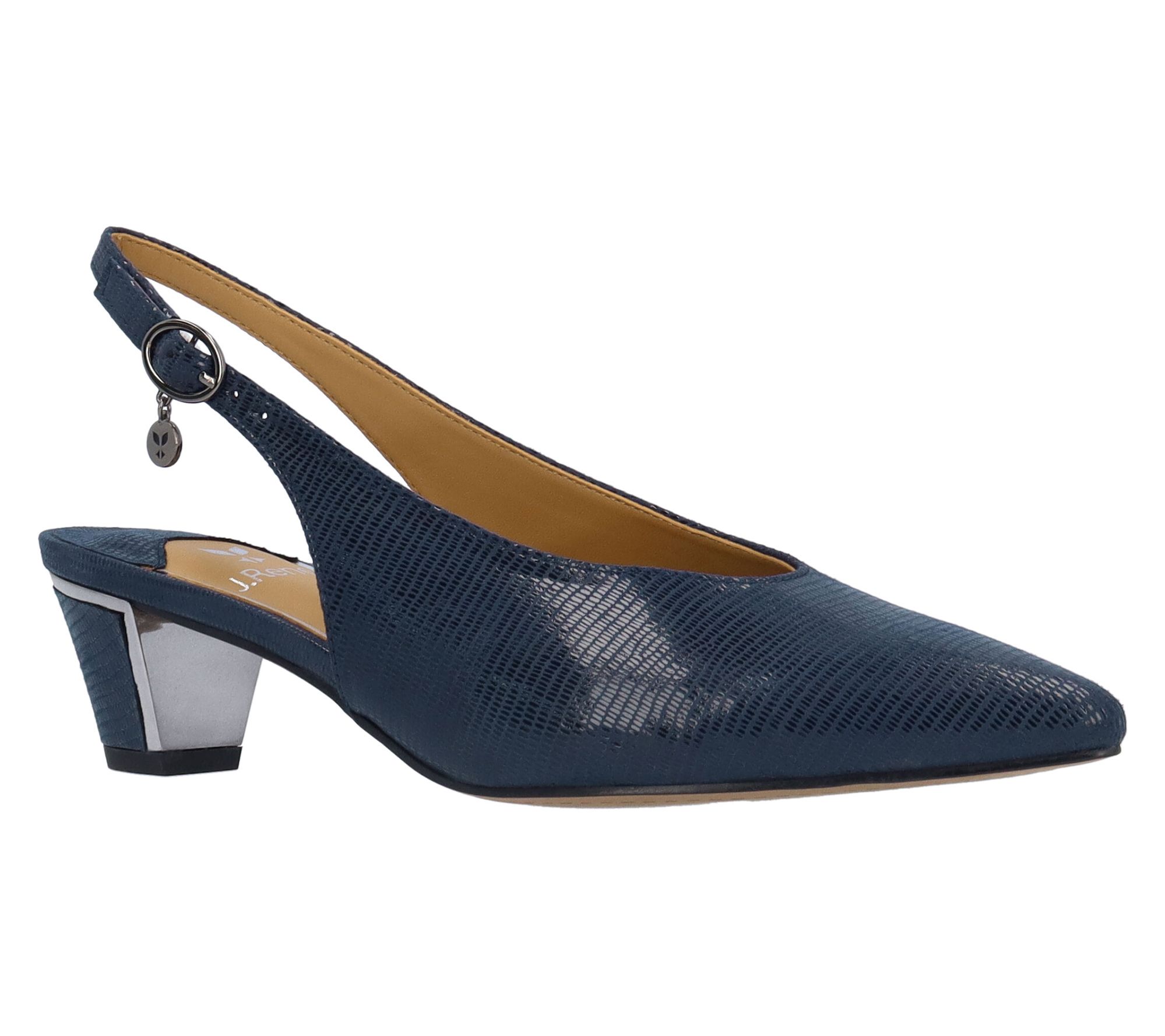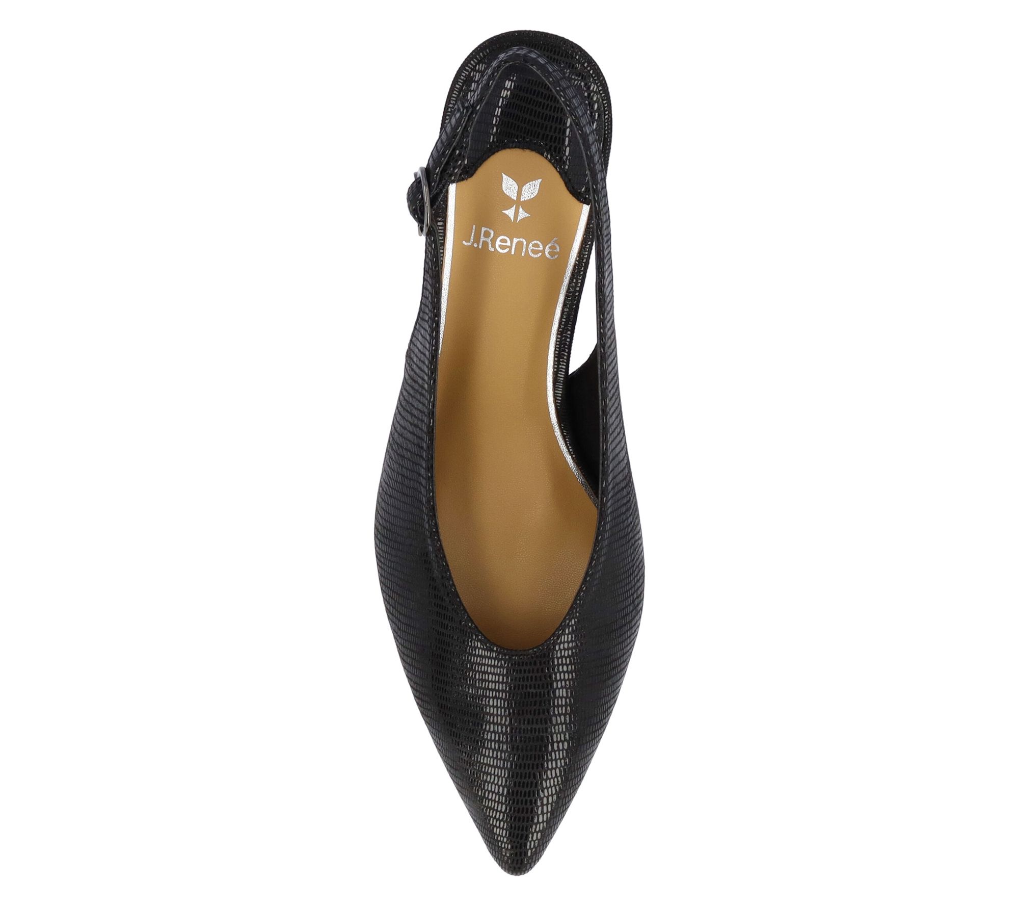Shine from morning meetings to evening celebrations in these Darra embossed pumps by J. Renee. A textured upper and timeless silhouette bring a polished finish to office attire or dressy outfits, while the easy slip-on design makes getting ready a breeze. From J. Renee.