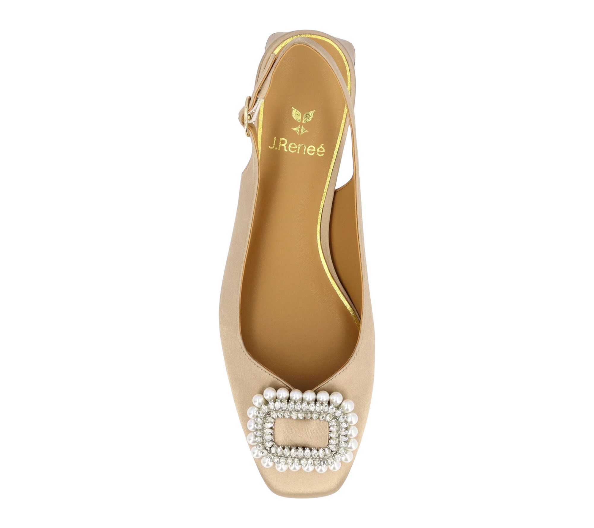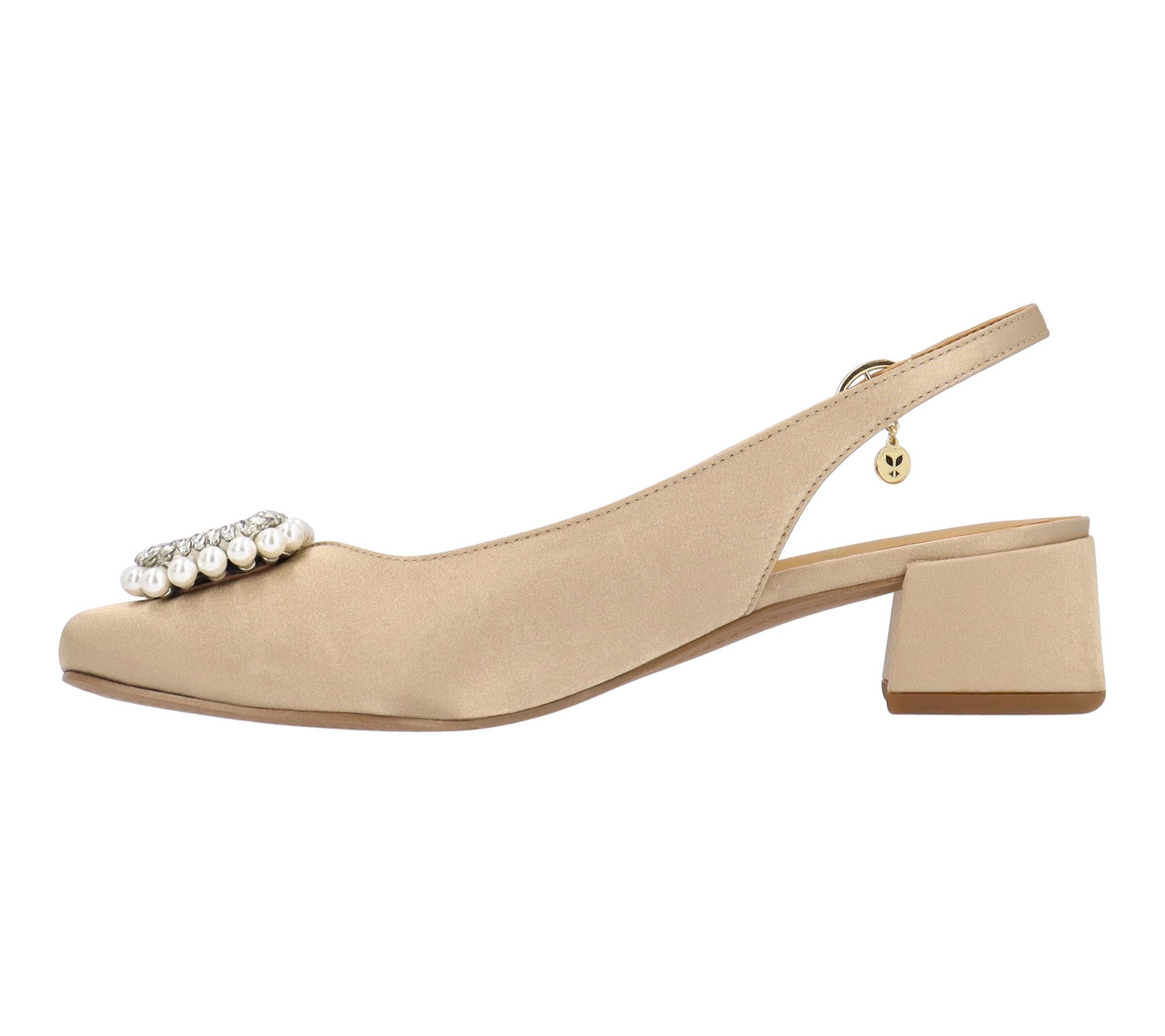 A satin pump designed to add polished style to any outfit, this shoe features a chic square toe and a secure buckle closure for comfort throughout the day or night. The memory foam plus latex insole cushions every step, making it a go-to choice for celebrations, work events, or weekend get-togethers. From J. Renee.