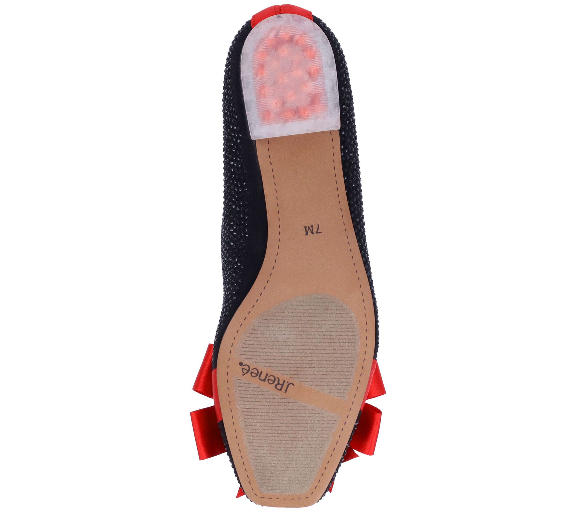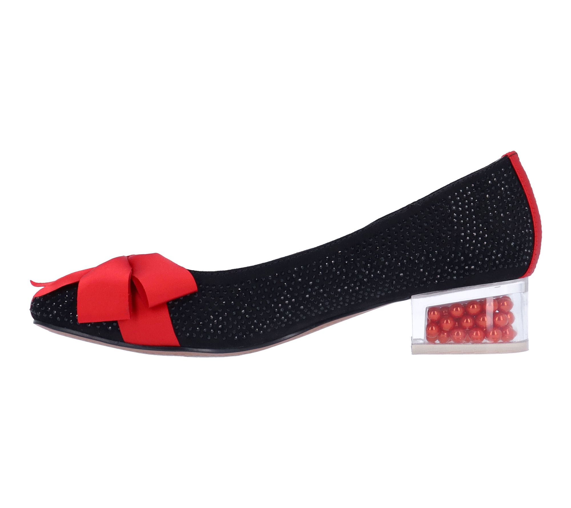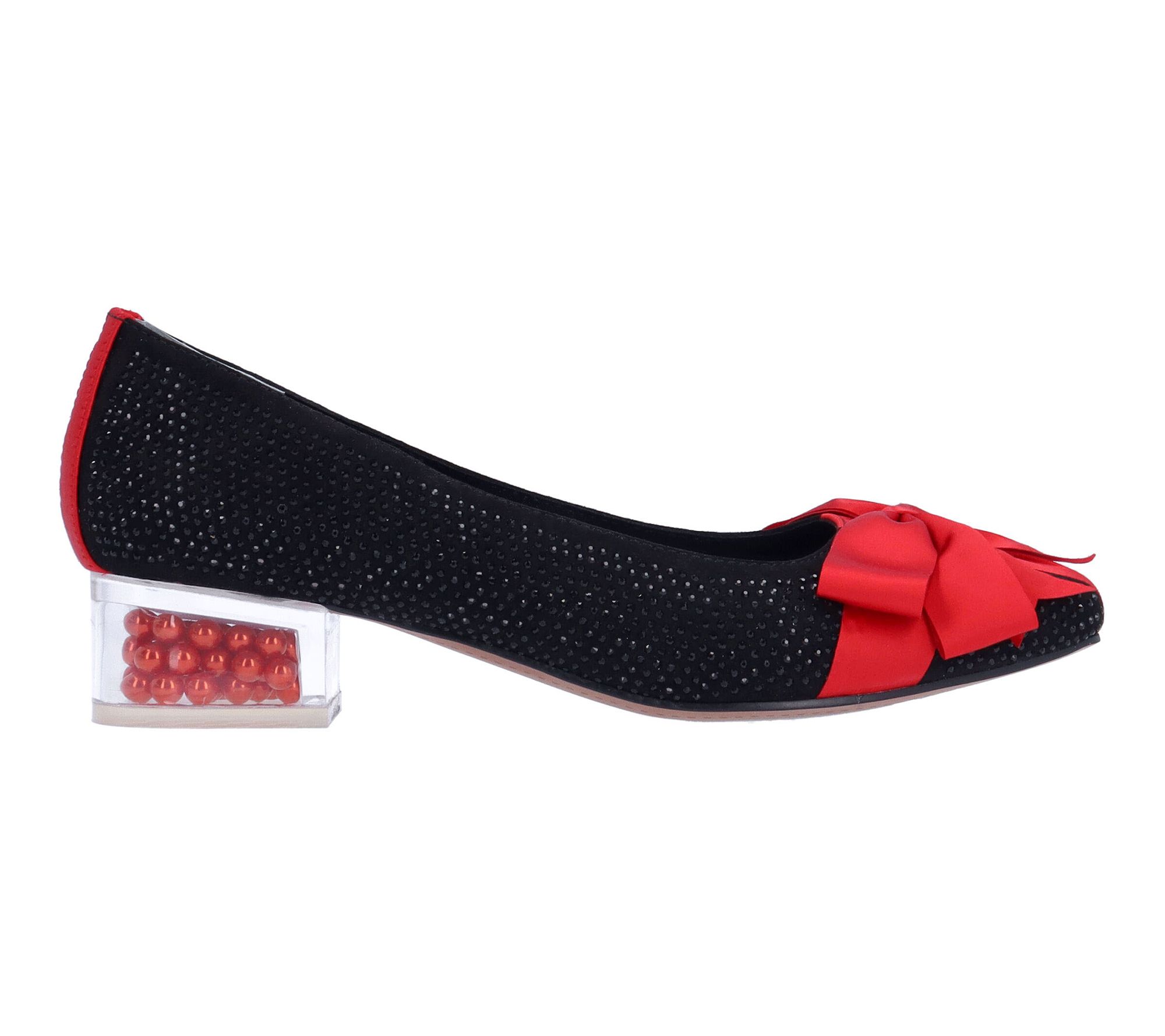 • Glitter finish, bow accent, square toe