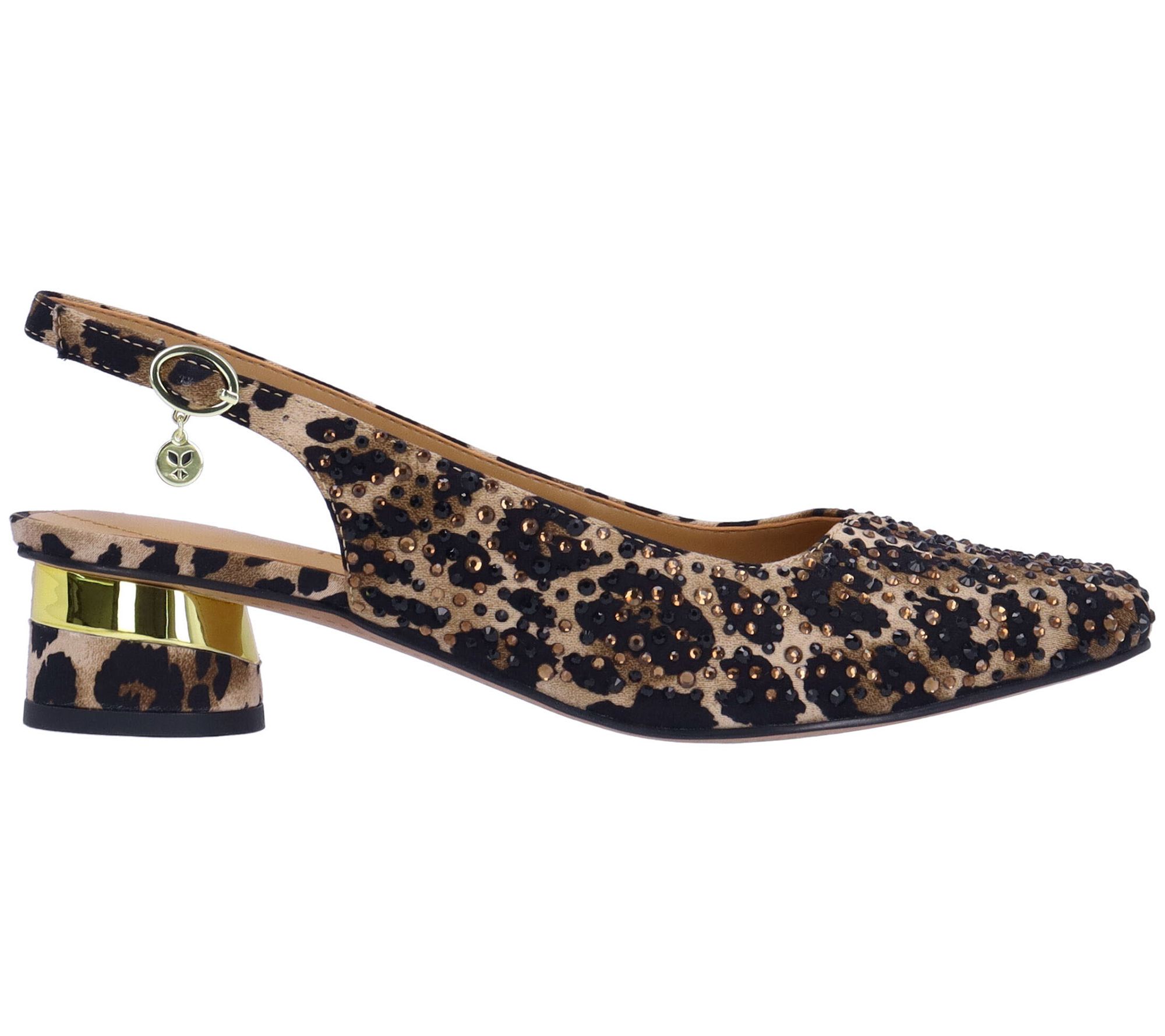 You'll walk with confidence in these contemporary slingback pumps outfitted with rhinestone accents and a memory foam cushion for comfort. From J. Renee.
