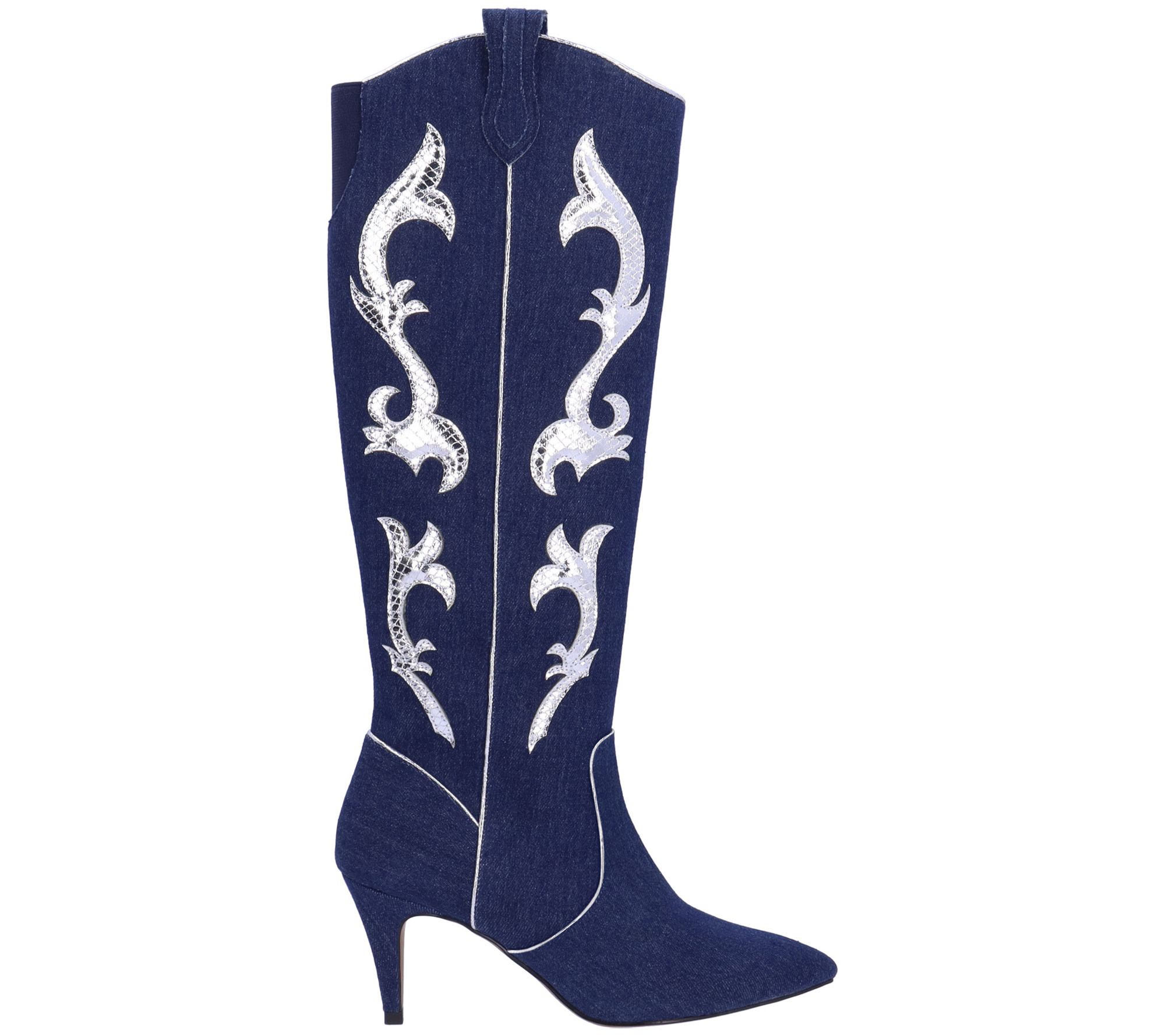 Step into Western charm with the J. Renee tall shaft cowboy boot in Siera Denim. Featuring a pointed toe and side-zip closure, these boots combine classic style with modern comfort. Perfect for fall and winter, they offer a memory foam and latex insole for all-day wear. From J. Renee.