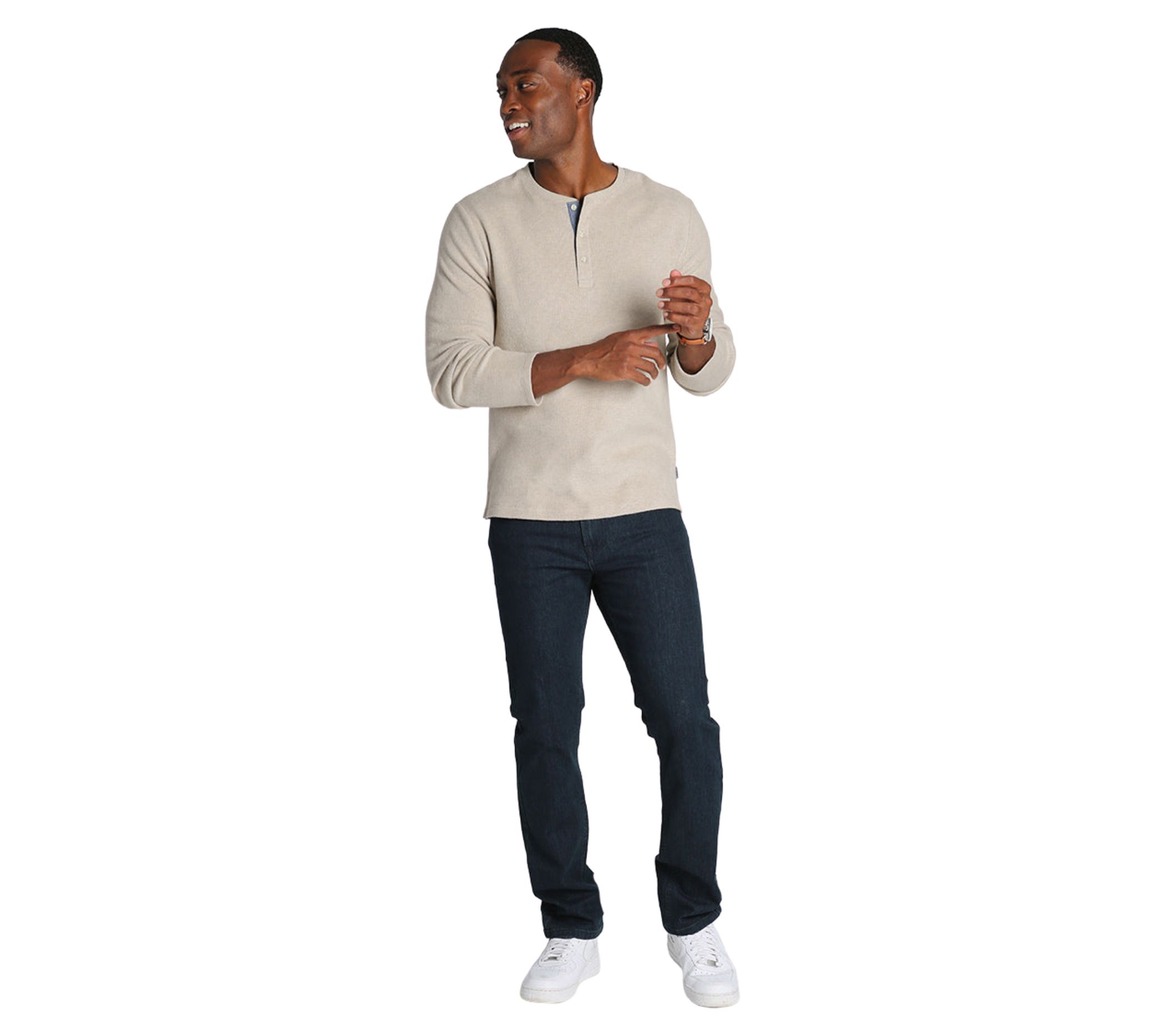Add this waffle fleece henley to your wardrobe for a layering essential that's both lightweight and warm, perfect for the winter months. From Jachs NY.