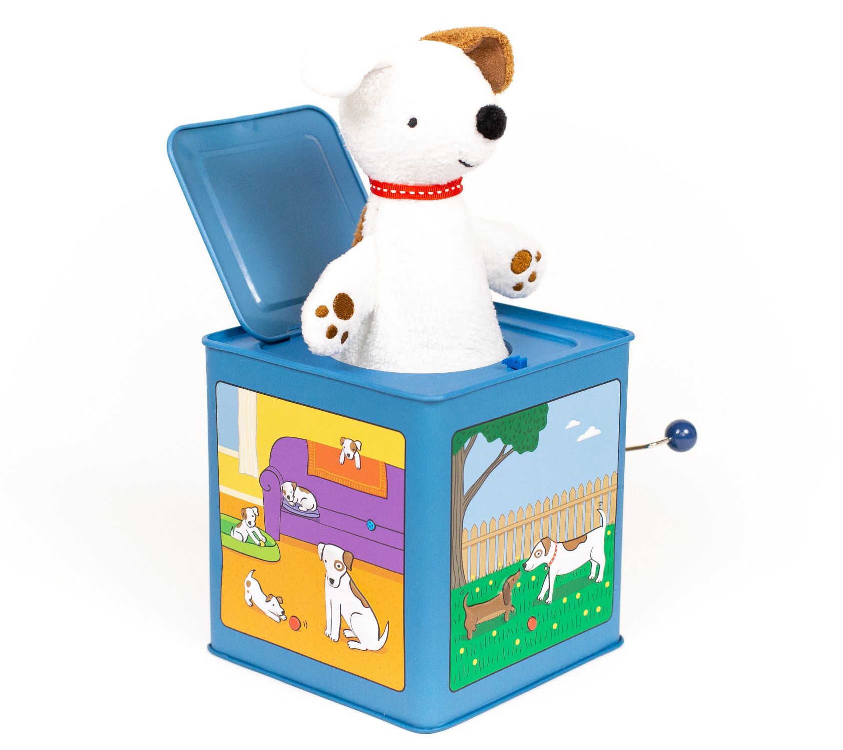 Your little one will adore the surprise of this classic jack-in-the-box featuring updated art and a friendly plush dog. From Jack Rabbit Creations Inc.