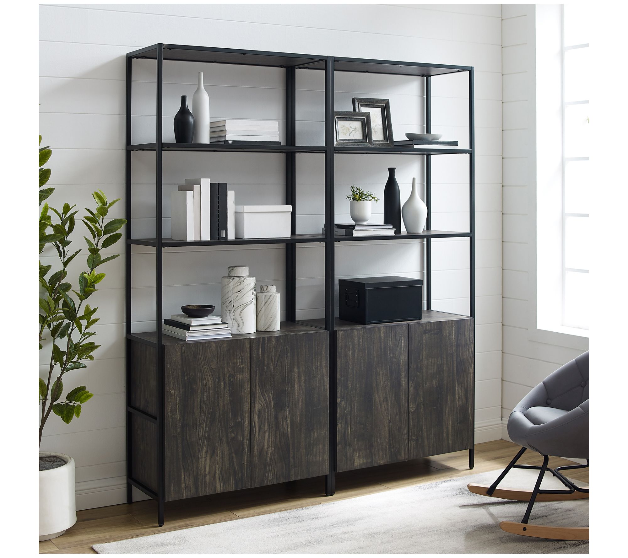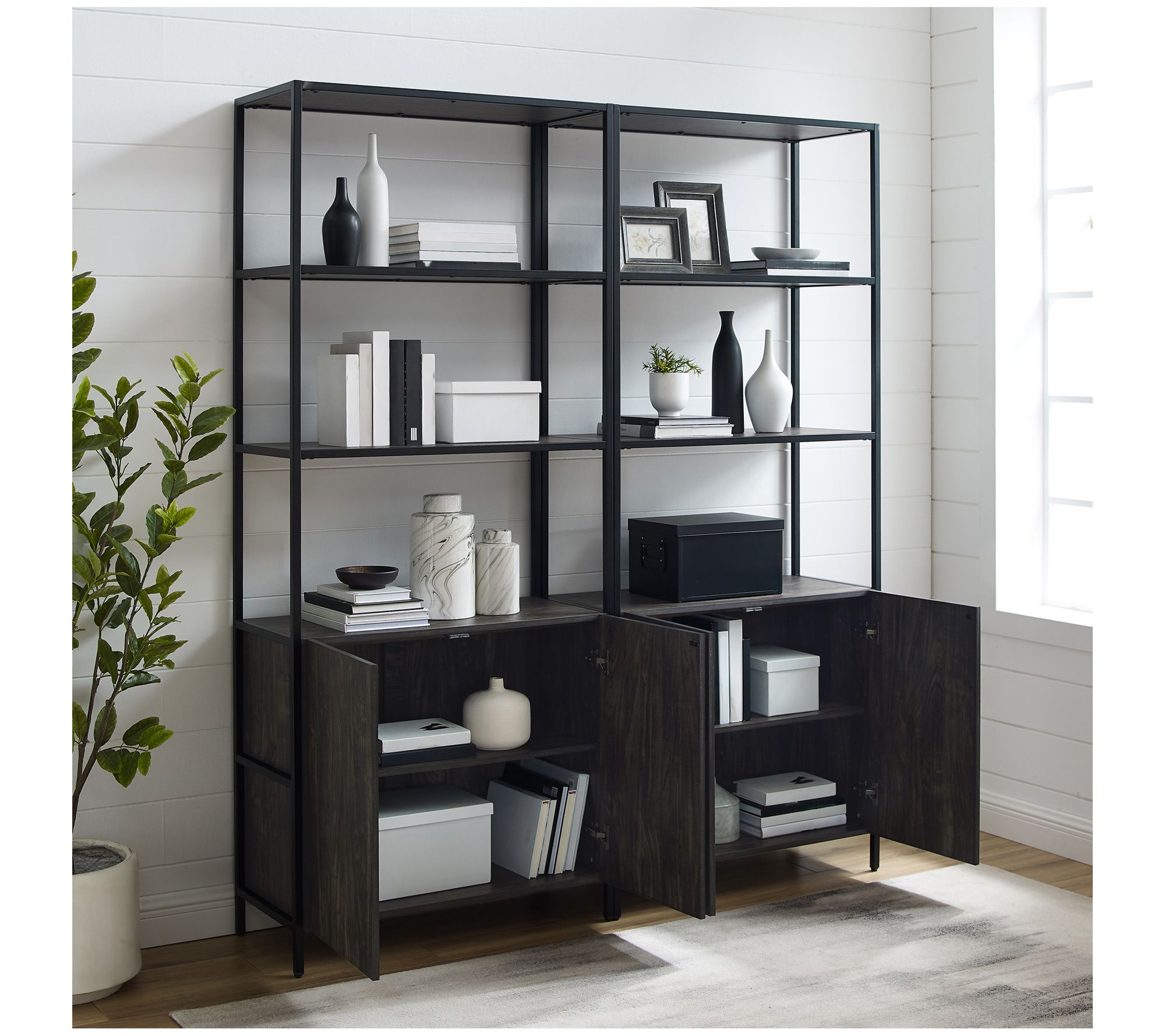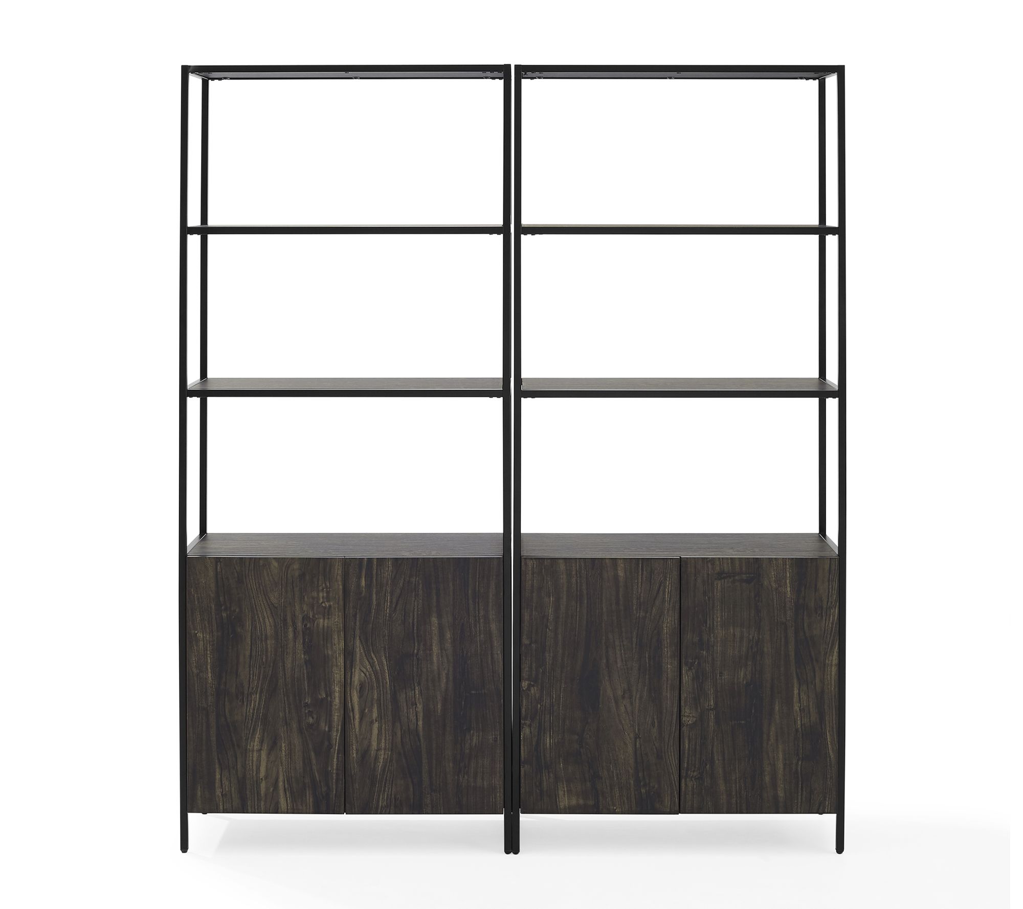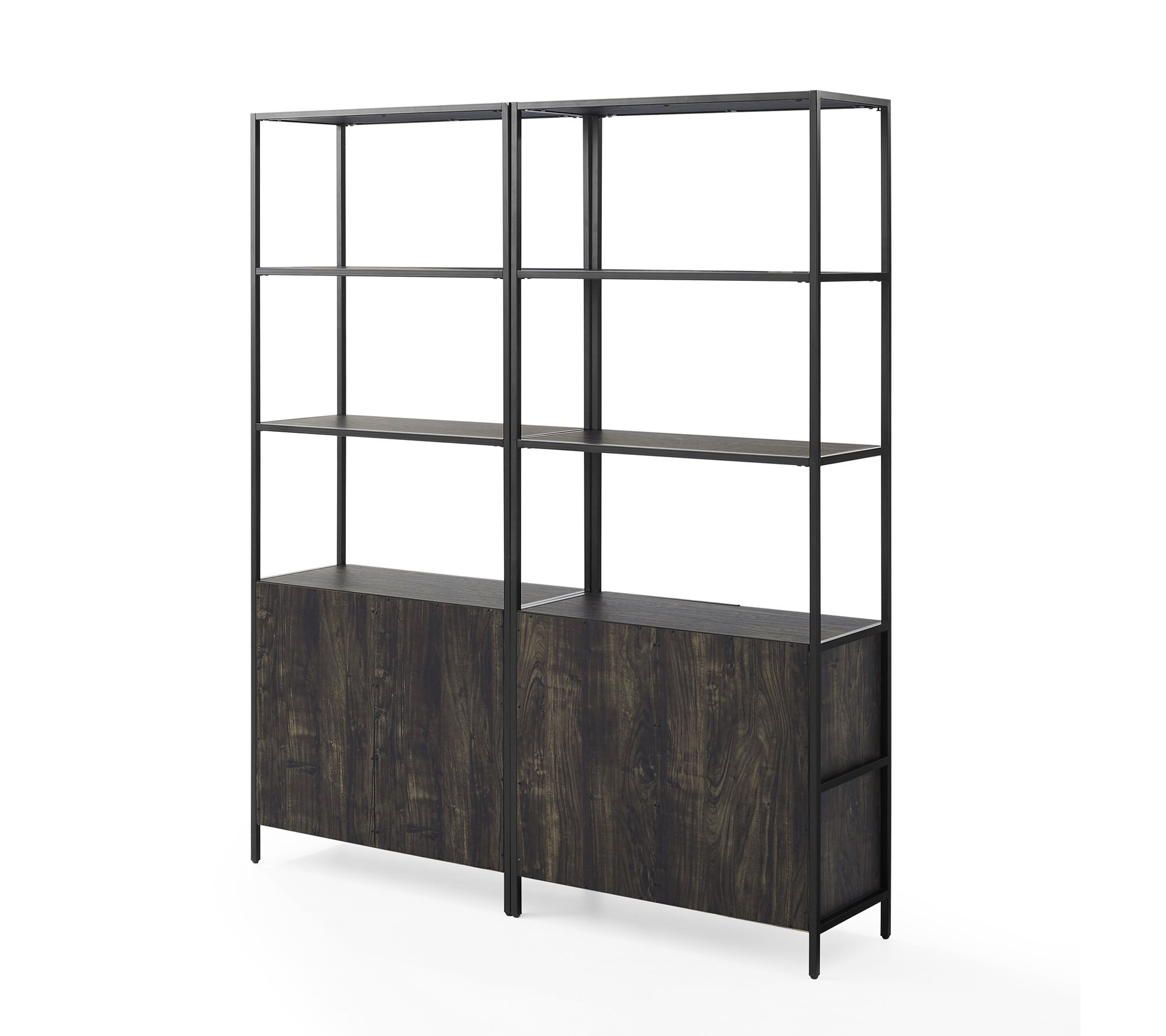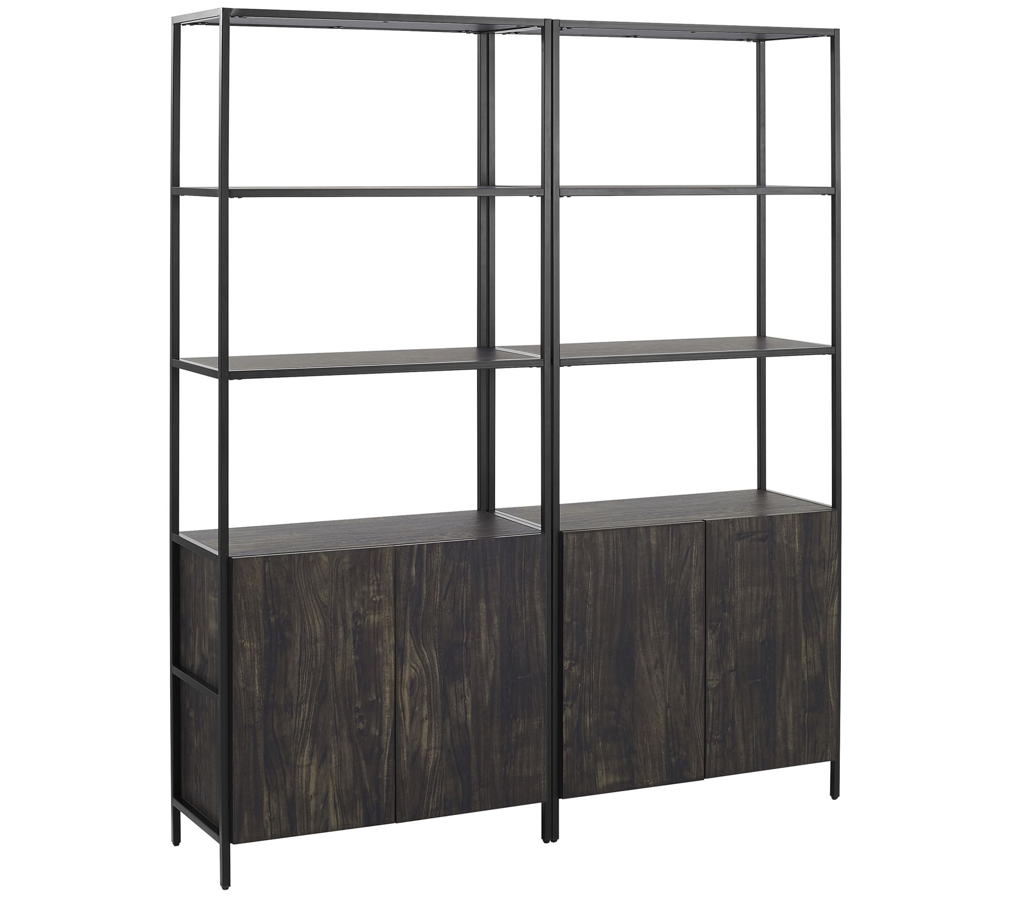 Bring an industrial edge to home organization with the Jacobsen Large Etagere set. Two spacious stationary shelves provide open storage with a sleek profile, while the base is anchored by a large storage cabinet ideal for tucking away everyday items. From Jacobsen.