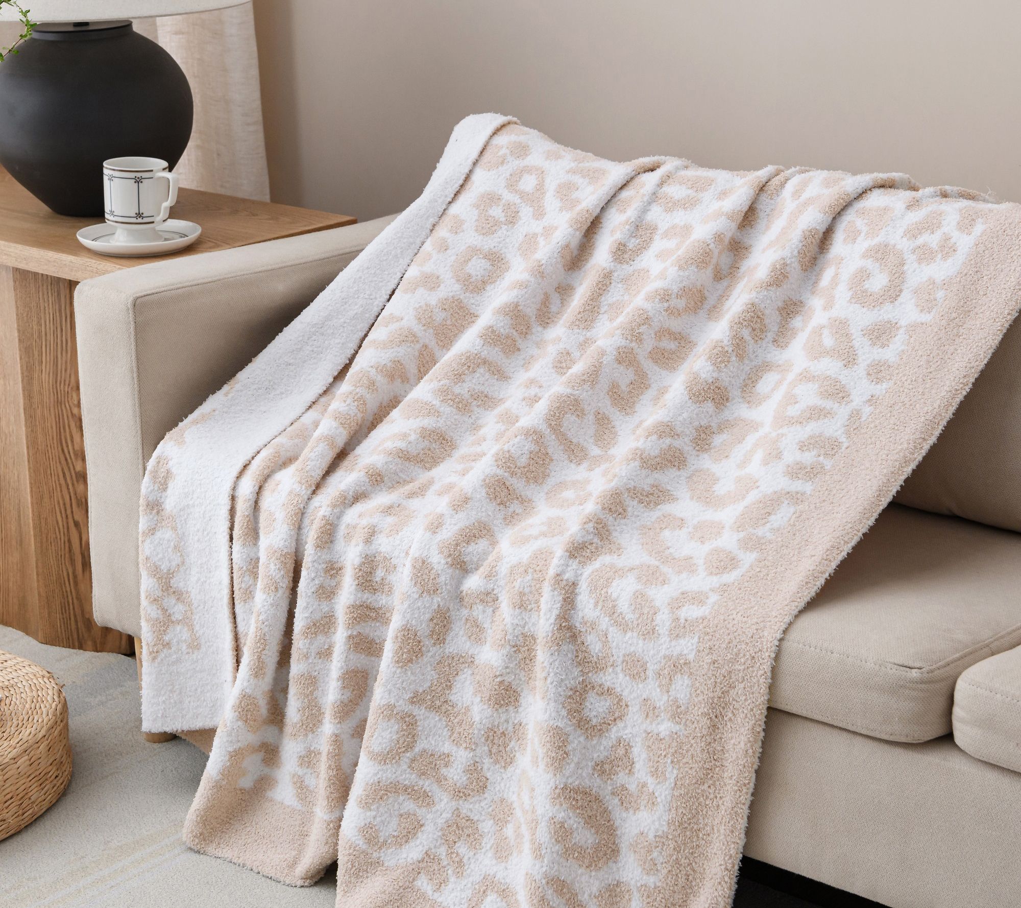 Wrap yourself in the luxurious warmth of this jacquard feather knit throw blanket, featuring a reversible animal print design that adds a touch of elegance to any room. From cozy nights to the stylish accent on your furniture, this throw is a versatile addition to your living space. From Pur Serenity.