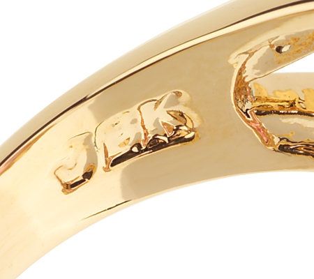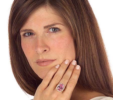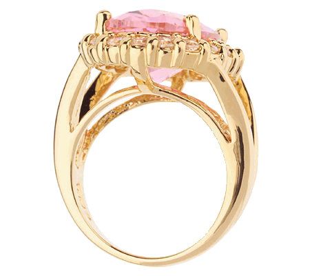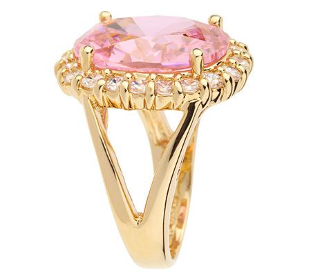 Final offering. Styled after the last gift that John F. Kennedy purchased for Jackie, this goldtone-plated sterling silver ring glistens with a large, oval simulated kunzite in the center, surrounded by a row of simulated diamonds. From the Jacqueline Kennedy Collection.