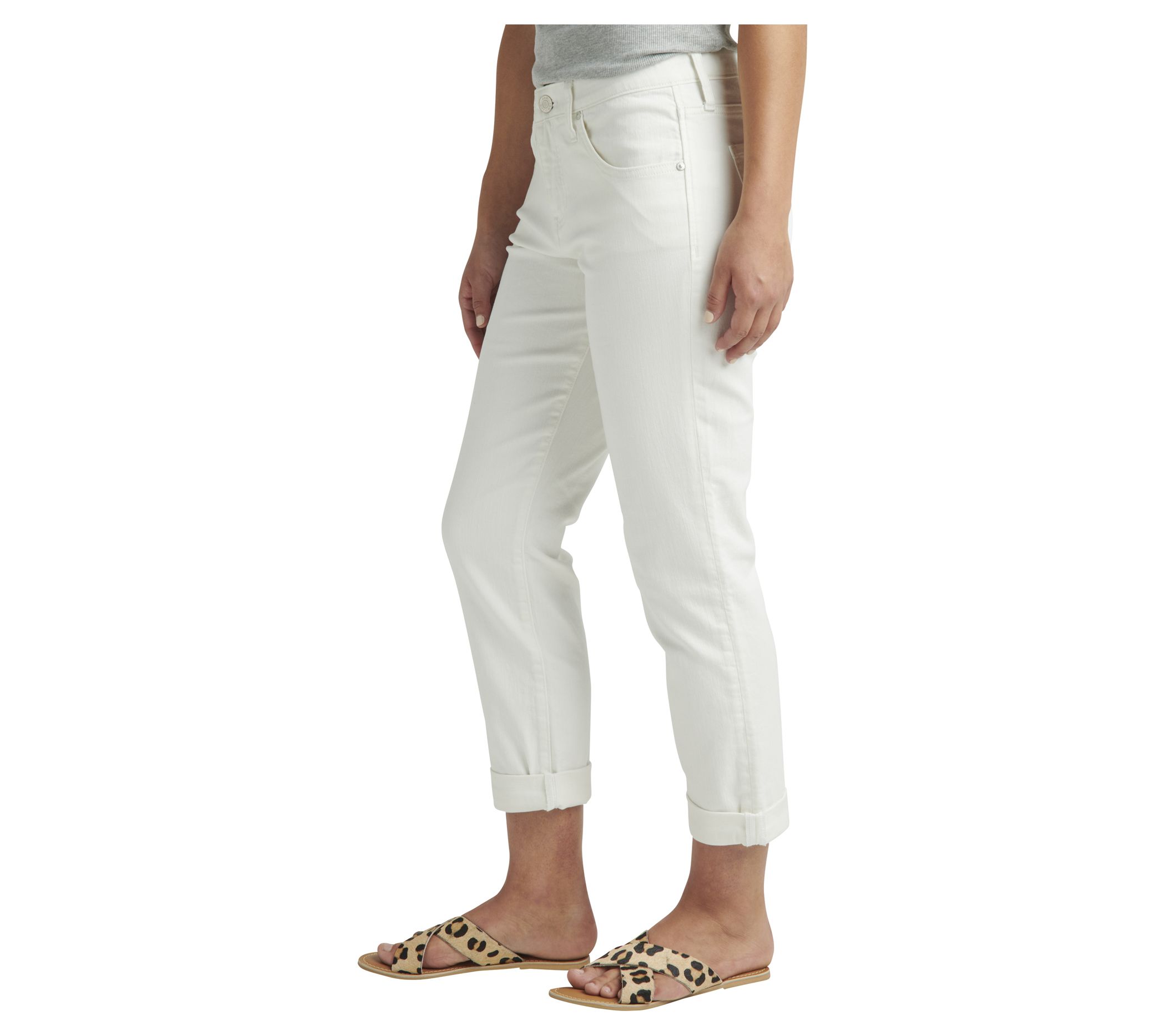 JAG Petite Carter Mid Rise Girlfriend Jeans - W hite