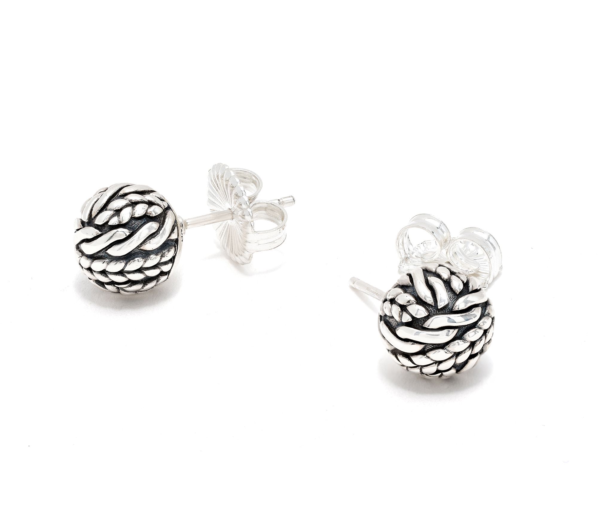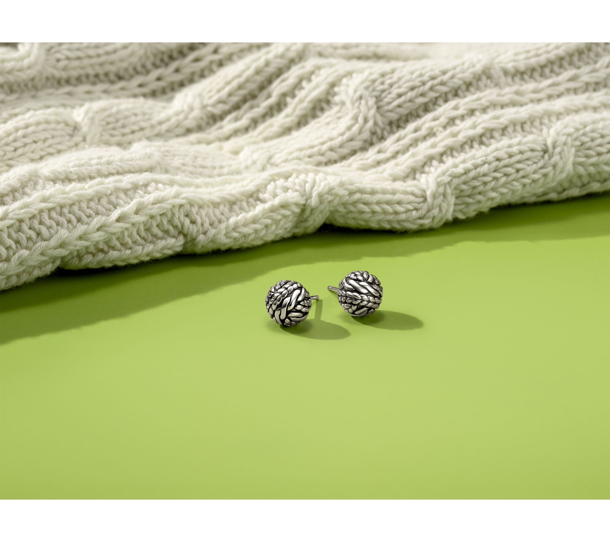 Inspired by traditional Irish knit patterns, these sterling silver stud earrings celebrate the artistry of texture and timeless elegance. The polished, oxidized finish and classic size make them an easy companion to everything from your favorite sweater to dressy ensembles, while the secure clutch back adds comfort for all-day wear. From JAI.