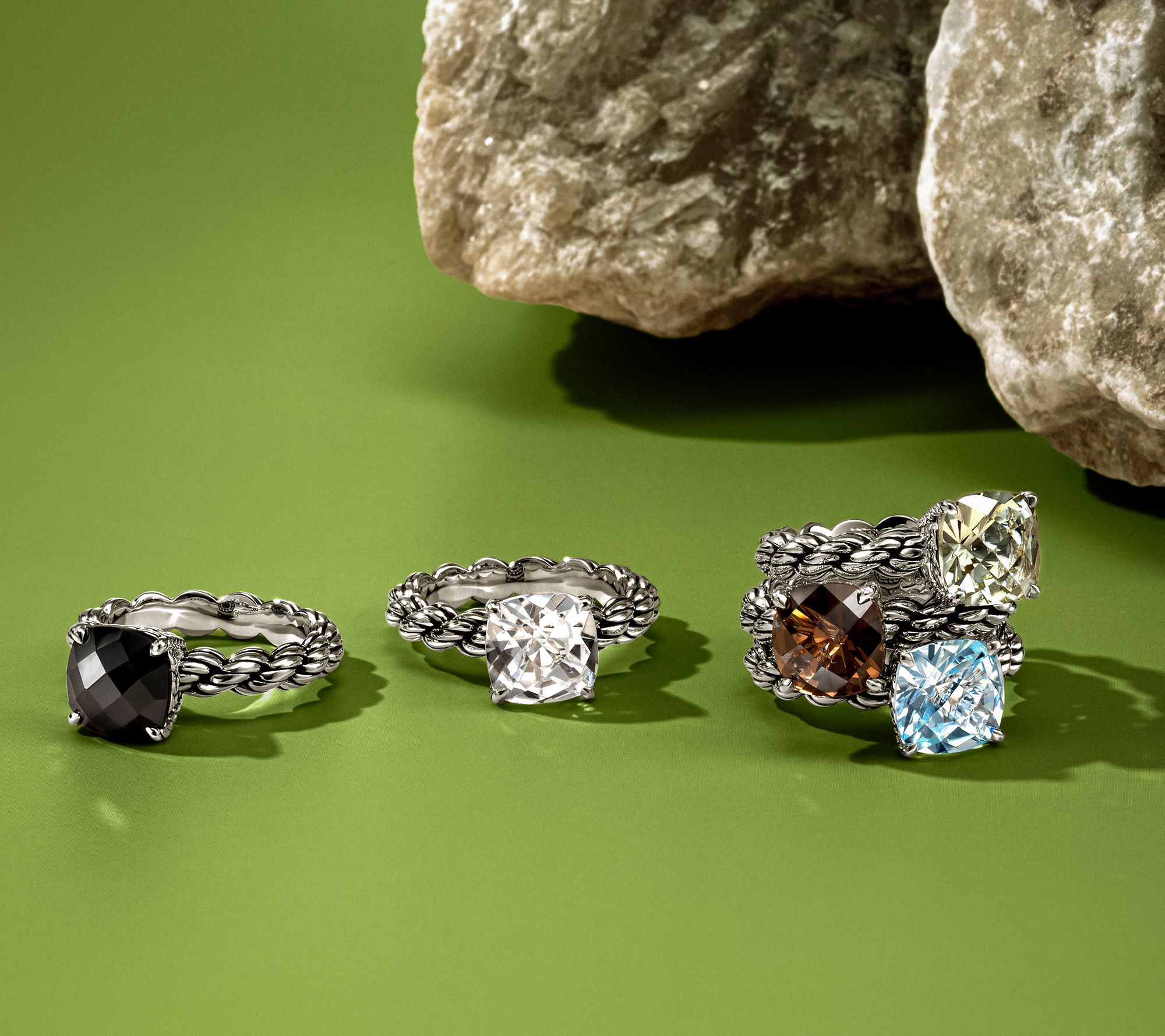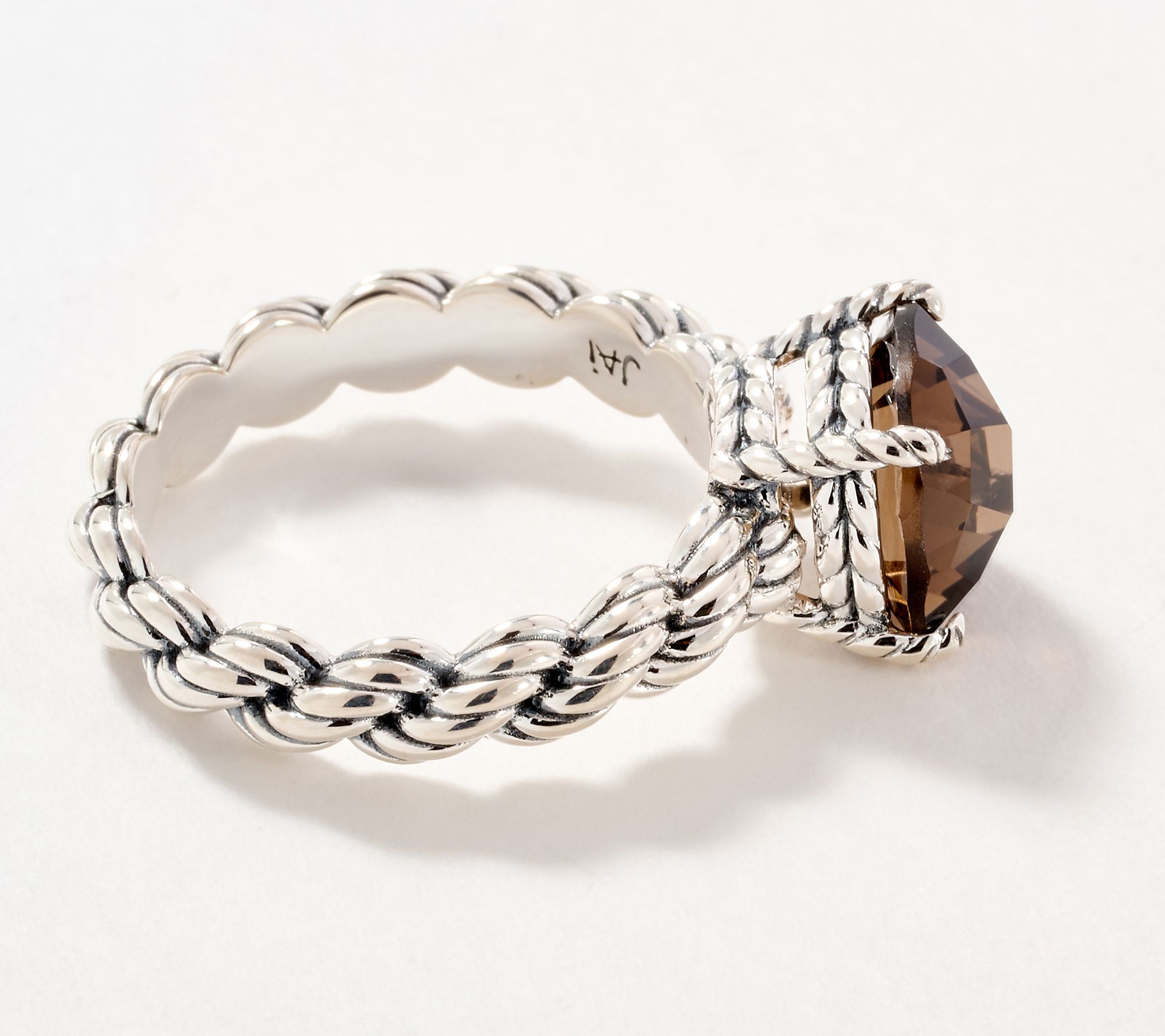 Celebrate meaningful connections with this sterling silver ring from JAI's Ireland Collection, showcasing an intricately textured Cara rope design and basket-weave details. A striking cushion-cut gemstone draws the eye, creating a statement piece that shines at special gatherings or adds polish to day-to-day looks. From JAI.