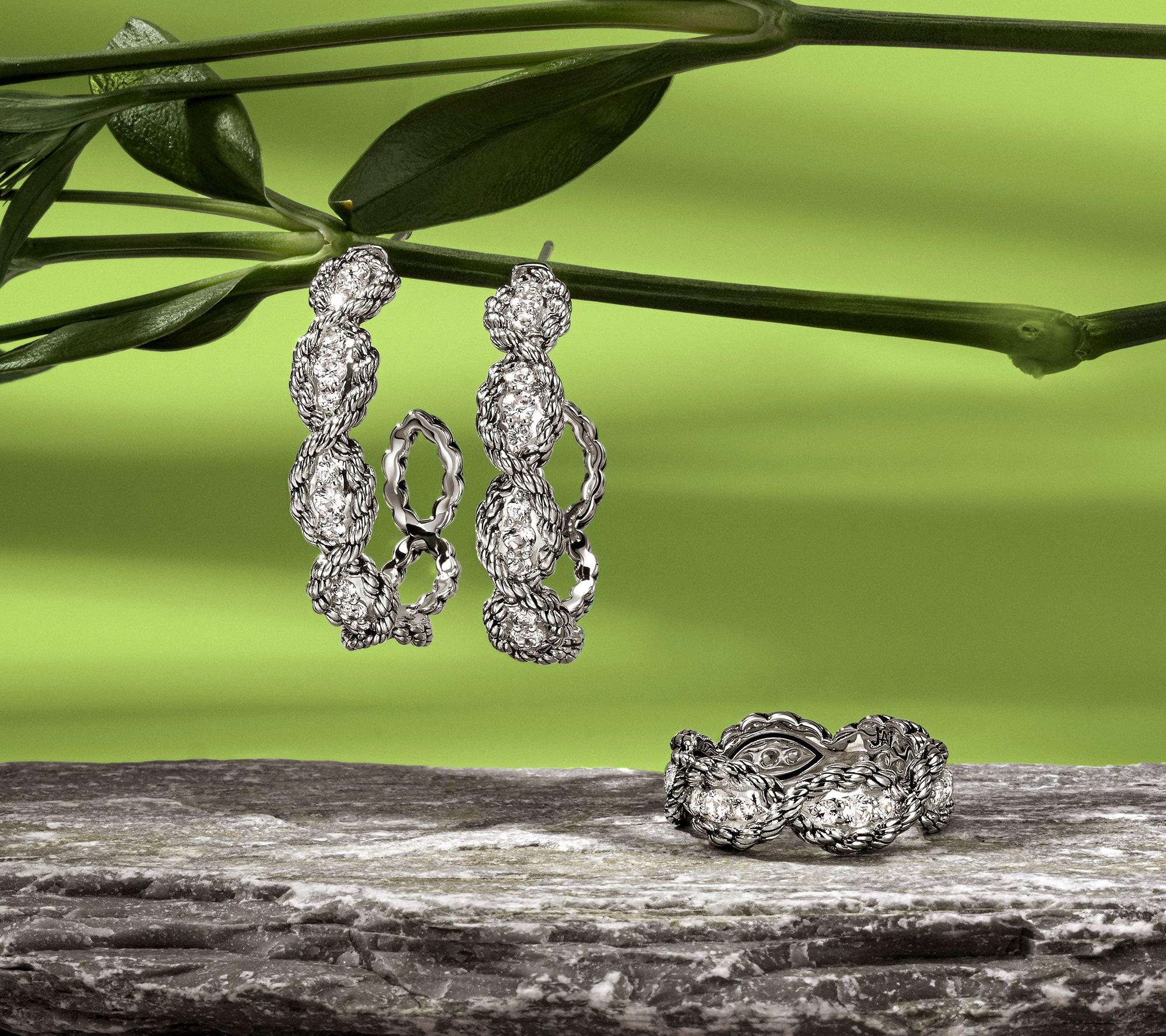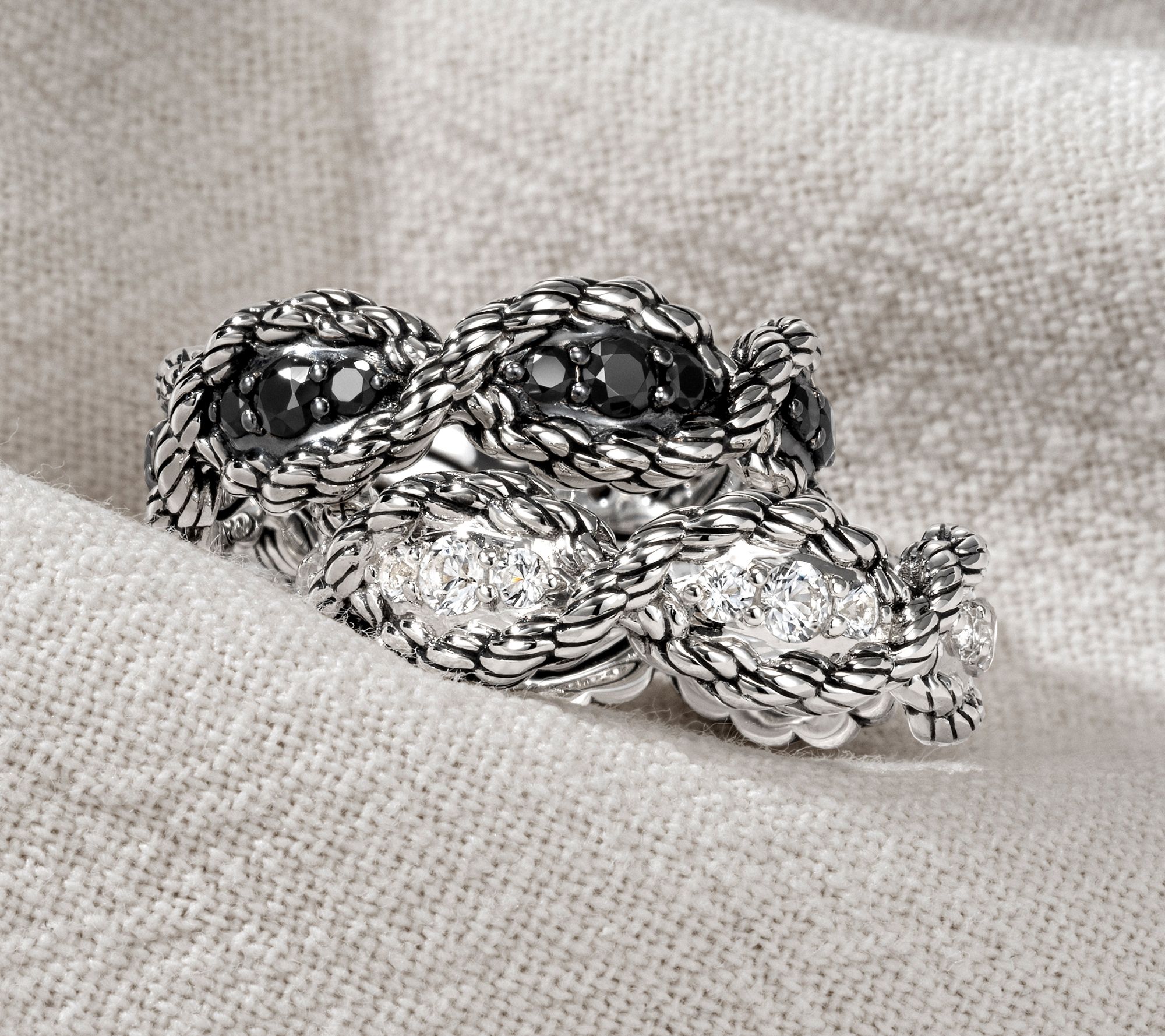 JAI Ireland Sterling Silver Cara Rope Pave Gemstone Ring