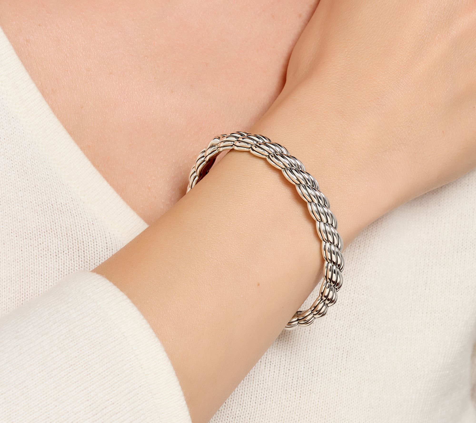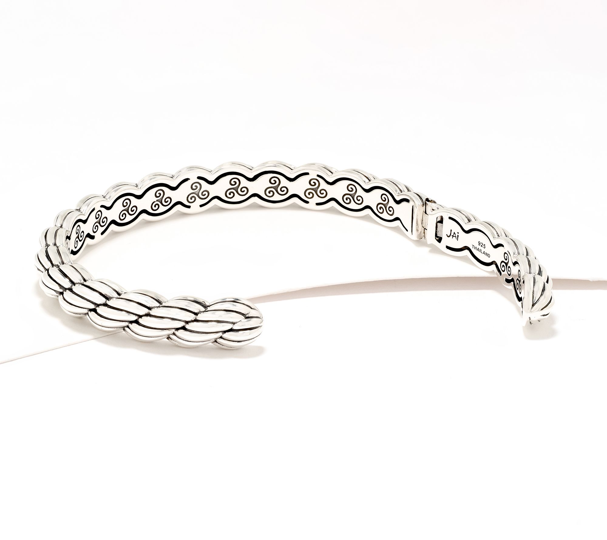 A symbol of strength and fluidity inspired by traditional Irish designs, JAI's Cara rope-textured cuff is both a meaningful addition to your bracelet stack and a piece with substantial style presence that can stand on its own. A triple swirl motif on the inside adds a special detail you'll notice every time you put it on. From JAI.