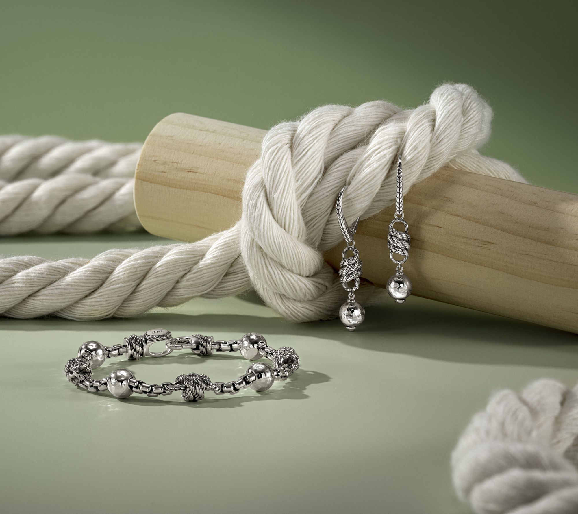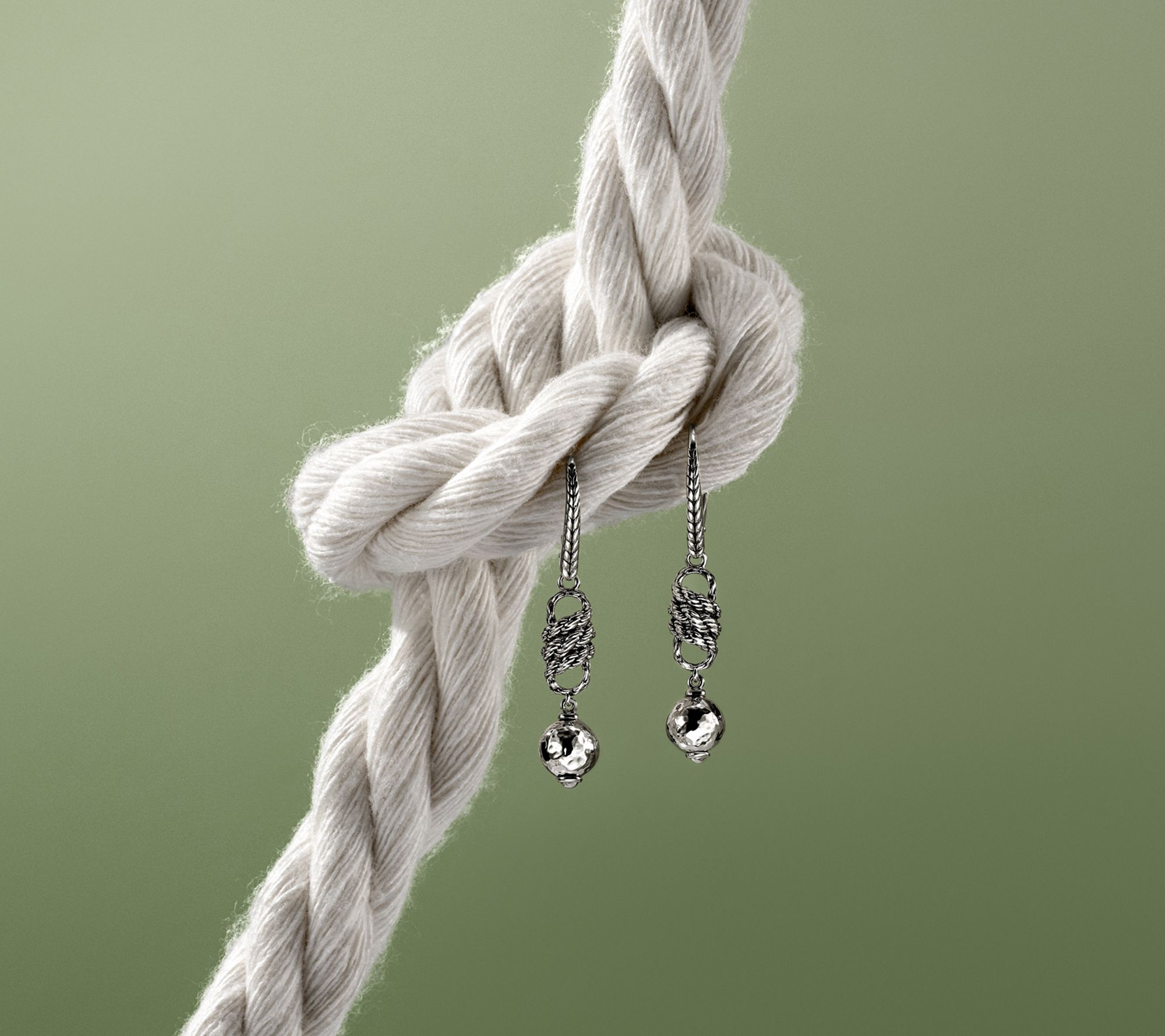 JAI Ireland Sterling Silver Hammered Bead & Cara Rope Earrings