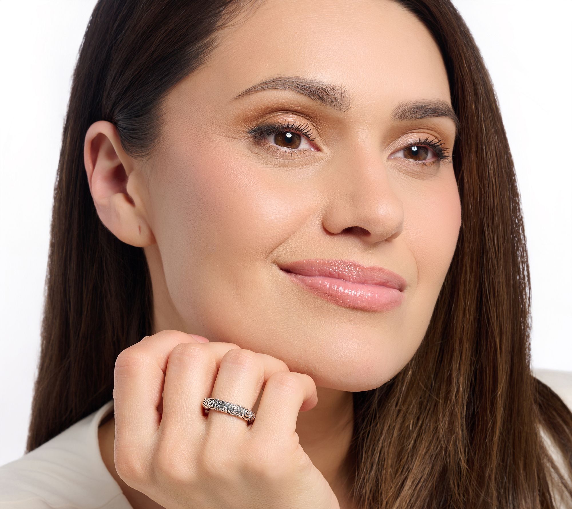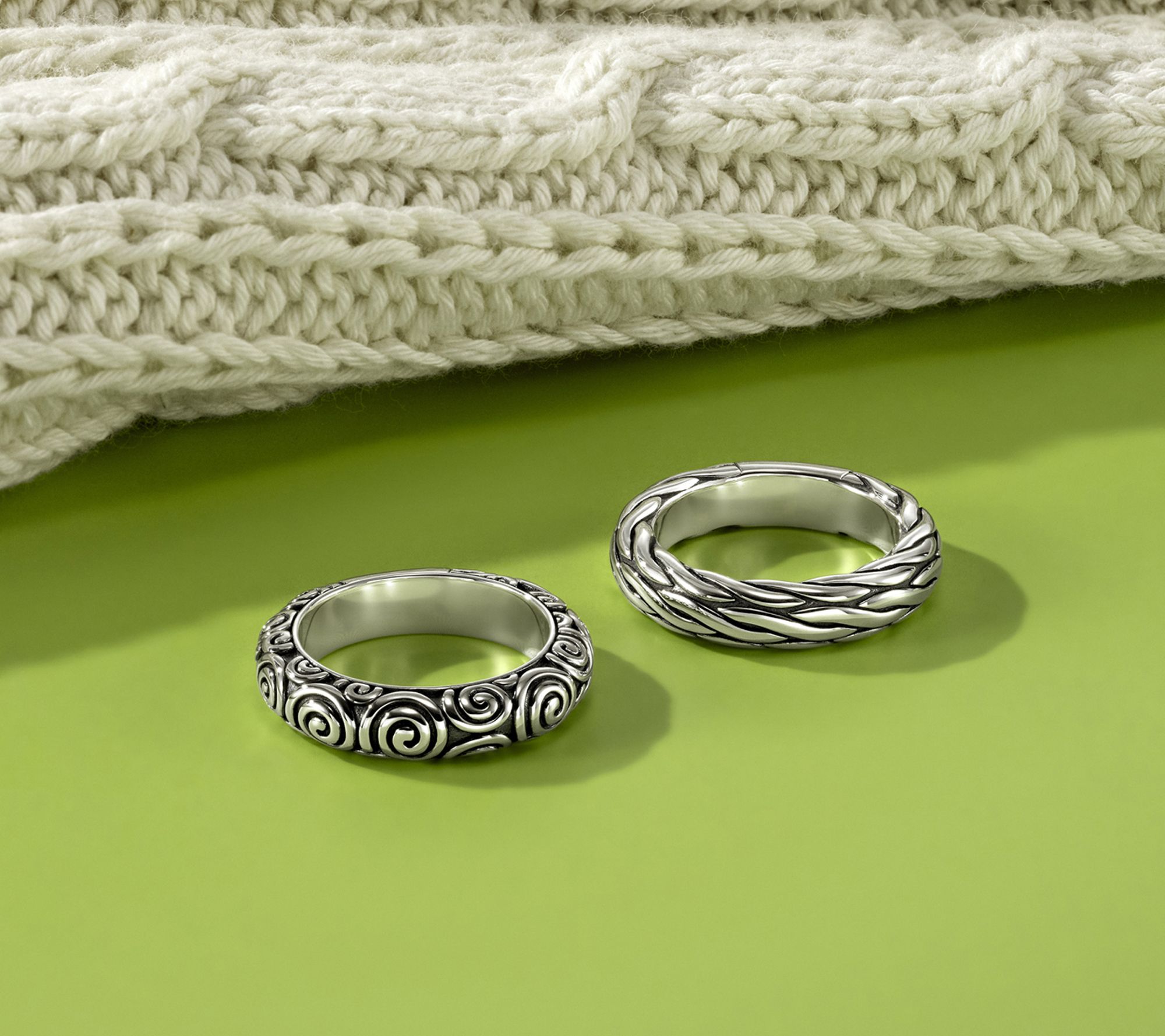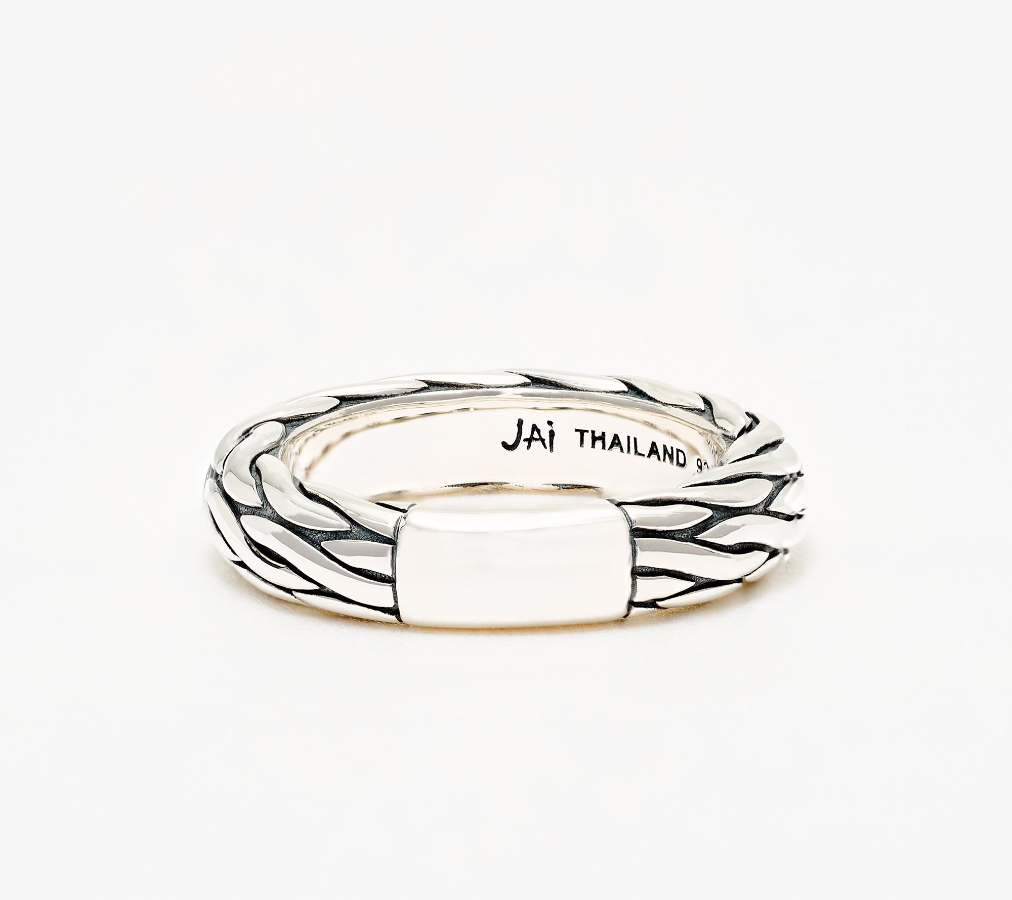 Richly textured details bring depth to this sterling silver band ring, inspired by Ireland's traditional Aran weave or Celtic swirl motifs. The polished and oxidized finish lends a radiant touch that pairs beautifully with both casual and dressy looks, making the 5mm band a stylish choice for everyday wear or special occasions. From JAI.