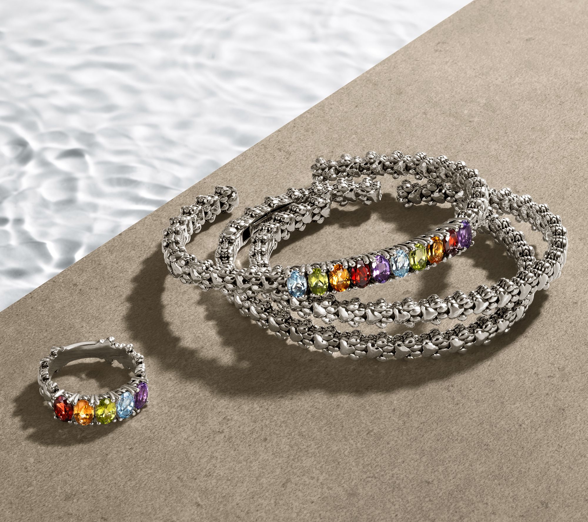 JAI Sterling Si lver Multi-Gems tone Rainbow Br idge Ring