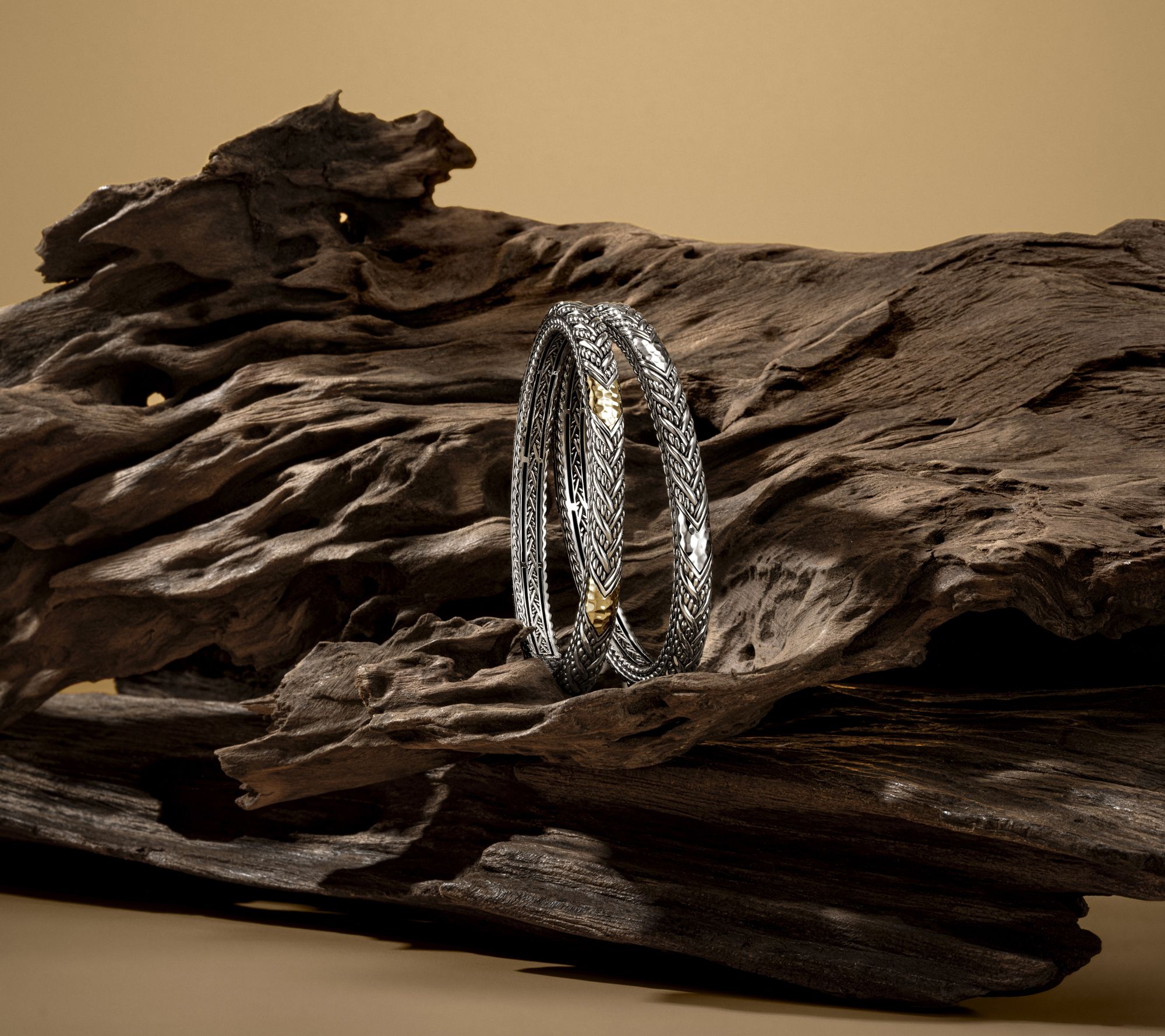 Carved from every angle. The instant you set your eyes on this woven bangle, with its heritage-inspired texture, artisan details, and 14K gold accents, you know it's JAI -- and everyone else wants to know exactly where you found it! A curated collector's piece that's as easy to pair with a crisp blouse for work as it is to layer with other favorites for a weekend vibe. From JAI.