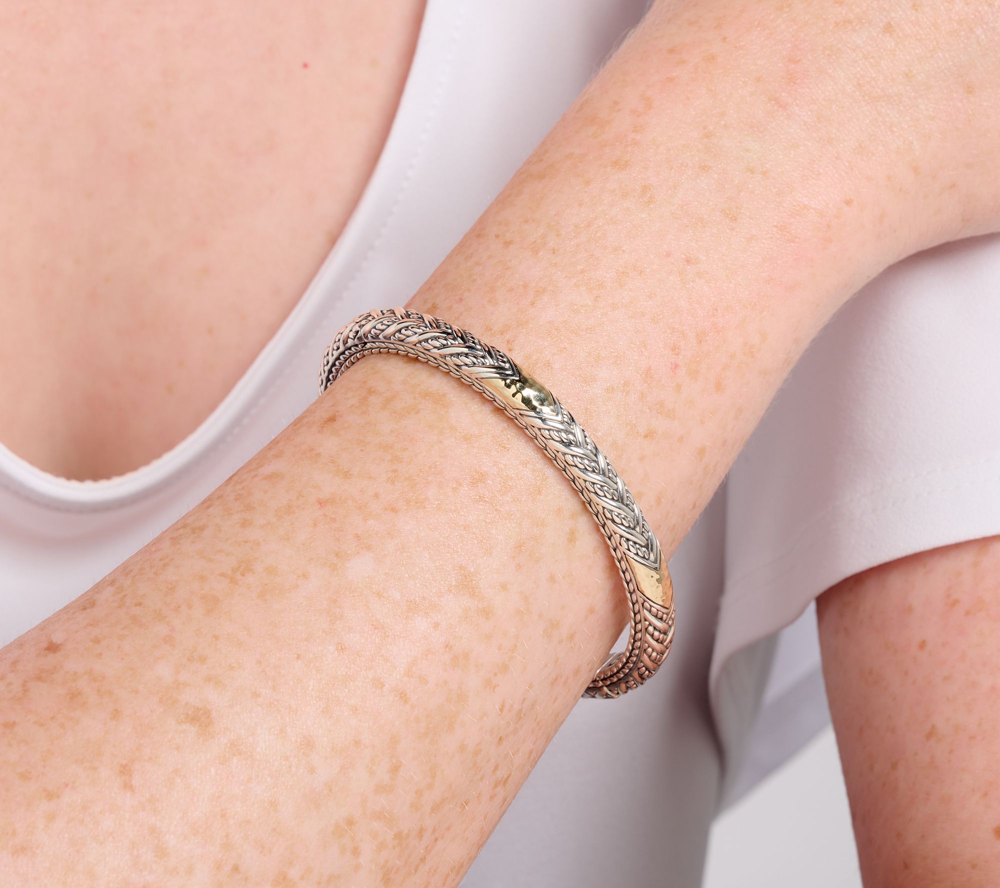 JAI Sterling Silver & 14K Legacy Weave 6.0mm Bangle Bracelet