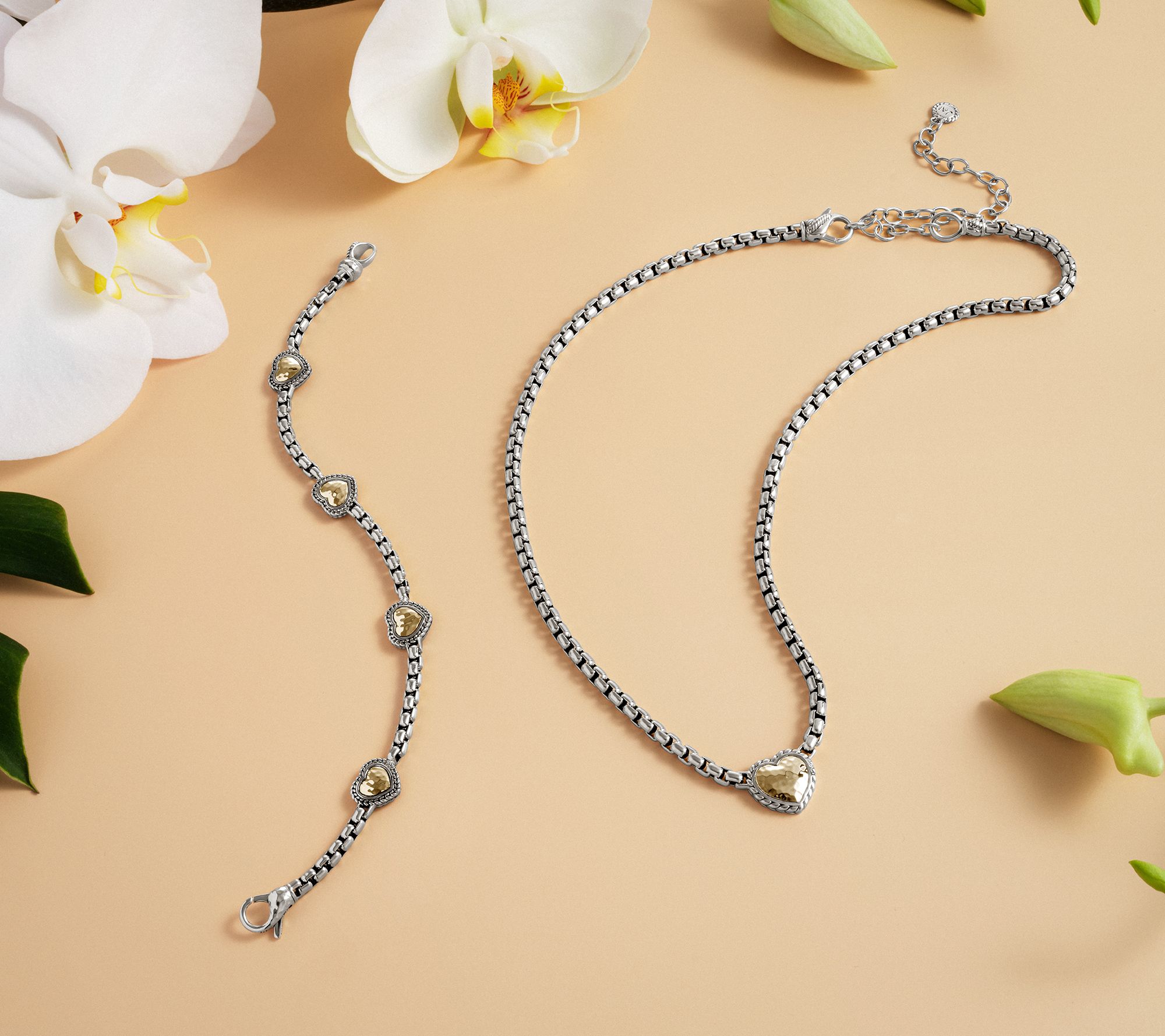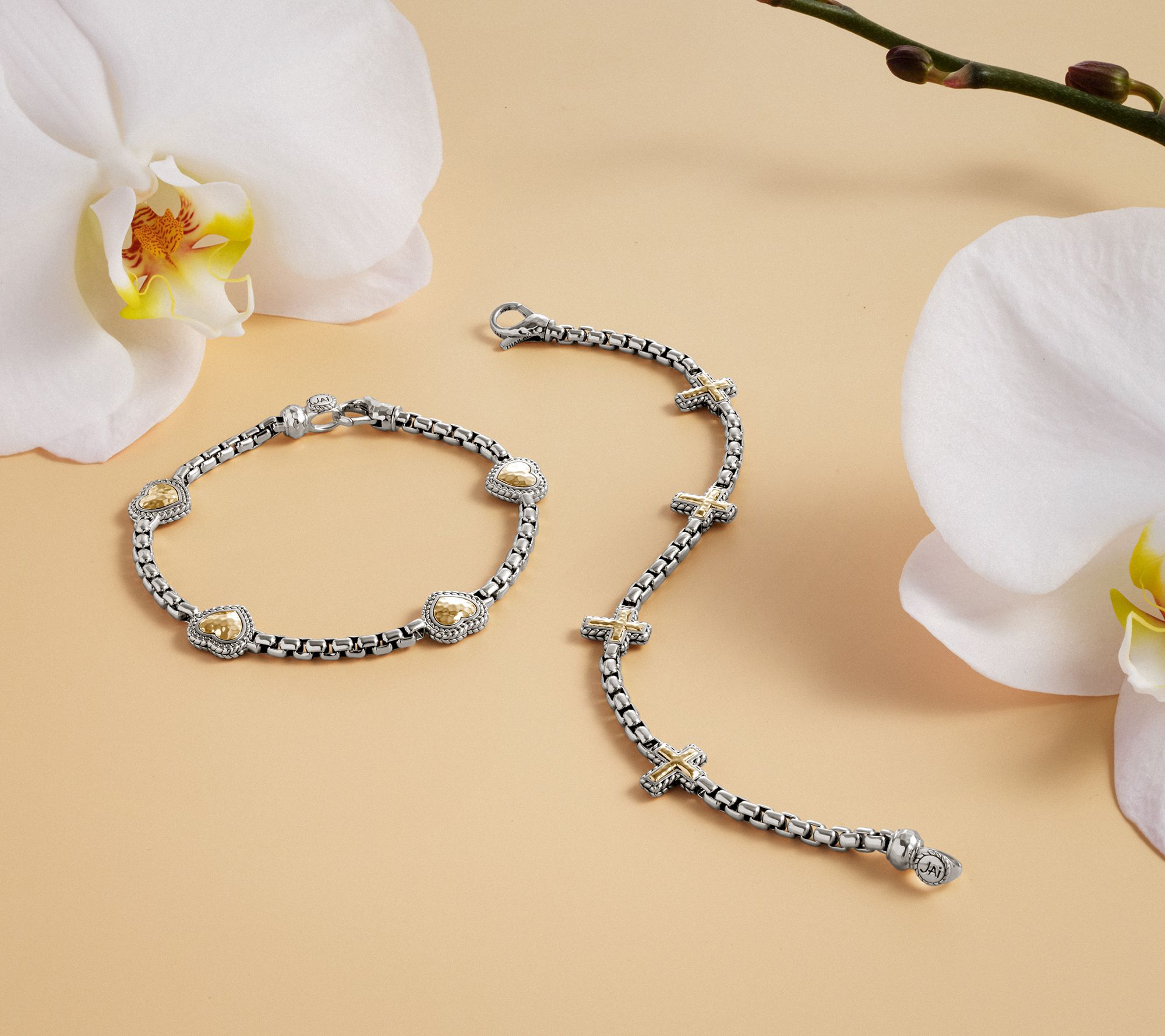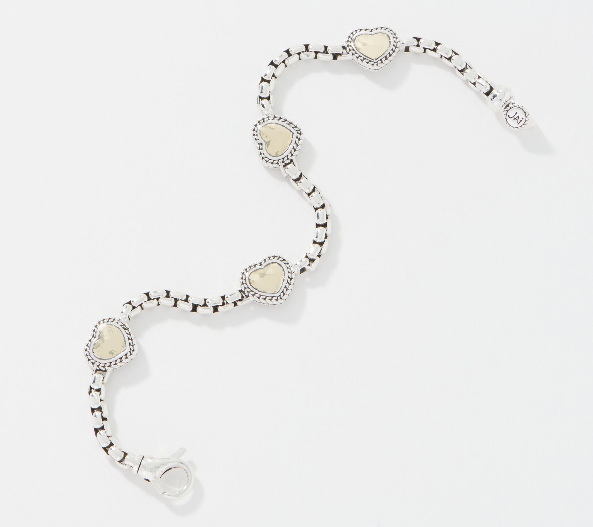 JAI Sterling Silver & 14K Symbols 3.7mm Box Chain Bracelet