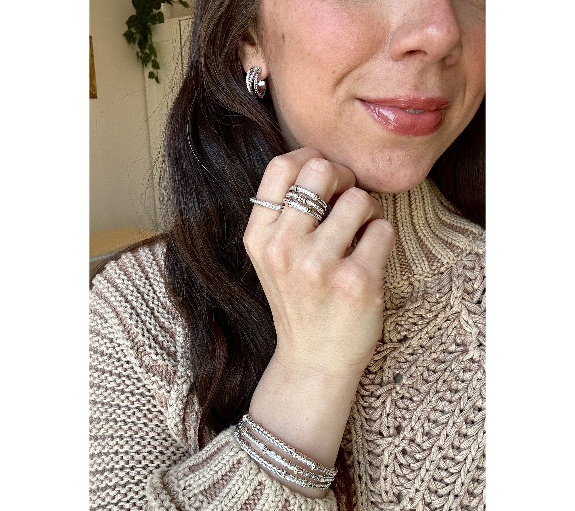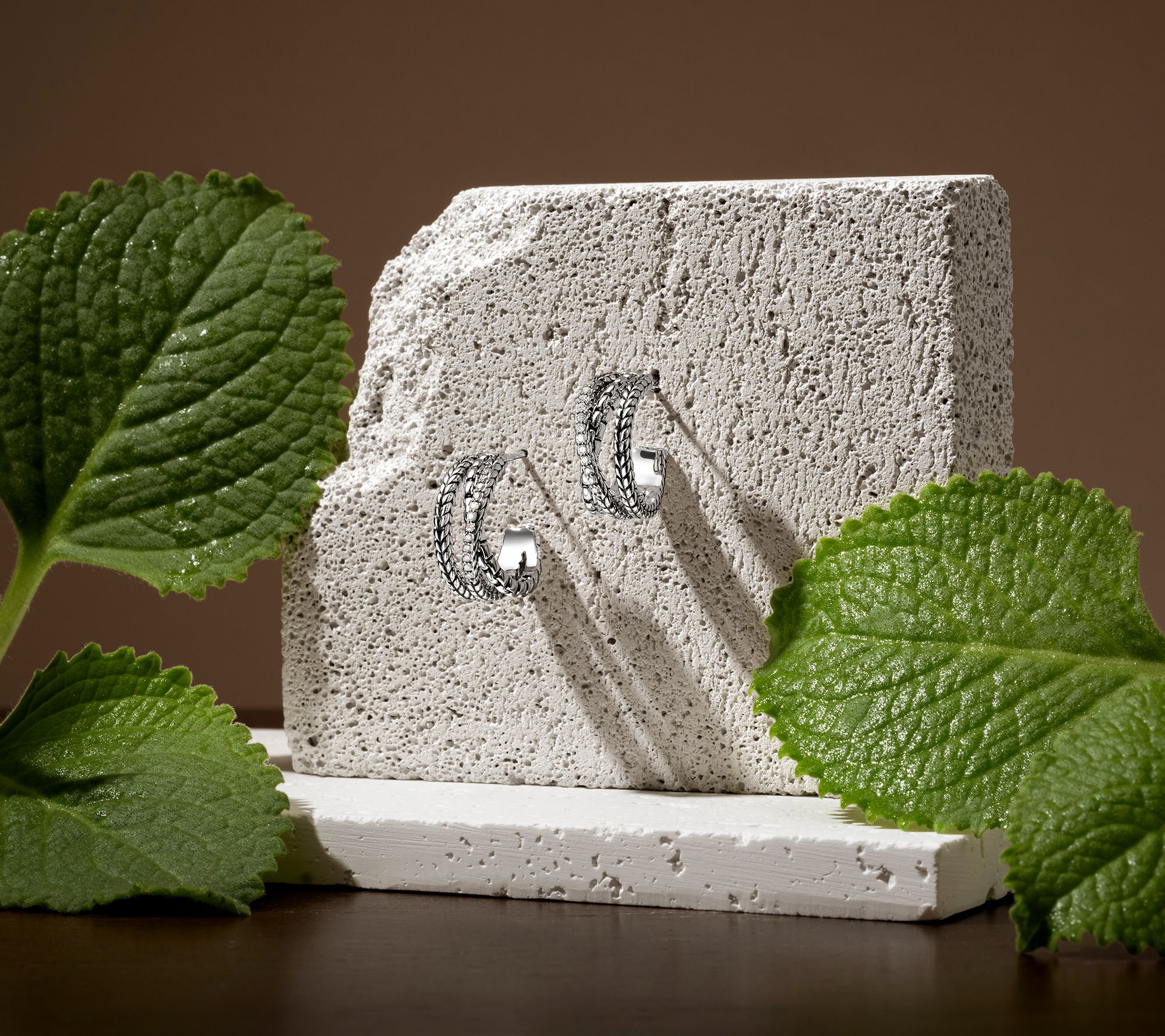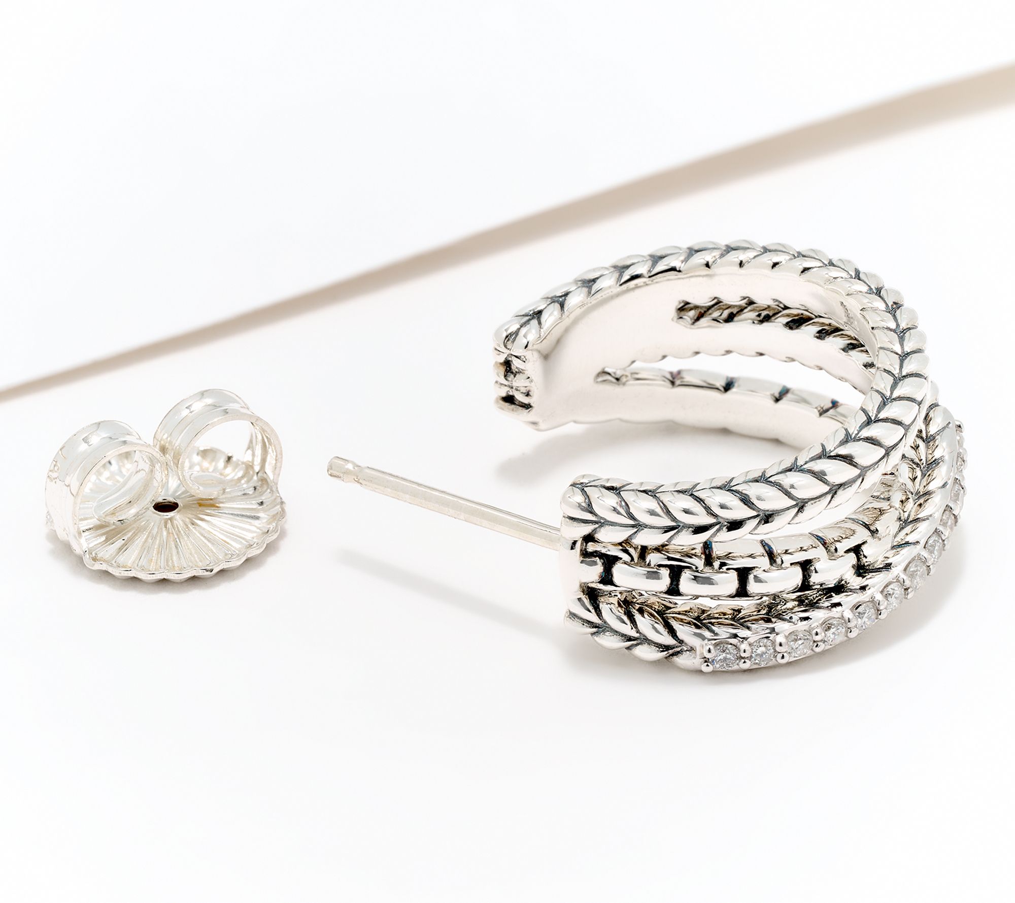 From sipping coffee with friends to celebrating major milestones, enjoy it all with a little sparkle on the side. These JAI hoops feature a stunning textured crossover design accented with the dazzle of diamonds, adding sophistication and style to your every day. From JAI.