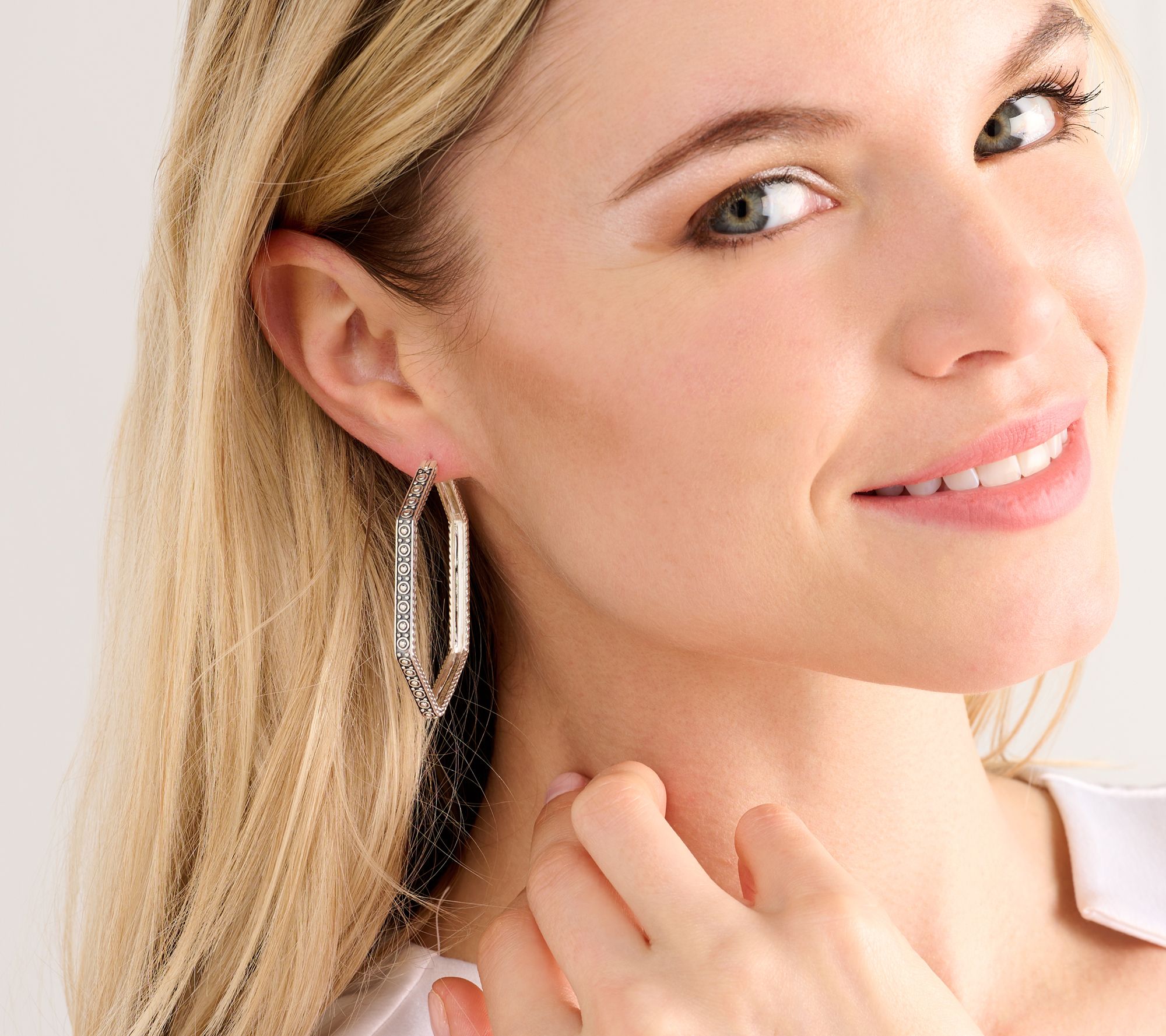 JAI Sterling Silver 2" Geometric Textured Hoop Earrings