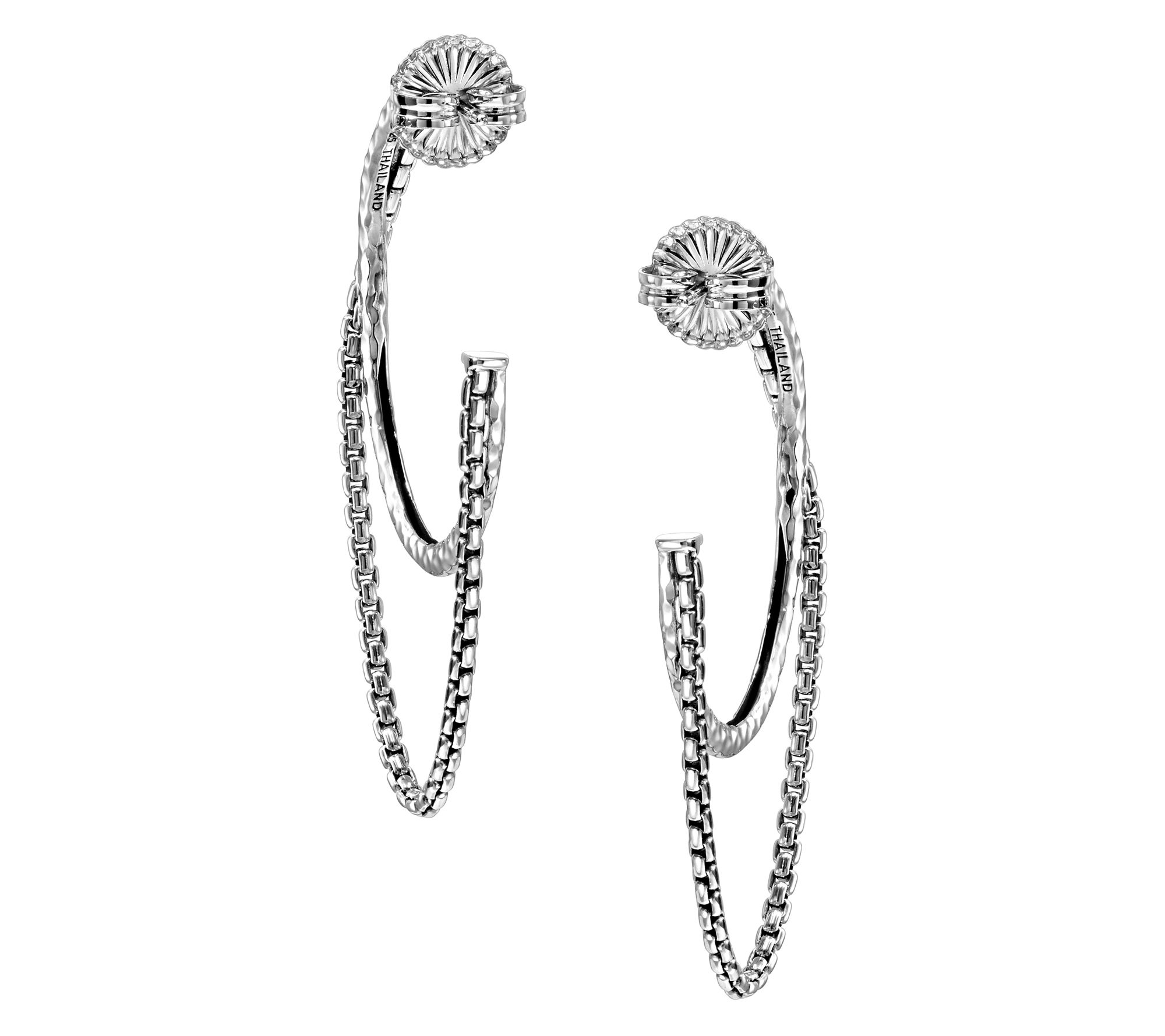 JAI Sterling Silver 2" Hammered Box Chain HoopEarrings