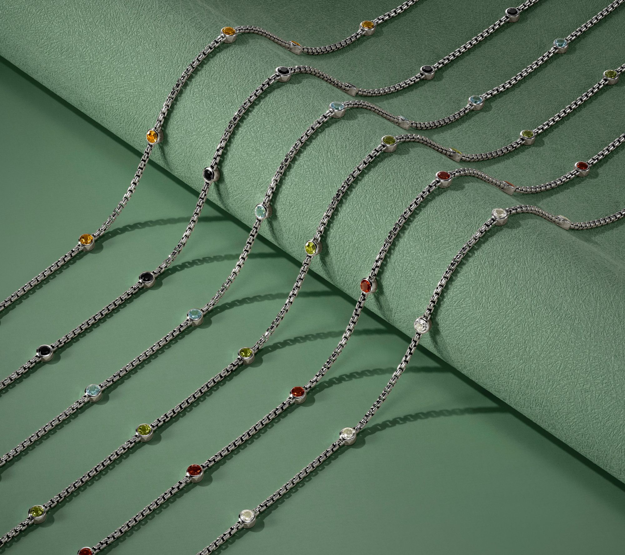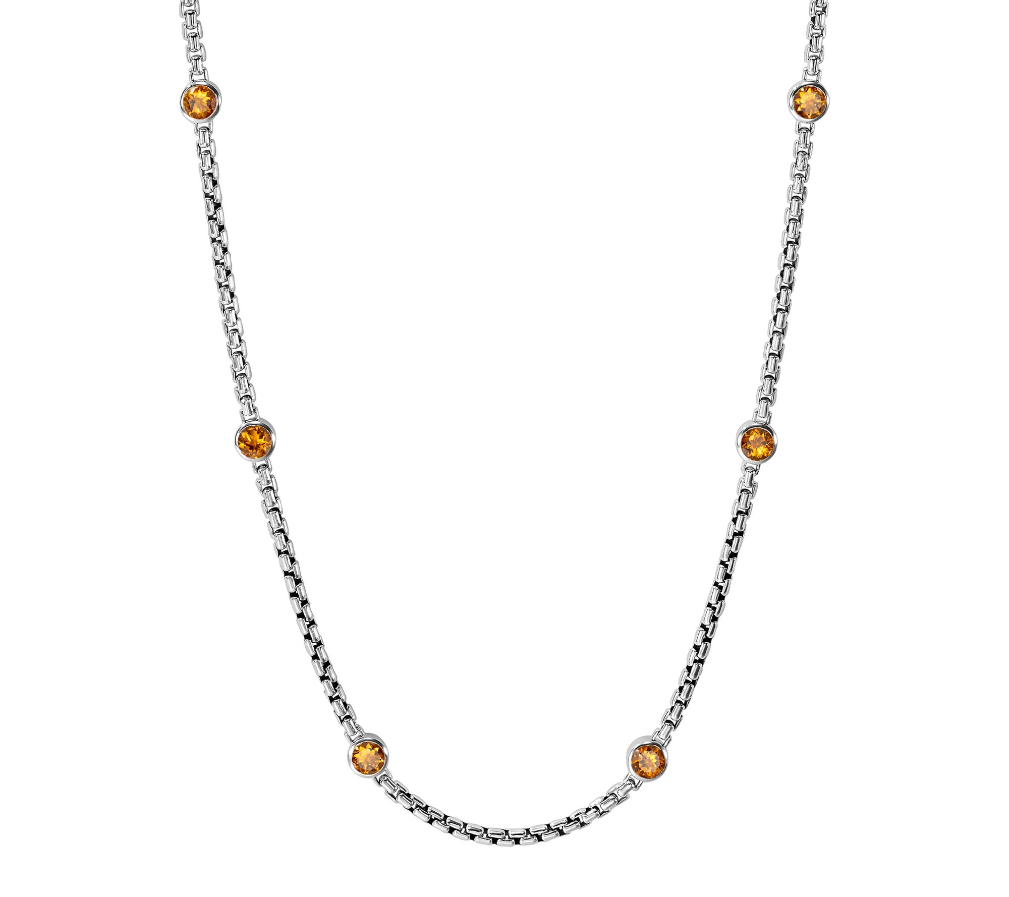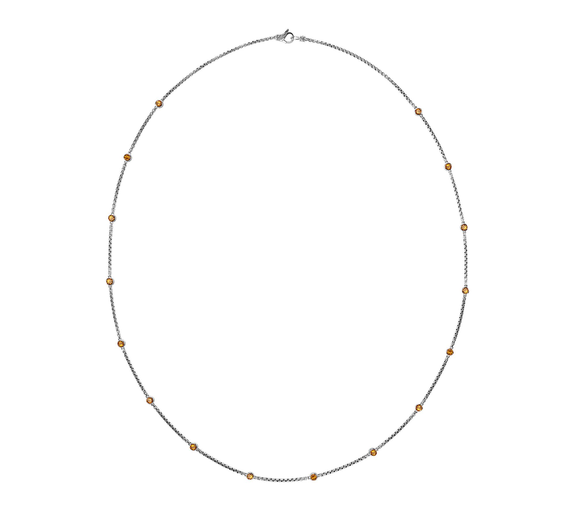 Add a touch of elegance to your everyday look or create a layered statement for evening outings with this stylish sterling silver box chain gemstone necklace. The 36" length offers versatile styling options -- from solo wear to pairing with other pieces -- making it a timeless addition to your jewelry collection. From JAI.