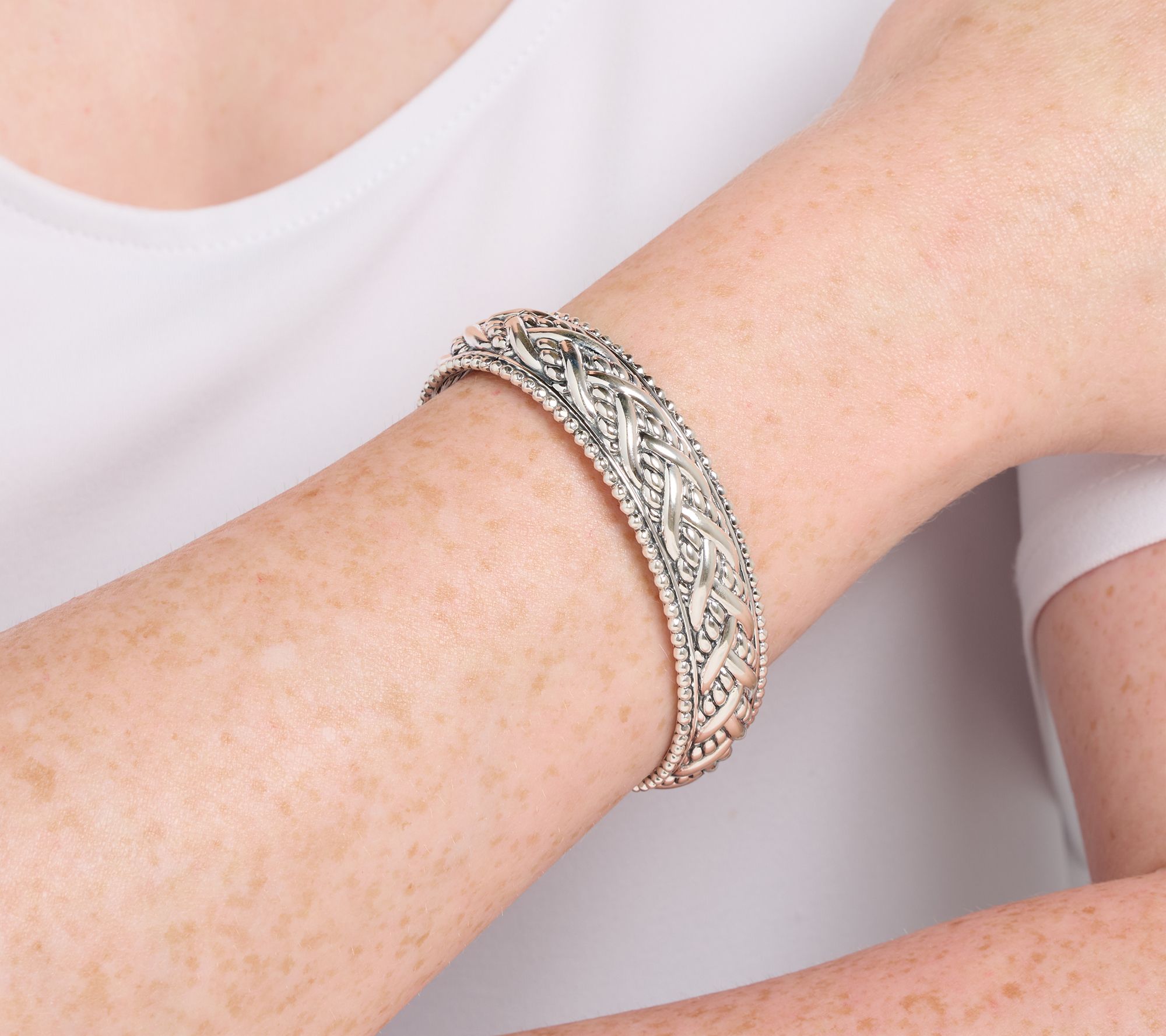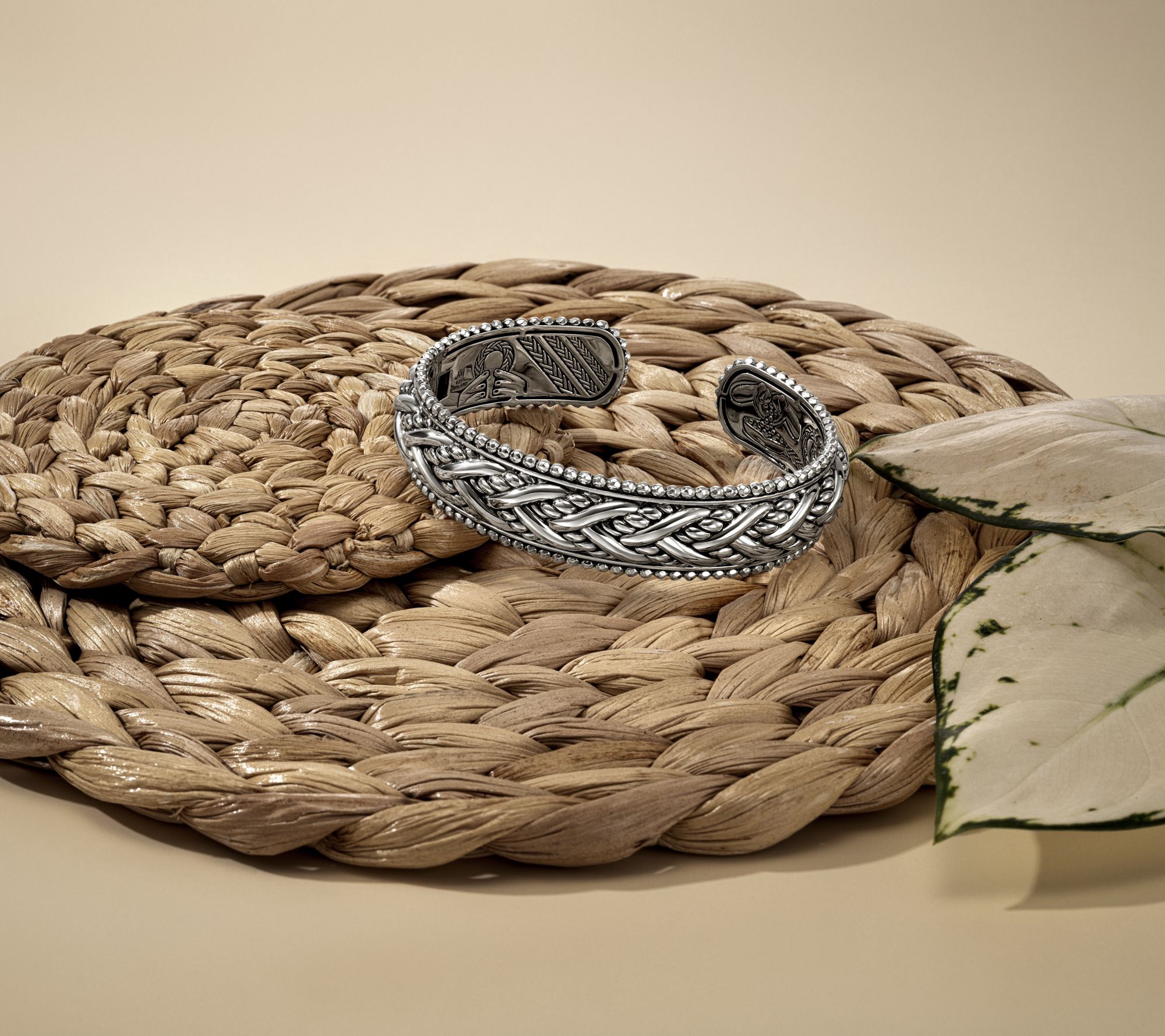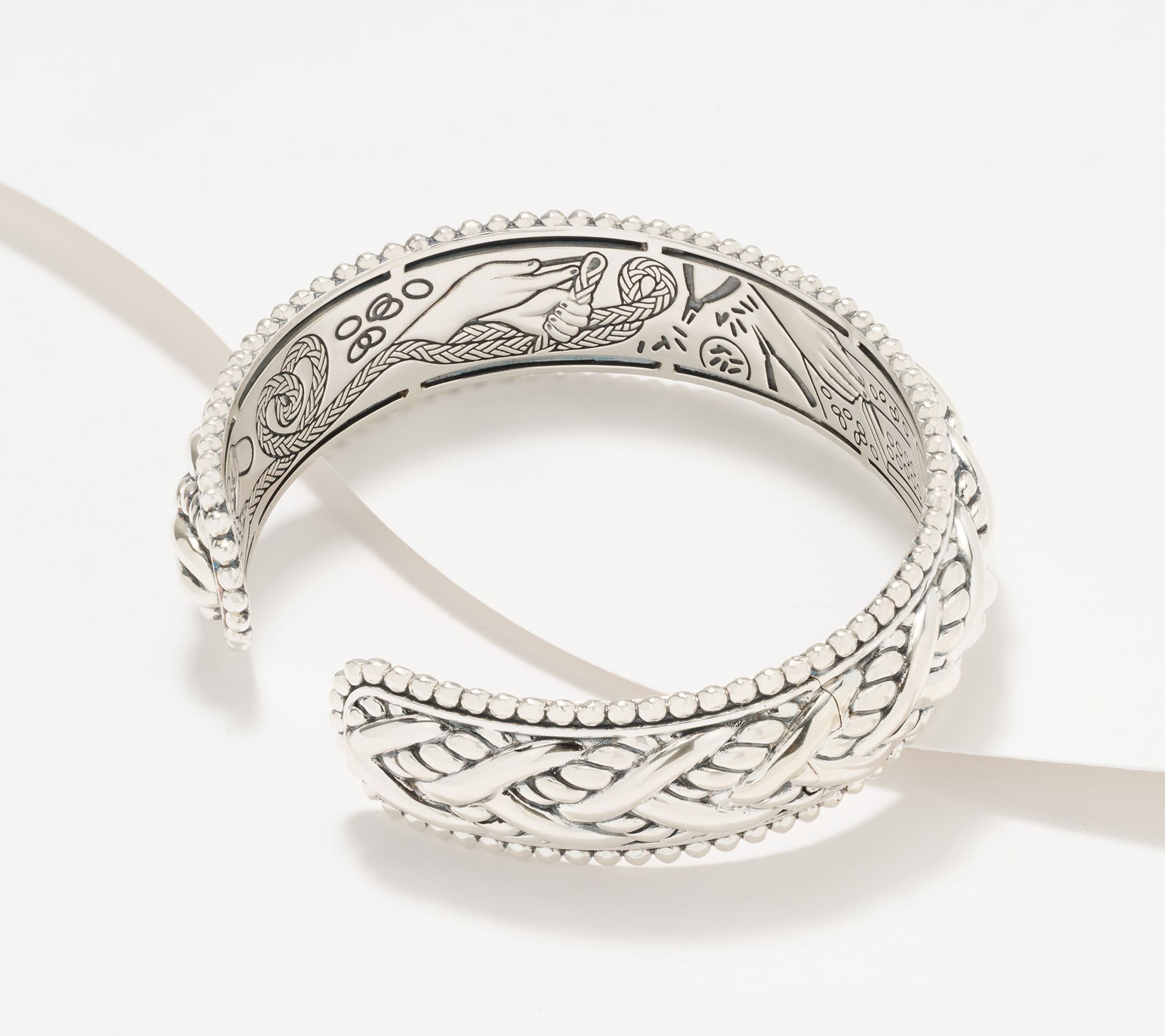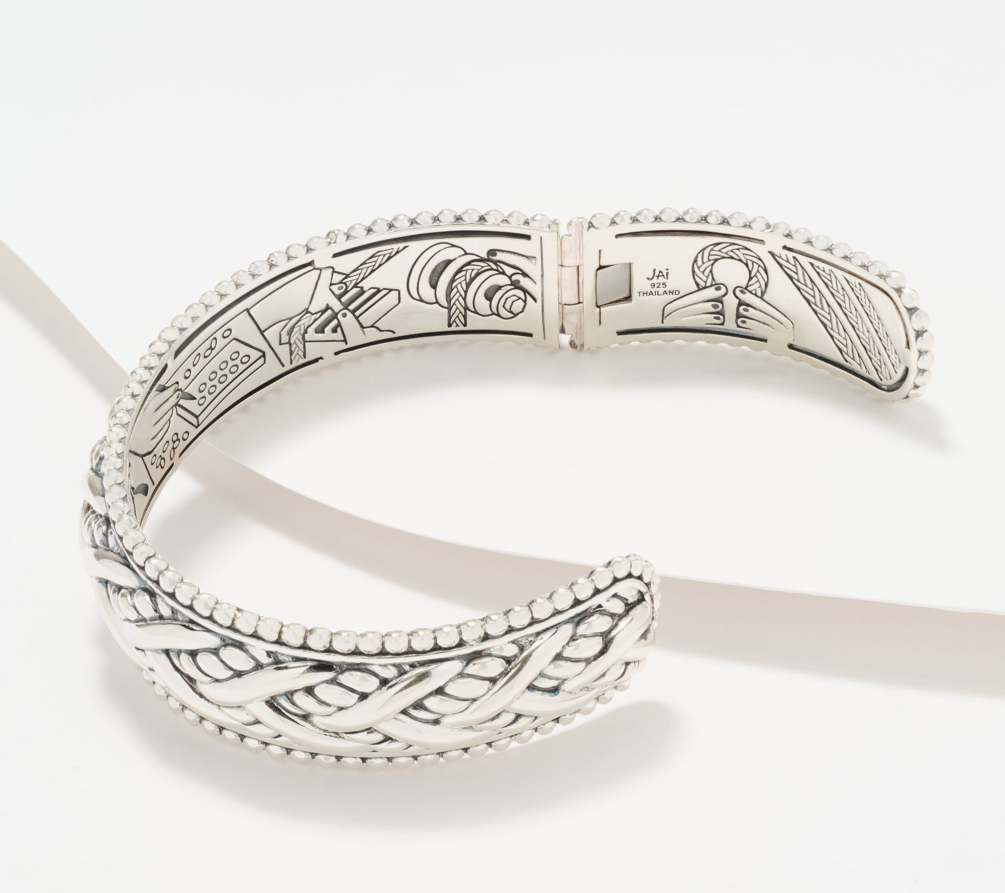 For your eyes only. The detailed craftsmanship scene on the interior of this legacy woven cuff feels like a personal window to the world of JAI -- making it even more of a forever treasure. Talk about an intriguing way to layer your look! From JAI.