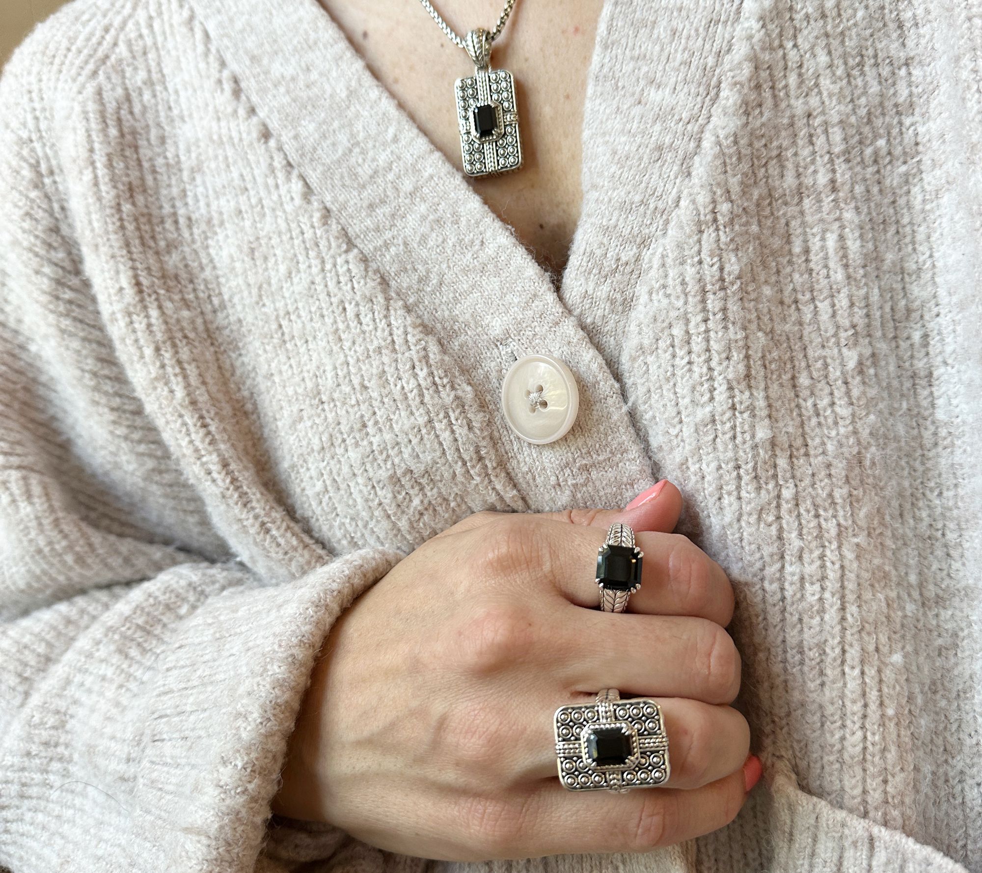 What's on your wish list? If it's a JAI ring with interesting textures, an intriguing gemstone, and bold presence, now's the time to treat yourself -- before your attention turns to giving to everyone else. (Look who's beautifully accessorized for the season!) From JAI.