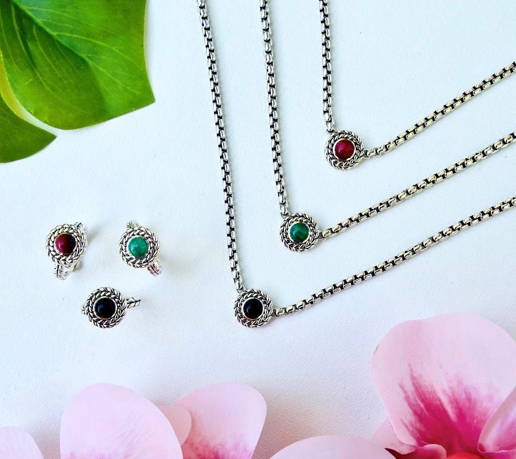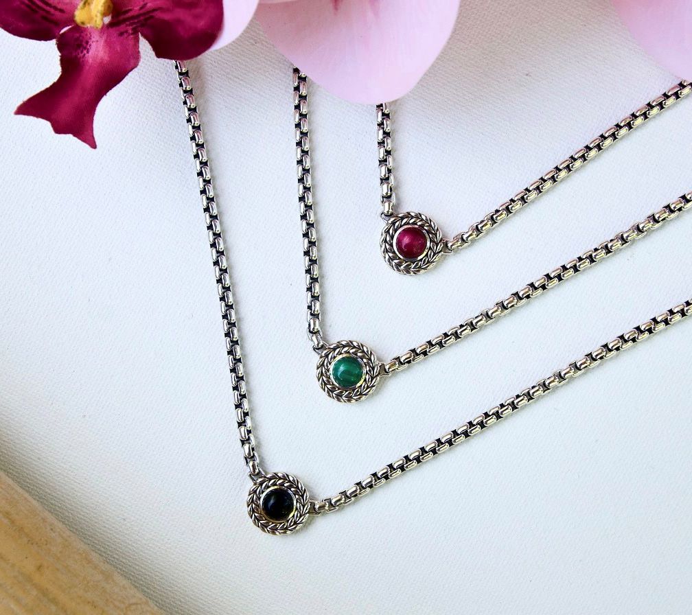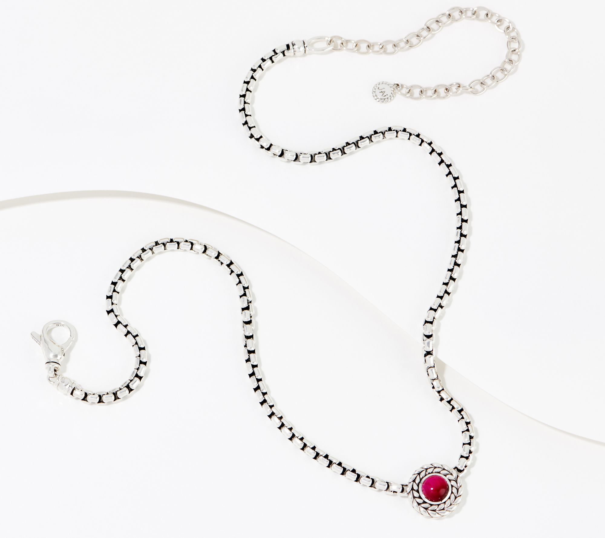 JAI Sterling Silver Box Chain Gemstone Necklace