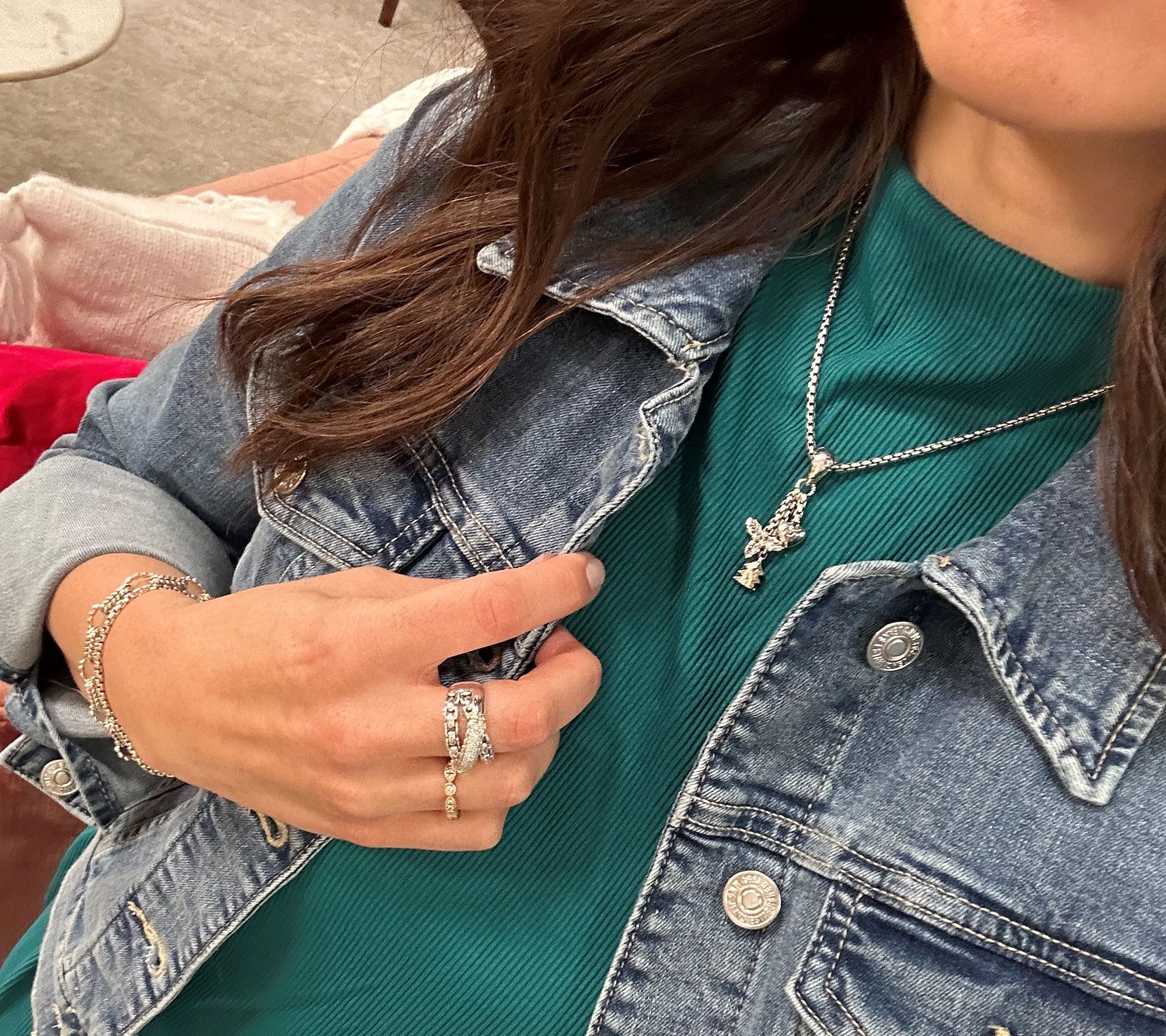 Any necklace is fit for the holidays when you top it with this festive sterling silver Christmas charm enhancer. From JAI.