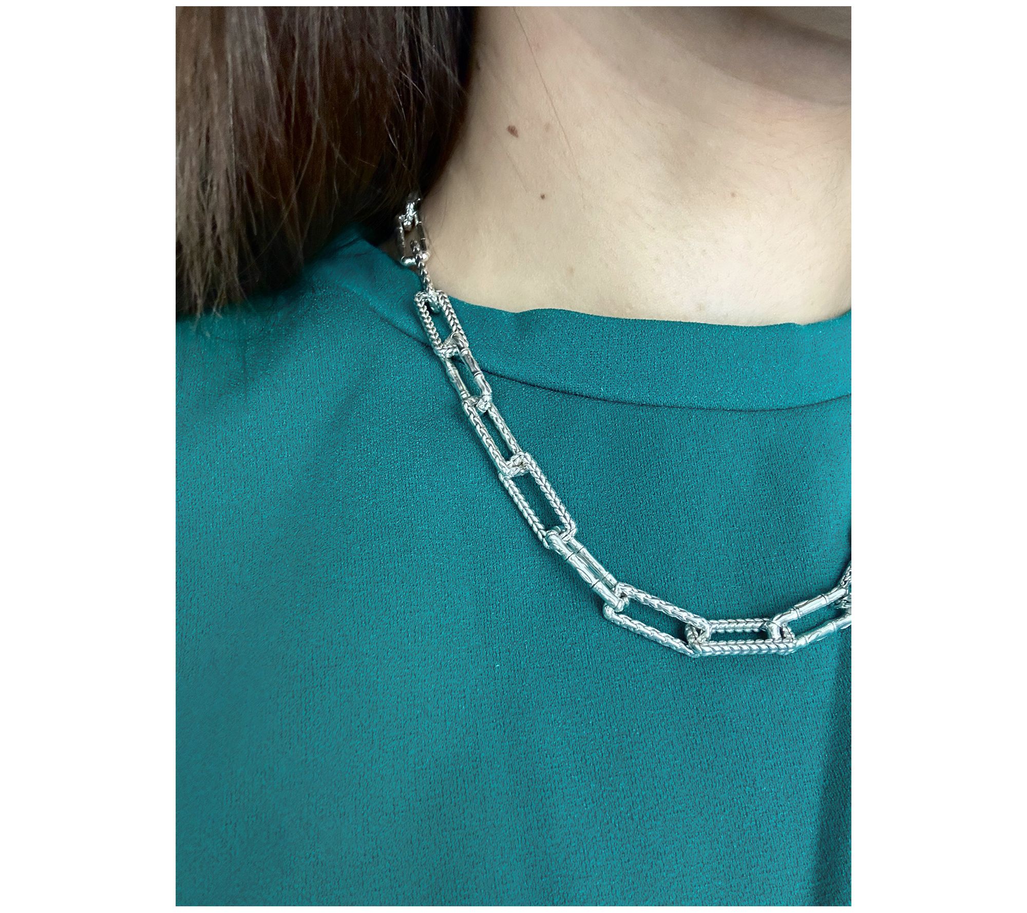 JAI Sterling Silver Global Textures Paperclip Necklace, 34.0g