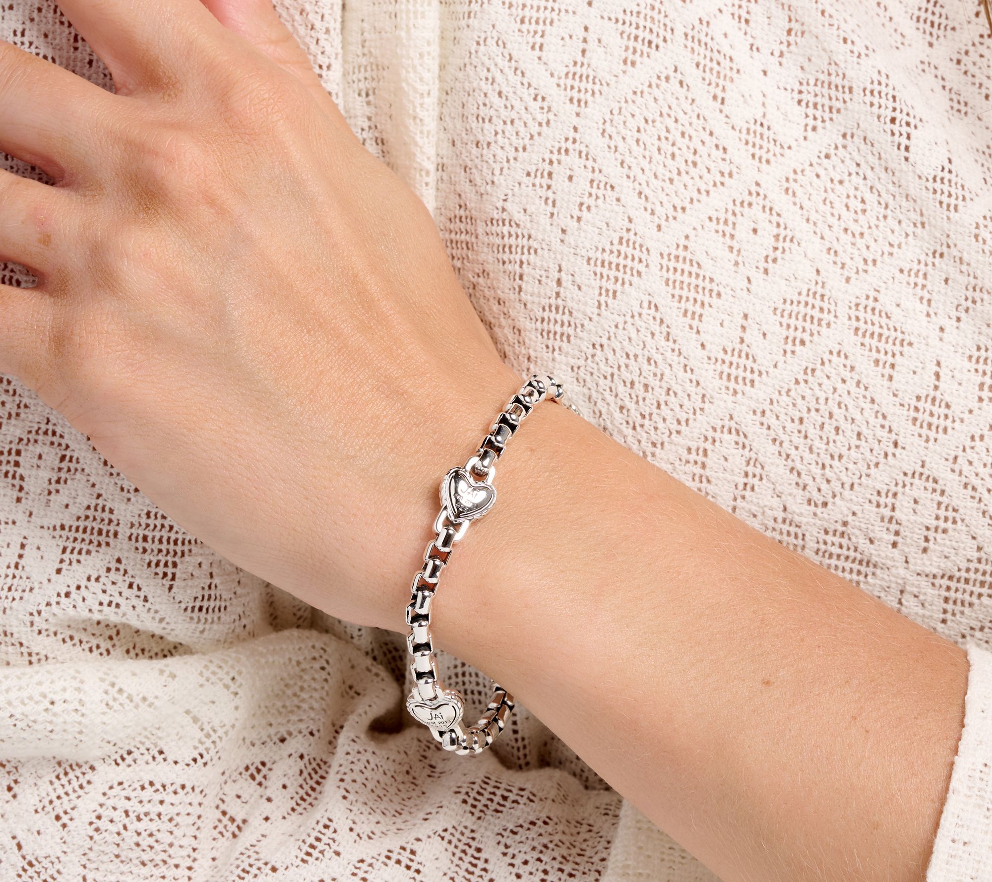 JAI Sterling Silver Heart Link 5.3mm Box Chain Bracelet, 21.0g