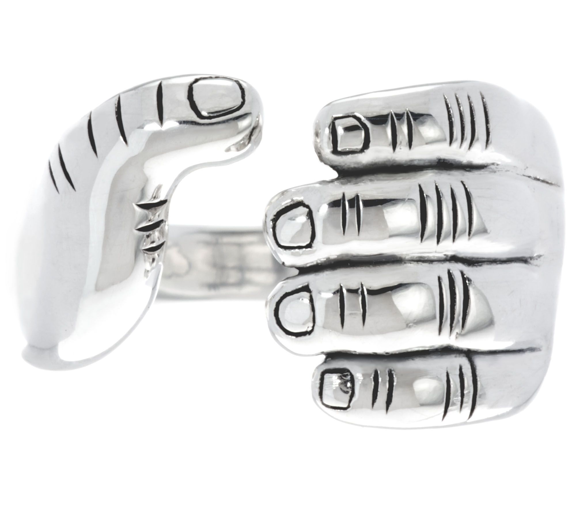 Jewelry stylish Scott Grimes presents his sterling silver "I Love" band ring. Scott was inspired to recreate the feeling a parent or caregiver has when a child reaches for their hand--perhaps to cross the street. It's meant to evoke the thought that children hold our hands for just a moment in time, but remain held in our hearts forever. From JAI.