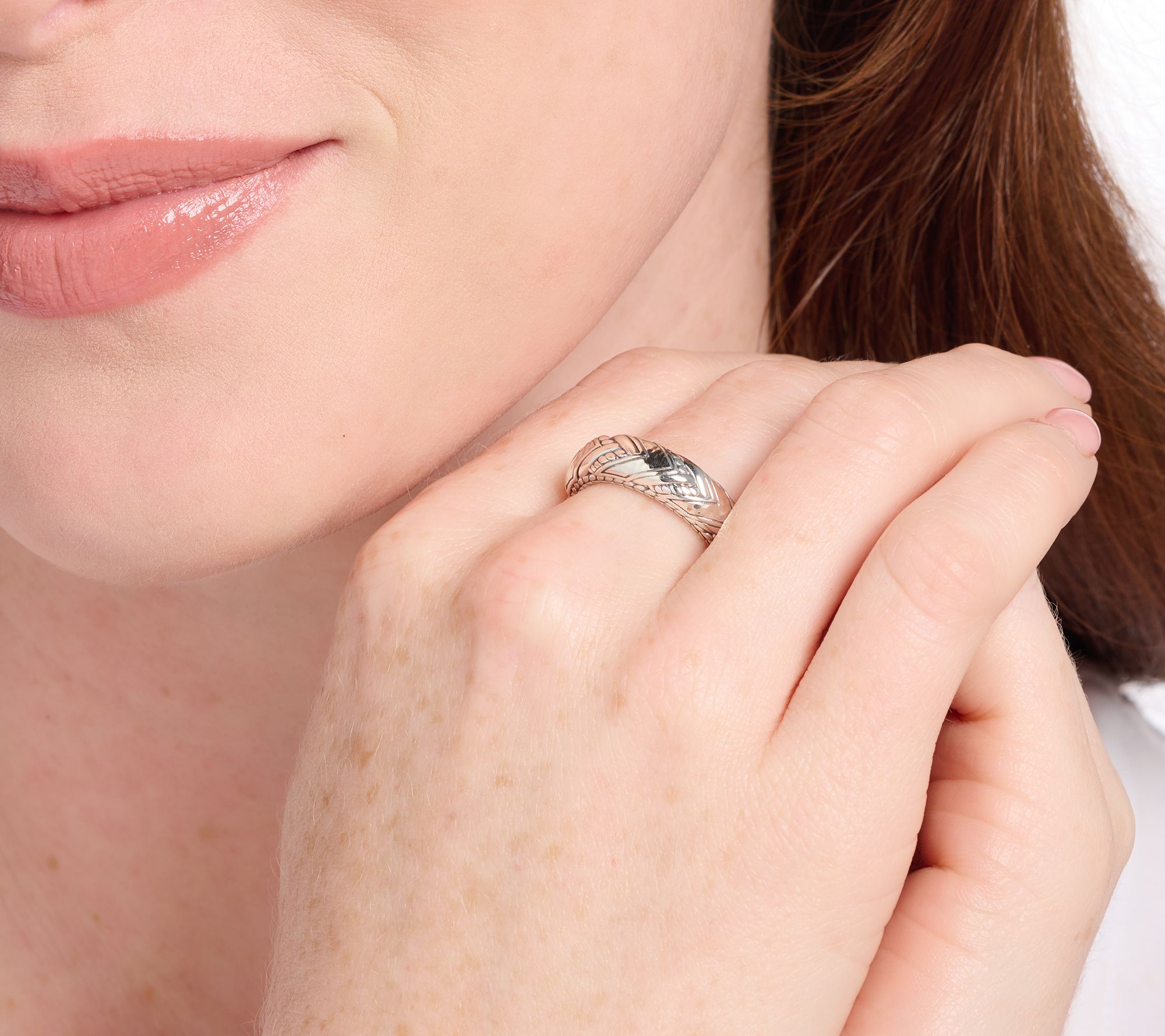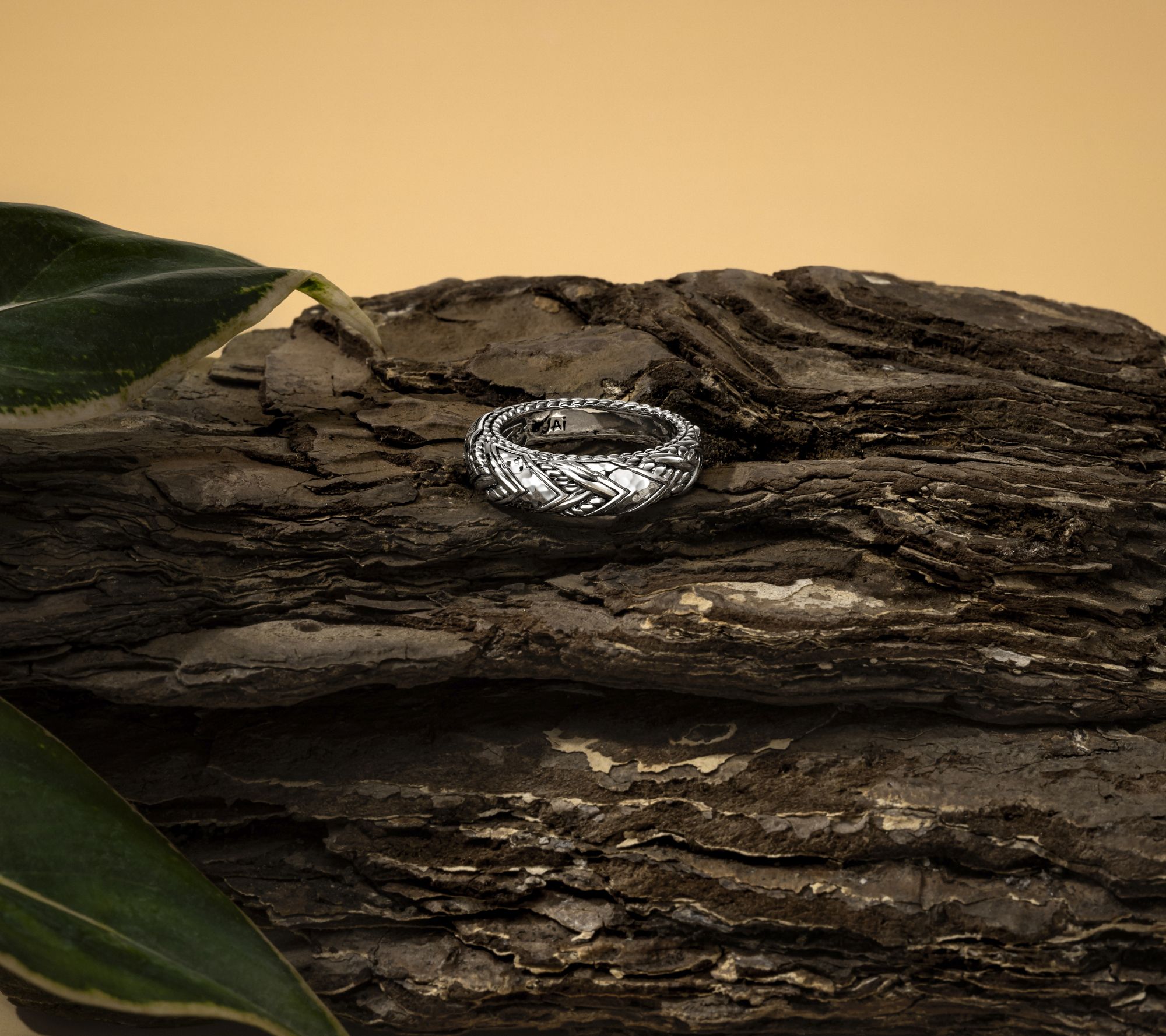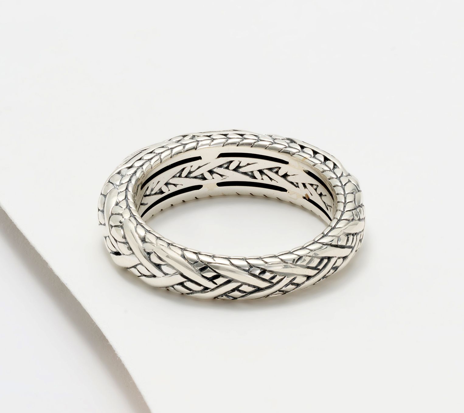 Every day deserves a distinctive detail -- and this woven sterling silver band brings a rich, artful vibe to whatever's planned. Its legacy-inspired textures, from signature weaving to hammered accents, are right at home paired with cozy knits, cool flowy dresses, and everything in between. Comfortable and dimensional, this standout ring is made for easy styling. From JAI.