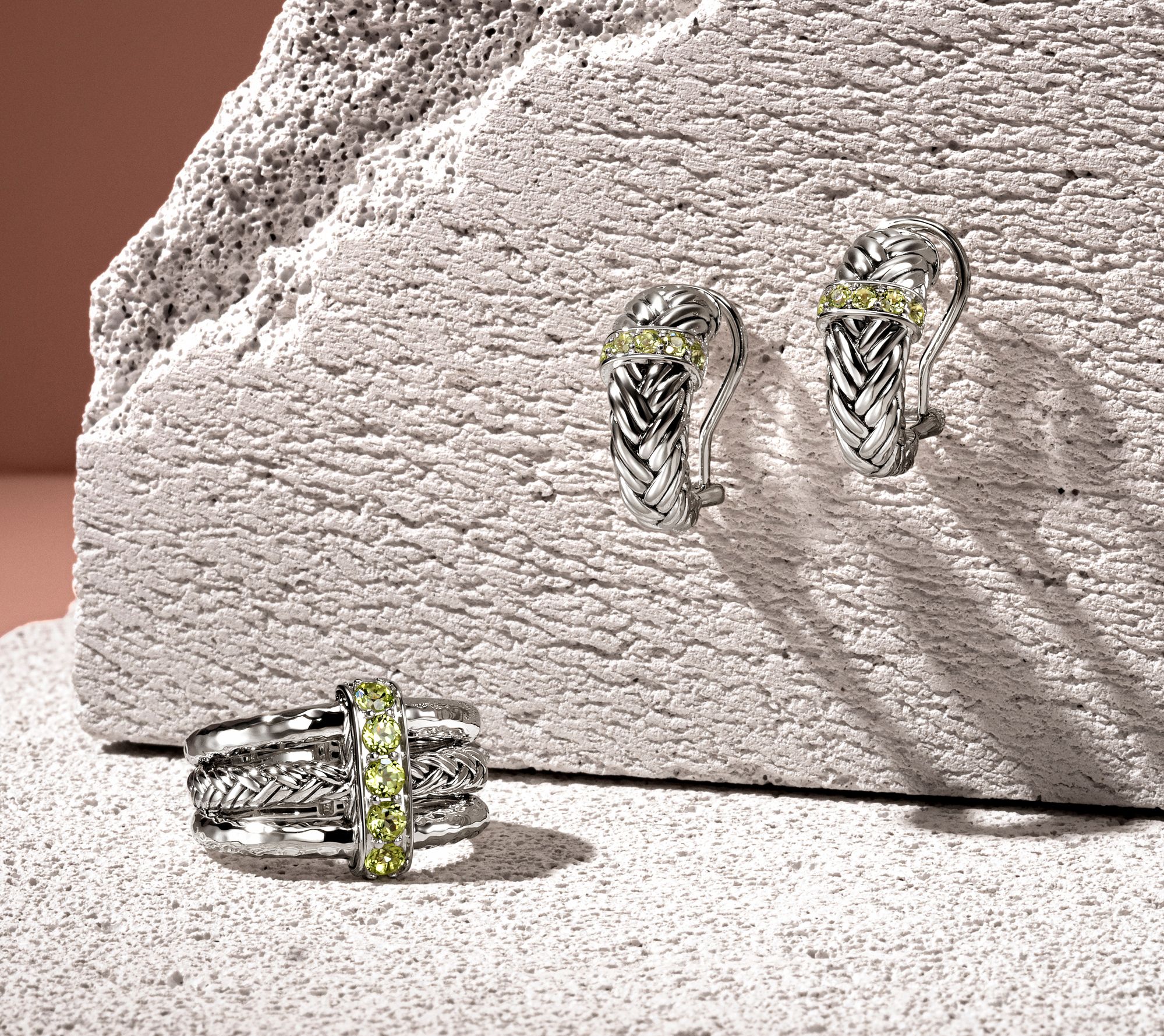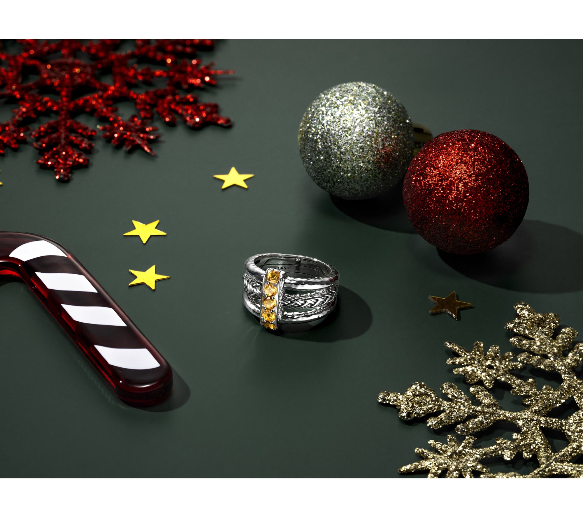 Different, dazzling, and here to be seen (like you!), this intricately detailed ring showcases a legacy woven texture interrupted by a band of sparkling gemstones. From JAI.
