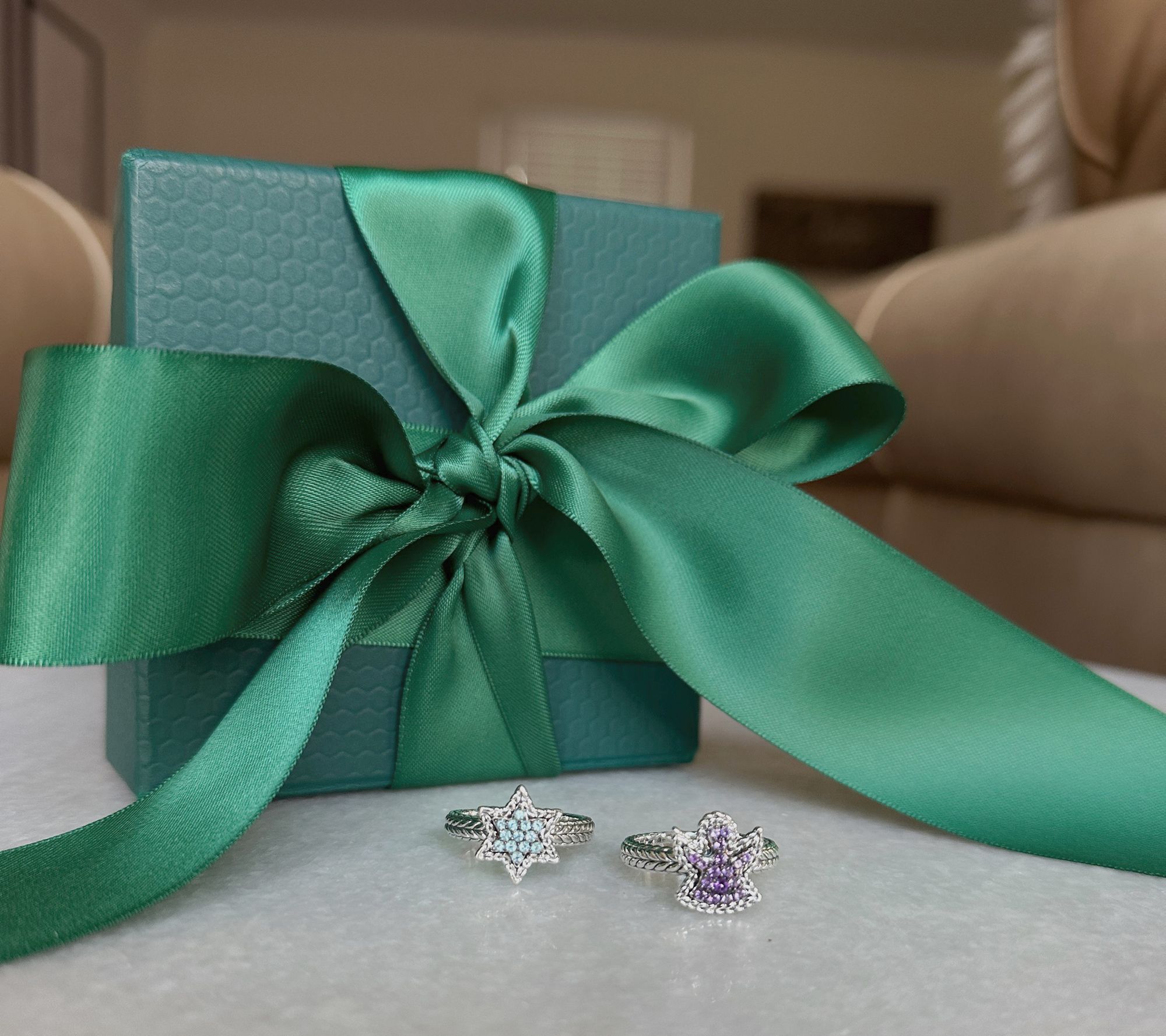 - Total gemstone weights are approximate: Heart/Garnet 0.60 carat; Cross/White Topaz 0.30 carat; Paw/Black Spinel 0.25 carat; Christmas Tree/Green Chalcedony 0.15 carat; North Star/Citrine 0.10 carat; Star of David/Sky Blue Topaz 0.20 carat; Angel/Amethyst 0.20 carat