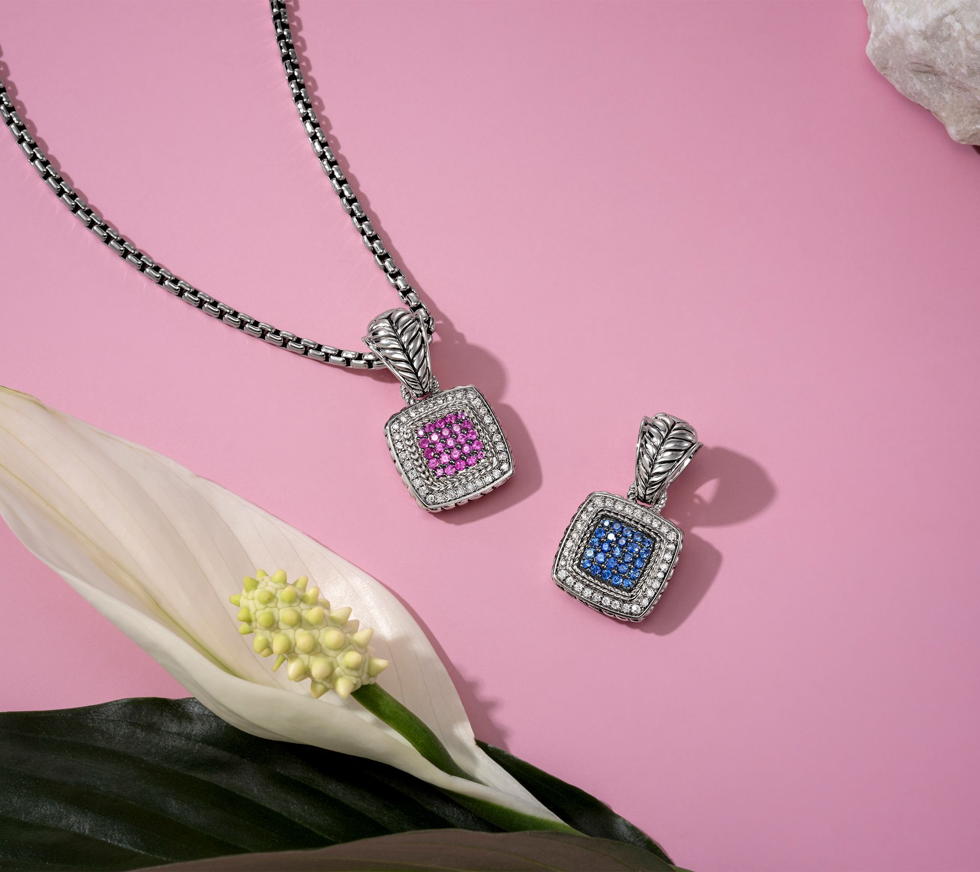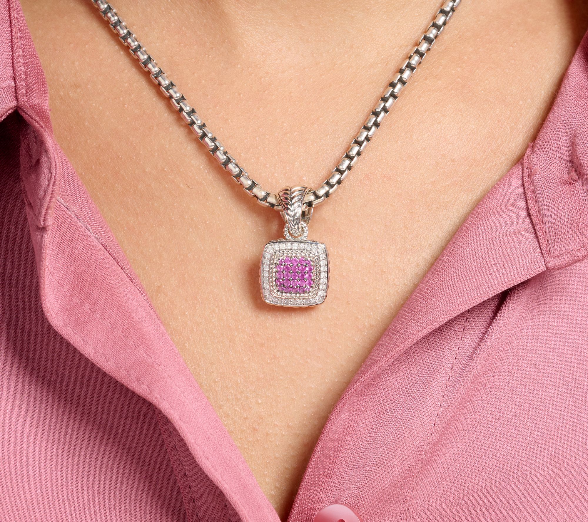 All set to sparkle. Add this sterling silver sapphire and diamond enhancer to a chain you already own and transform a basic 'fit into something well beyond! From JAI.